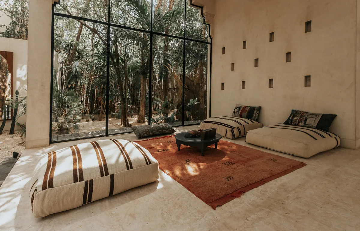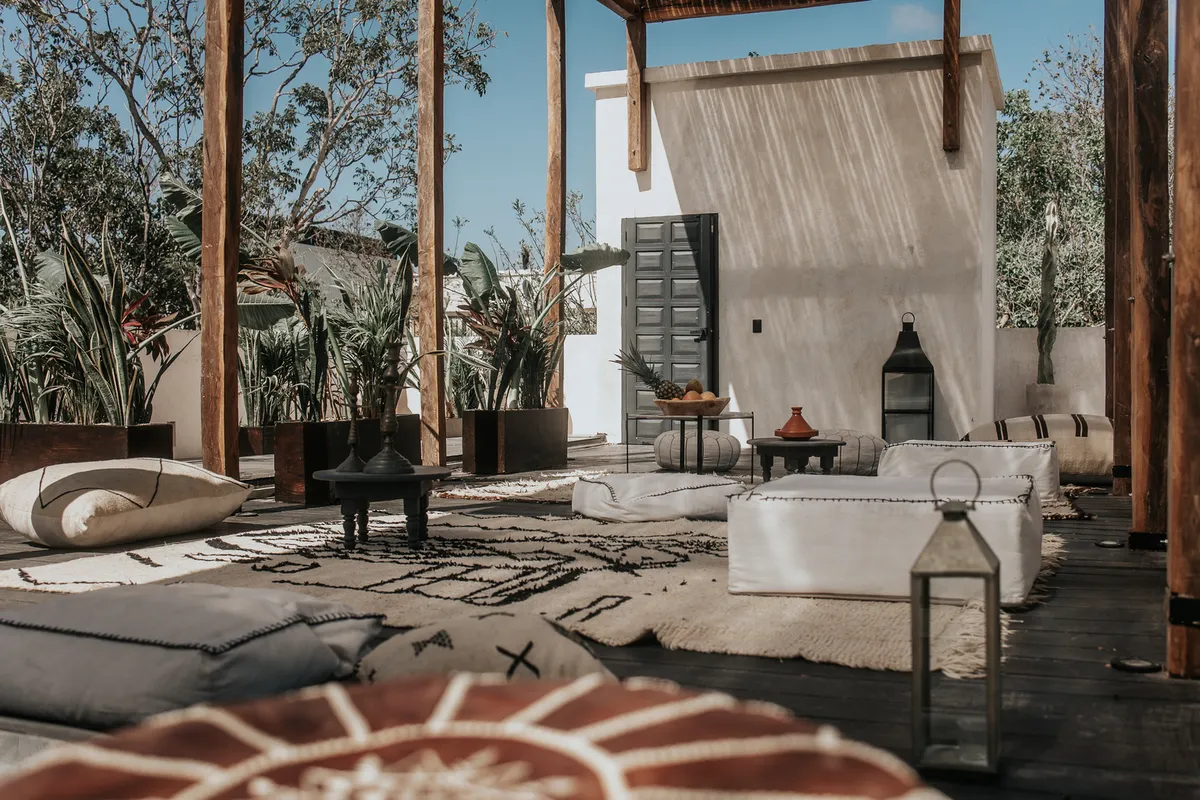 This Villa combines Mexican and Moroccan decorative styles and is the ideal combination of style and comfort. The use of soft lines, open spaces and light colours allows for natural indoor-outdoor transitions that will immerse you in the green nature that is an essential part of Tulum. A mix of some traditional Mexican with details of Mediterranean décor gives the Villa the feel of a Mediterranean palace.