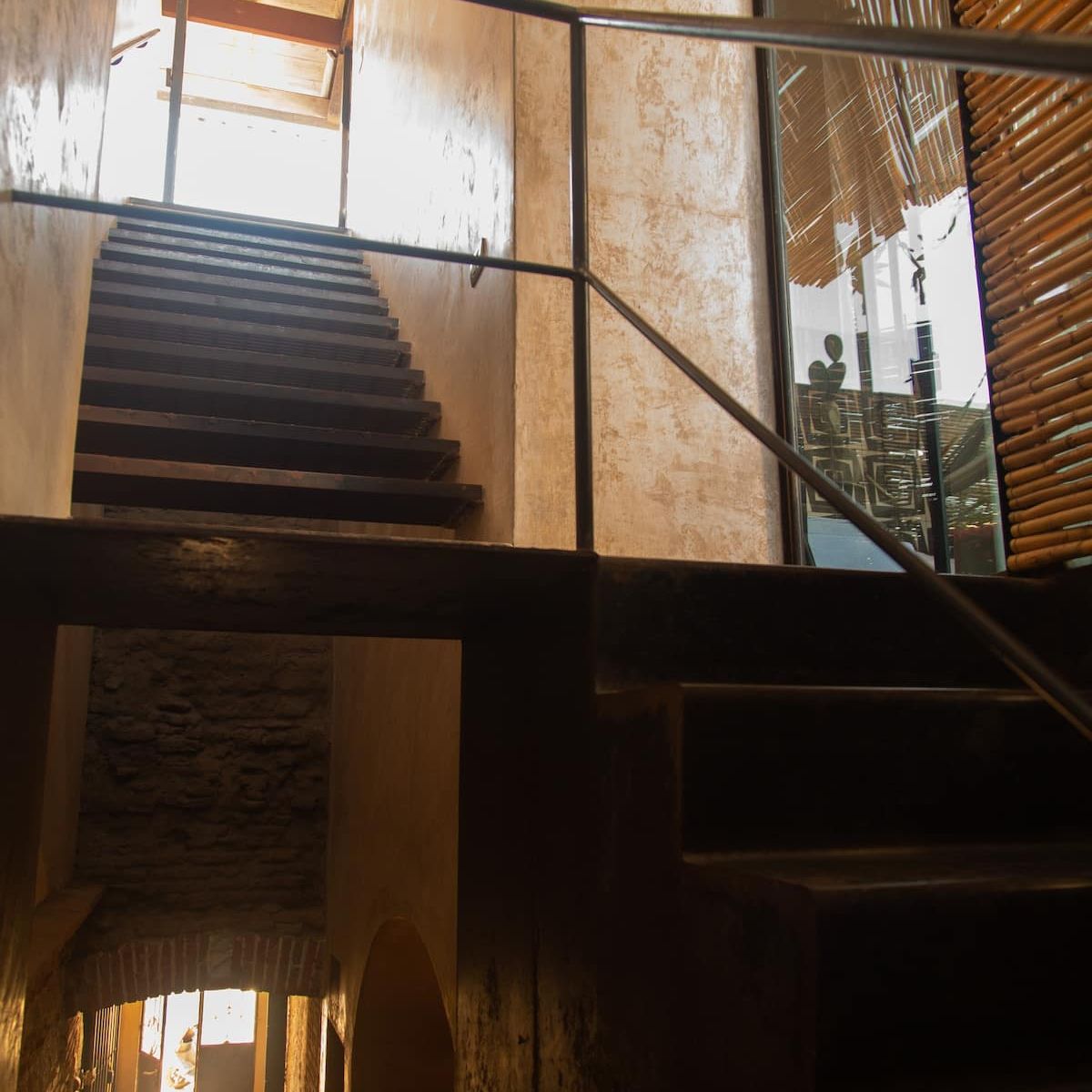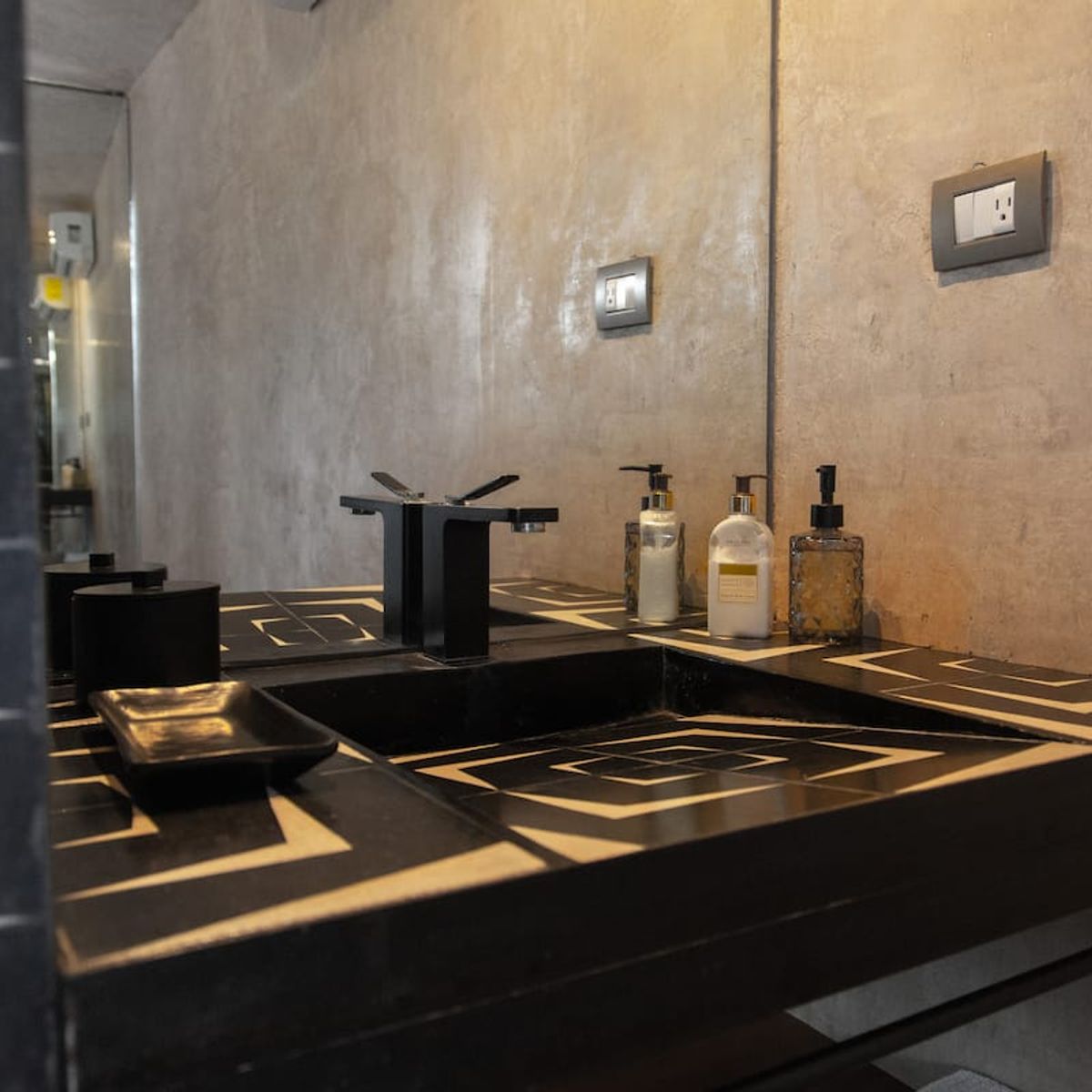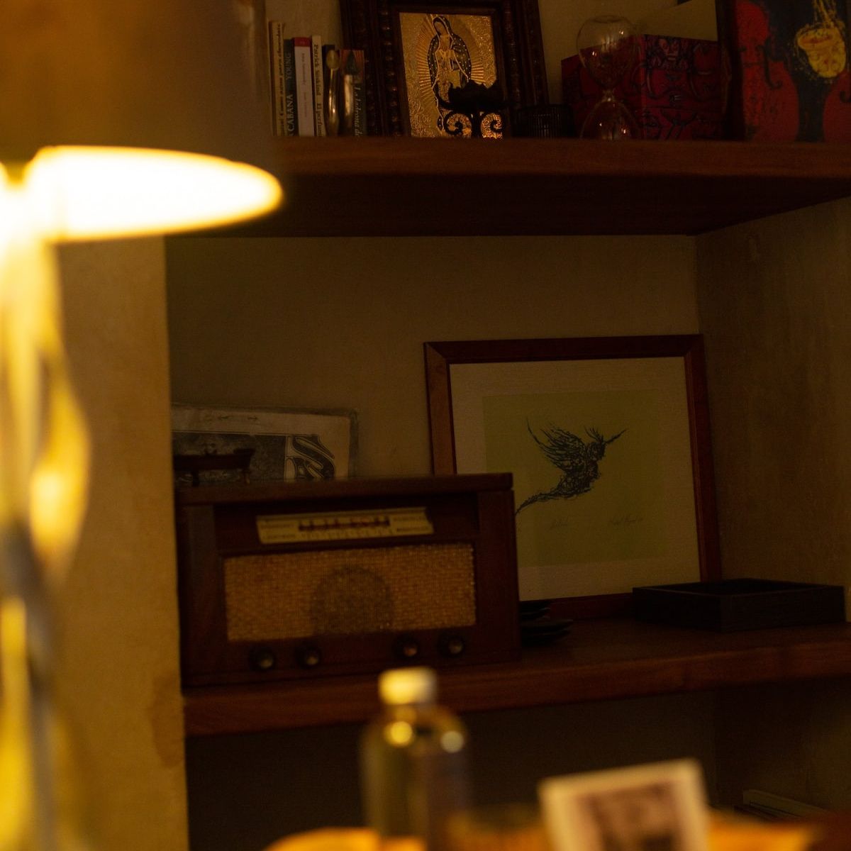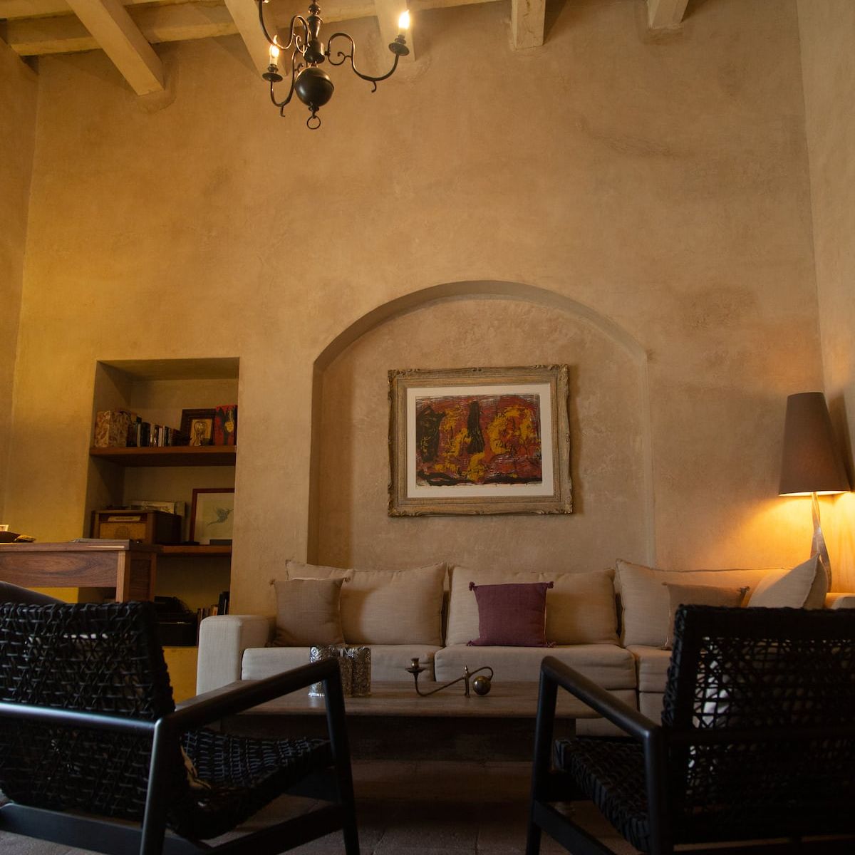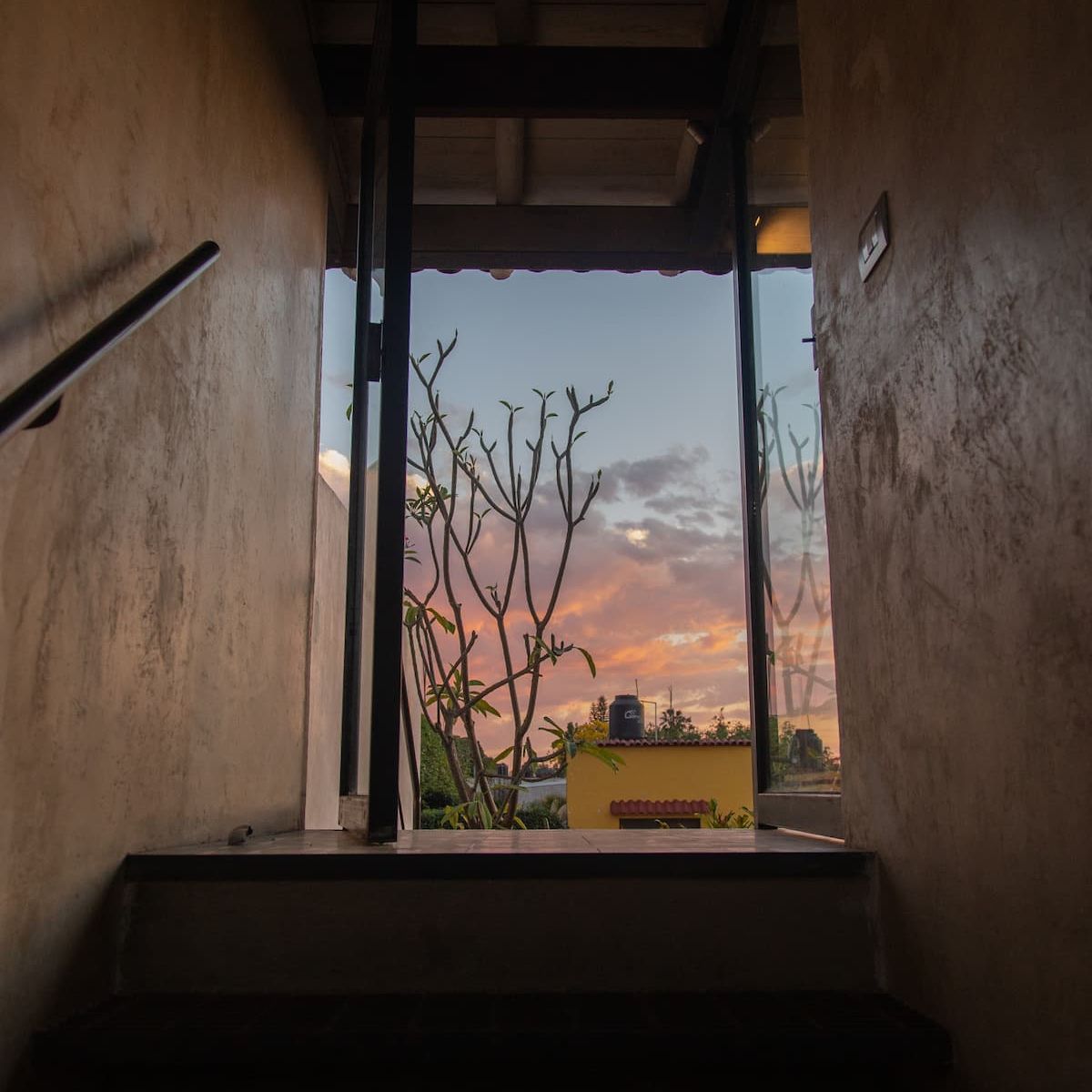 The ground floor embraces its past with art-adorned walls finished in baba de nopal—nopal slime a traditional technique using the natural gel from the nopal cactus to strengthen and smooth surfaces. This method, found in historic buildings, enhances durability while regulating humidity. Cozy spaces like a reading nook and a fully equipped kitchen centered around a stunning dining table invite relaxation and connection.