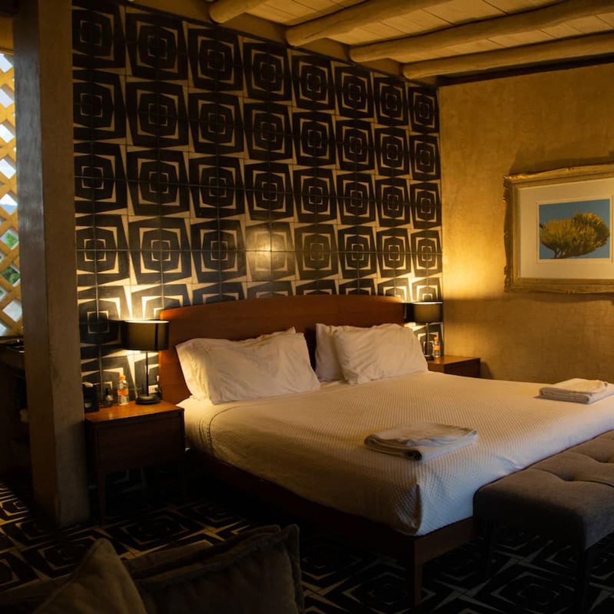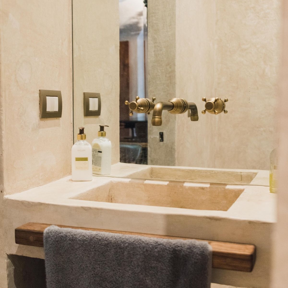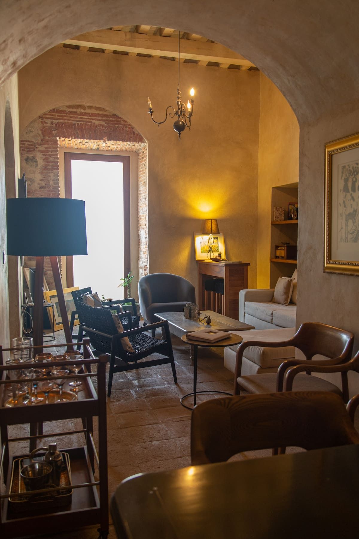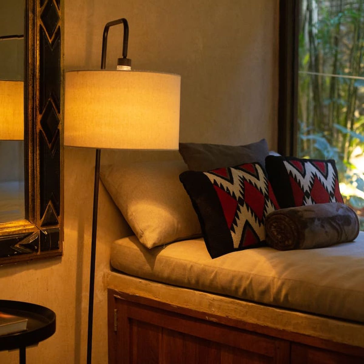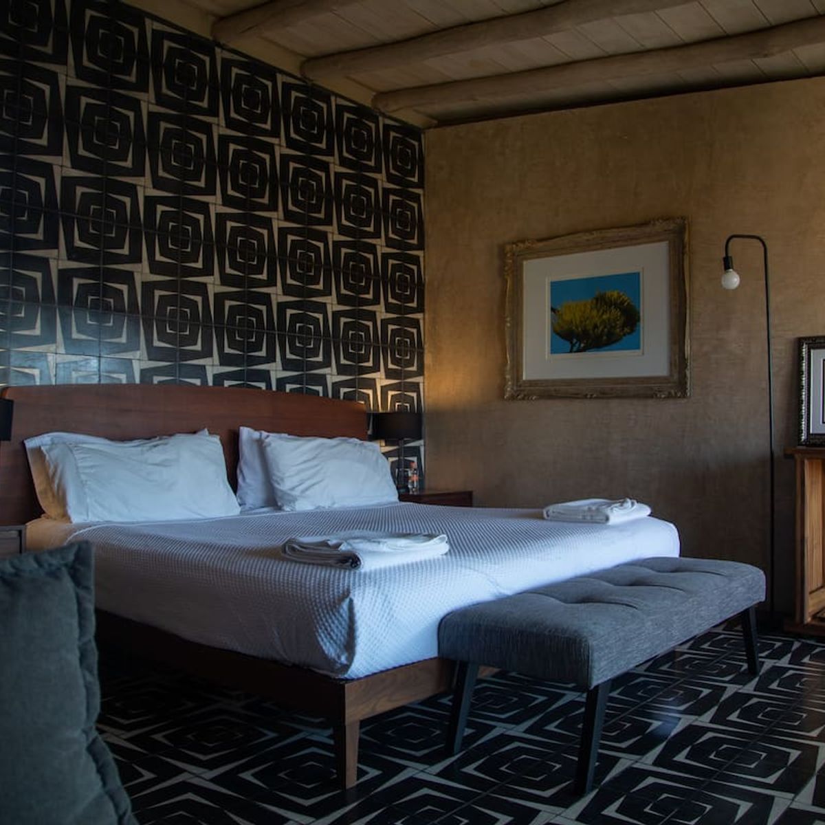 The ground floor embraces its past with art-adorned walls finished in baba de nopal—nopal slime a traditional technique using the natural gel from the nopal cactus to strengthen and smooth surfaces. This method, found in historic buildings, enhances durability while regulating humidity. Cozy spaces like a reading nook and a fully equipped kitchen centered around a stunning dining table invite relaxation and connection.