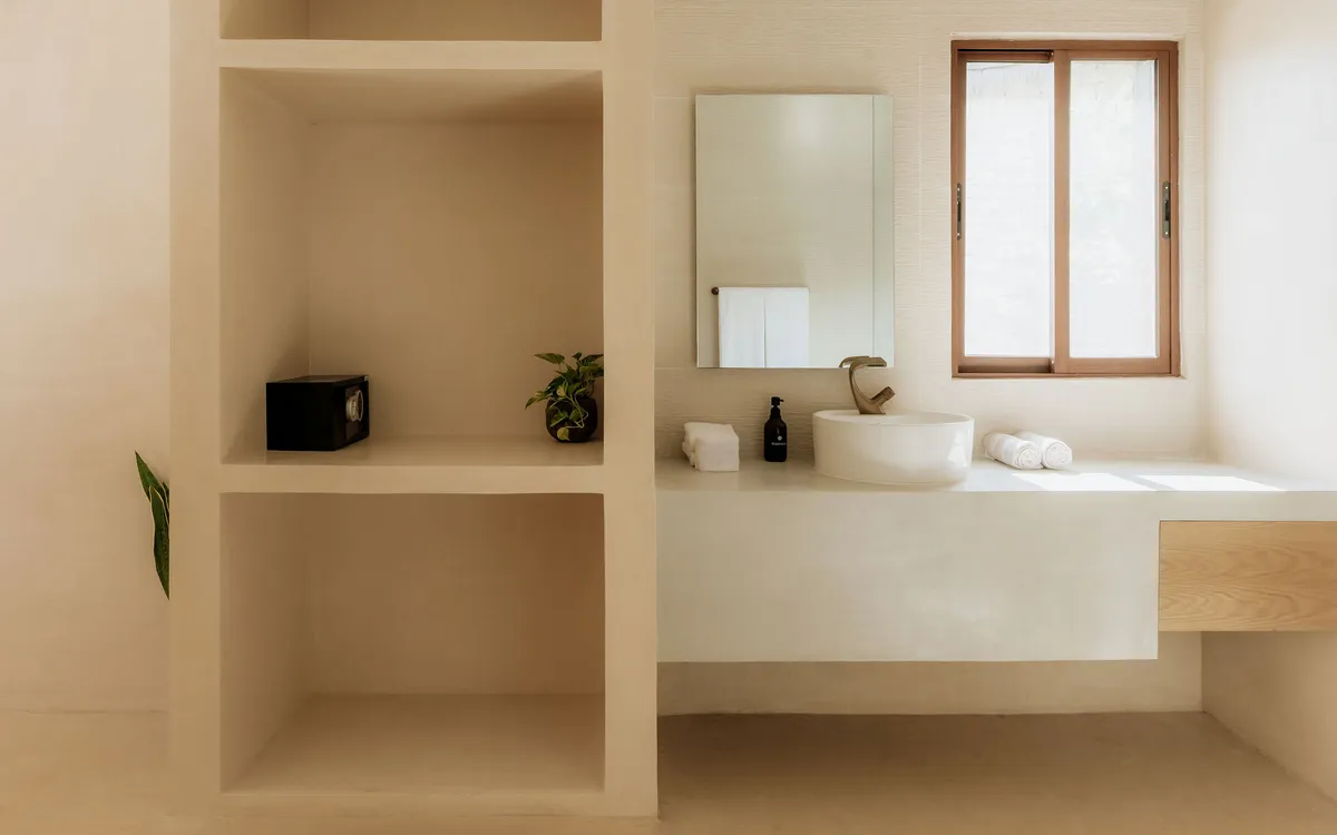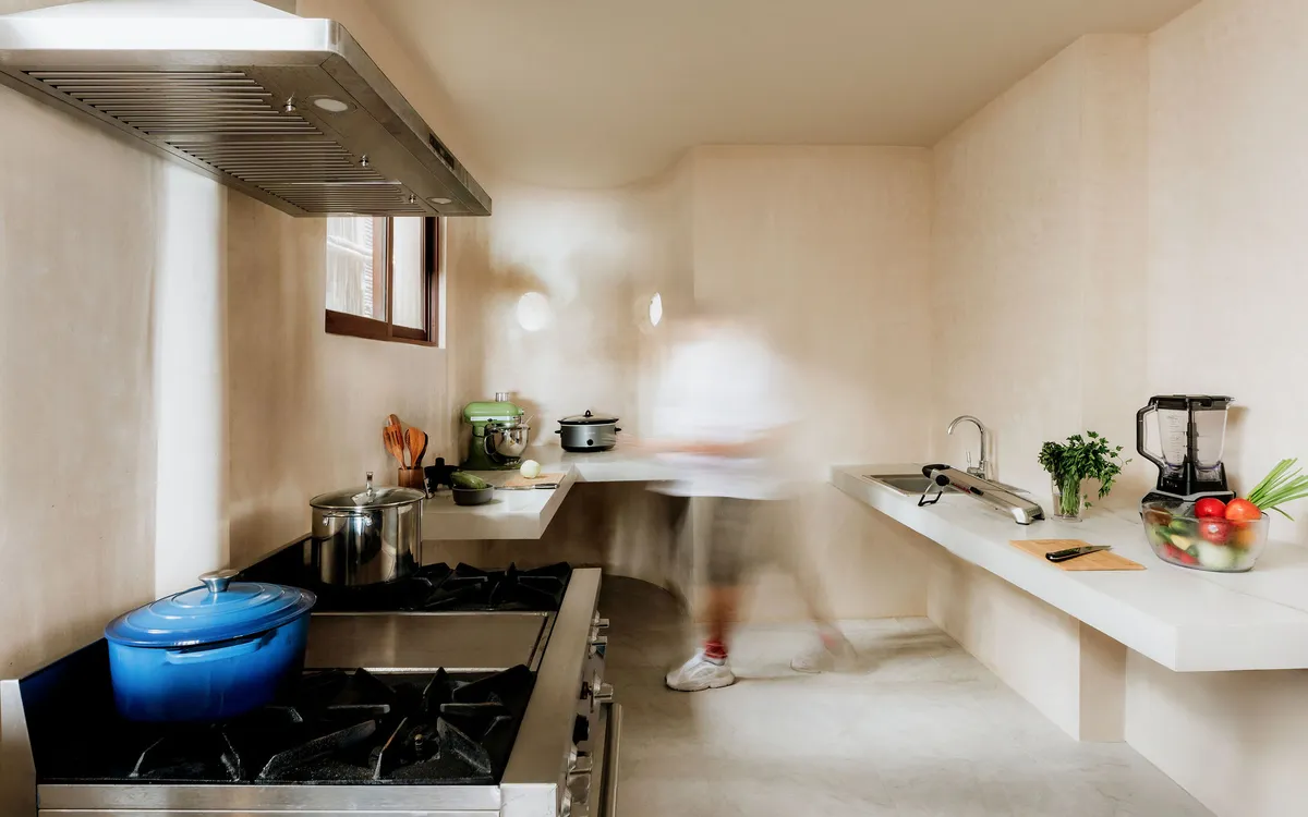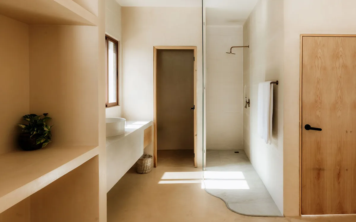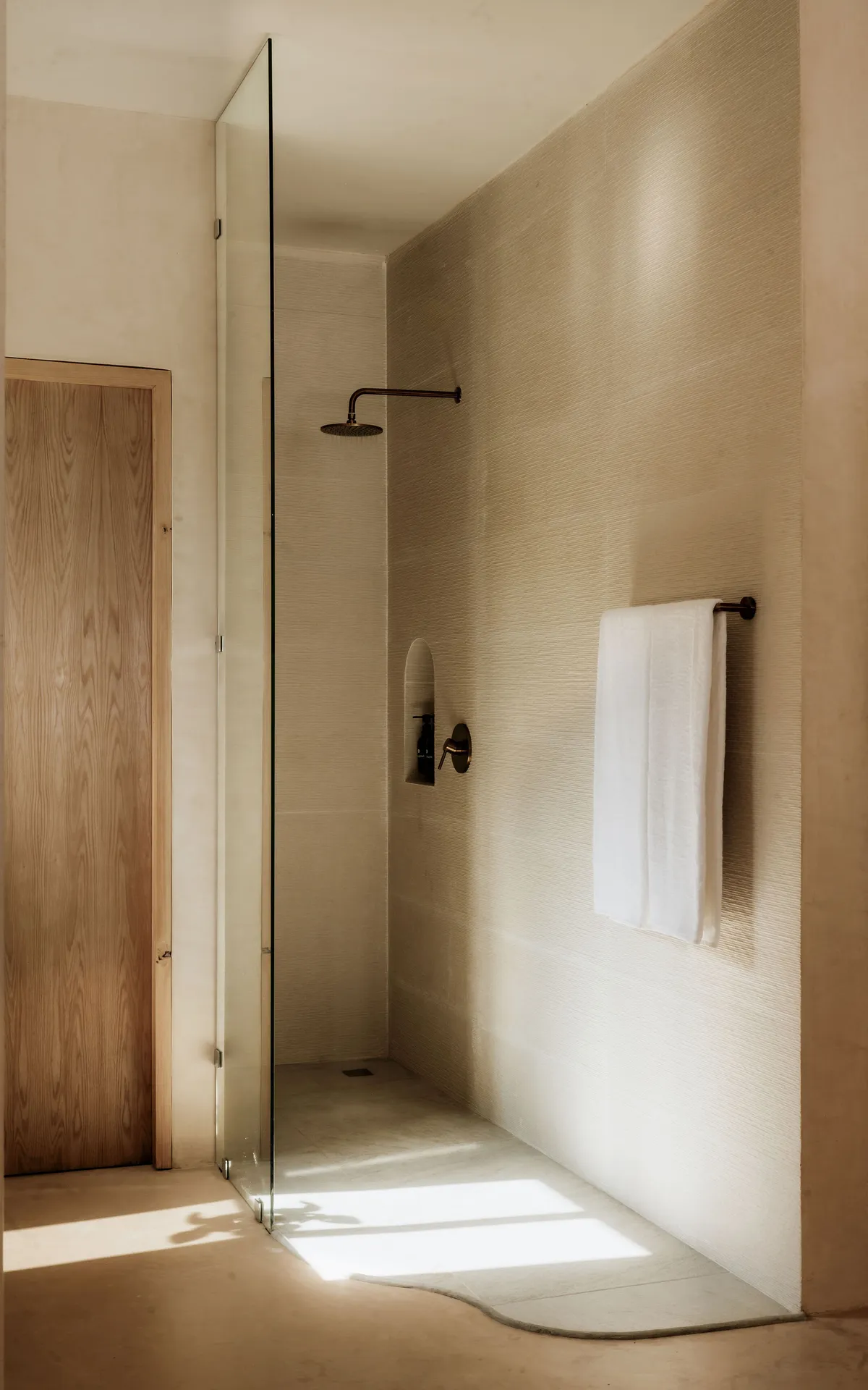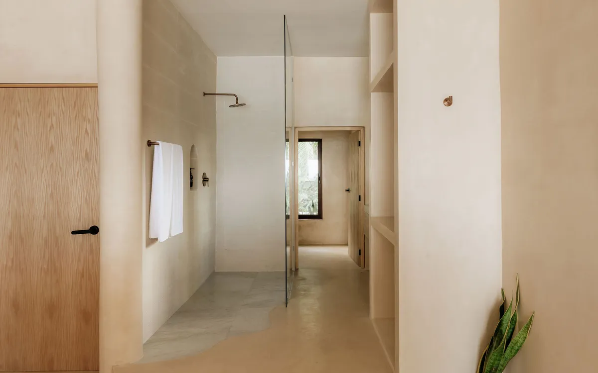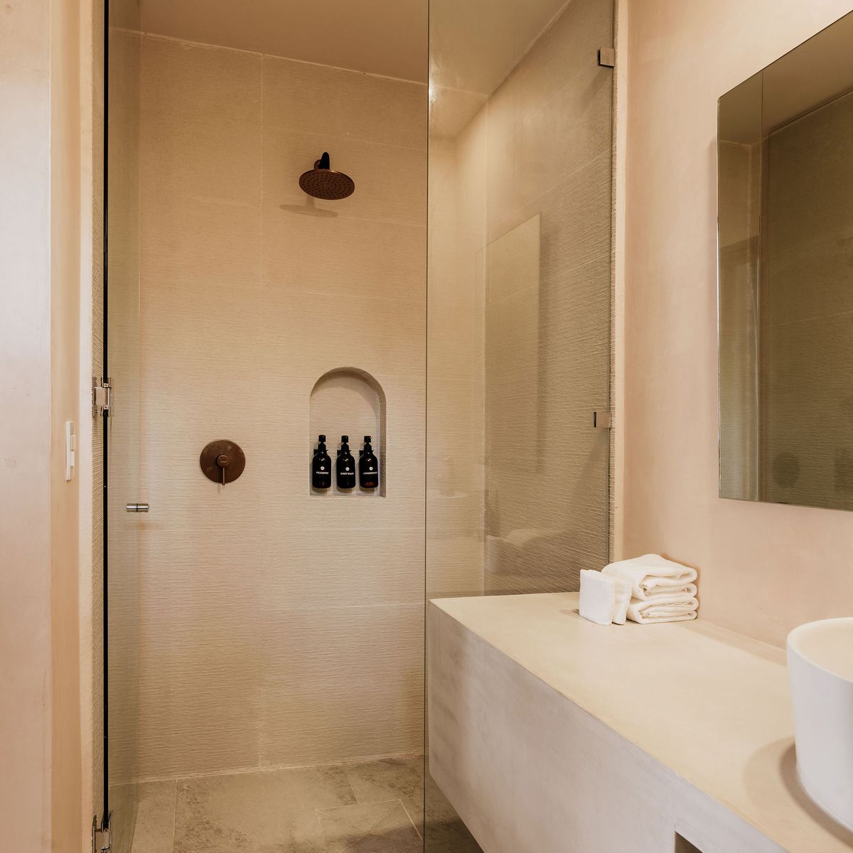 The outdoor spaces are just as impressive: a private beachfront pool, a rooftop lounge with panoramic views, and a plunge pool for cooling off after the beach.