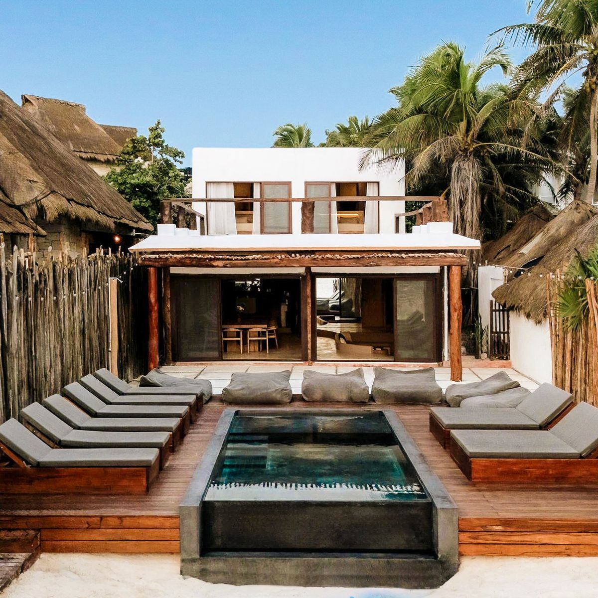 Set along a quiet stretch of Tulum’s main beach, this newly renovated villa is one of the only premium, fully staffed properties directly on the beach—offering rare beachfront privacy just minutes from the heart of the hotel zone. It's hidden in plain sight: peaceful and secluded, yet a five-minute walk from hotspots like Taboo. Designed with minimalist elegance and clean architectural lines, the property balances calm, understated luxury with access to everything Tulum has to offer.