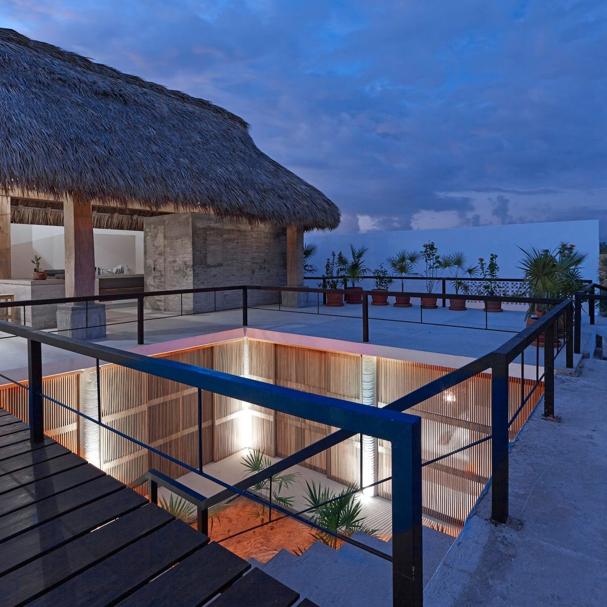 Designed by José Alfonso Quiñones of Mexico City's BAAQ’ studio, this 6-bedroom villa contrasts austere, minimal facades with traditional carved latticework and palapa roofing. Casa Cal’s design is purely functional, yet the results of this cold logic are extraordinary, creating a space that intelligently responds to its environment filled with intriguing details.