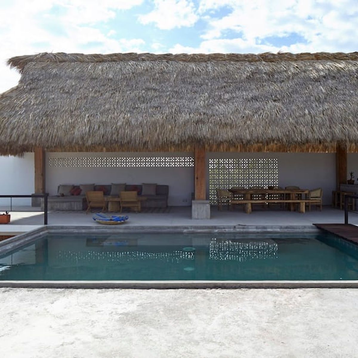 The home’s second-floor communal area takes full advantage of the views while keeping the bedrooms cool. The spacious living and dining area is situated under a shady palapa in front of the infinity pool, whose ladder connects down to private beach access. The property comes with WiFi, a daily cleaning service, and a private chef for an extra cost.
