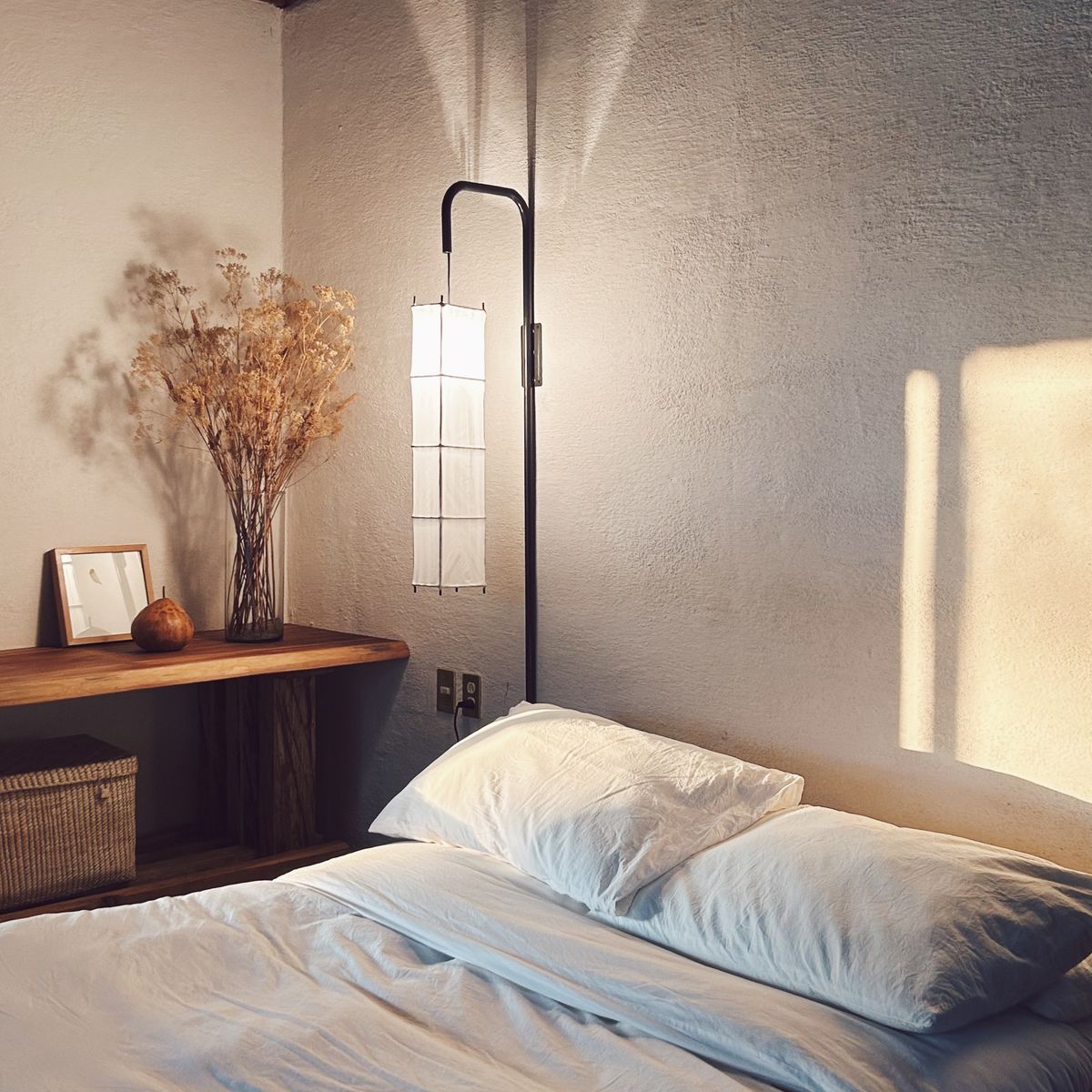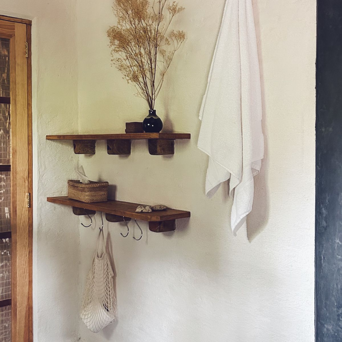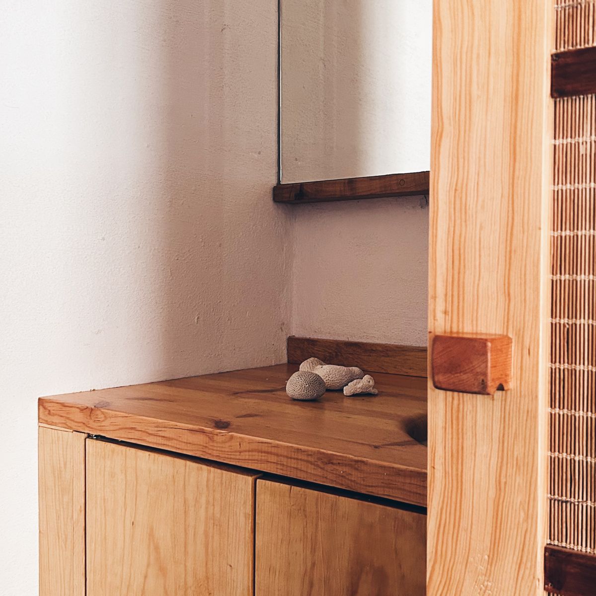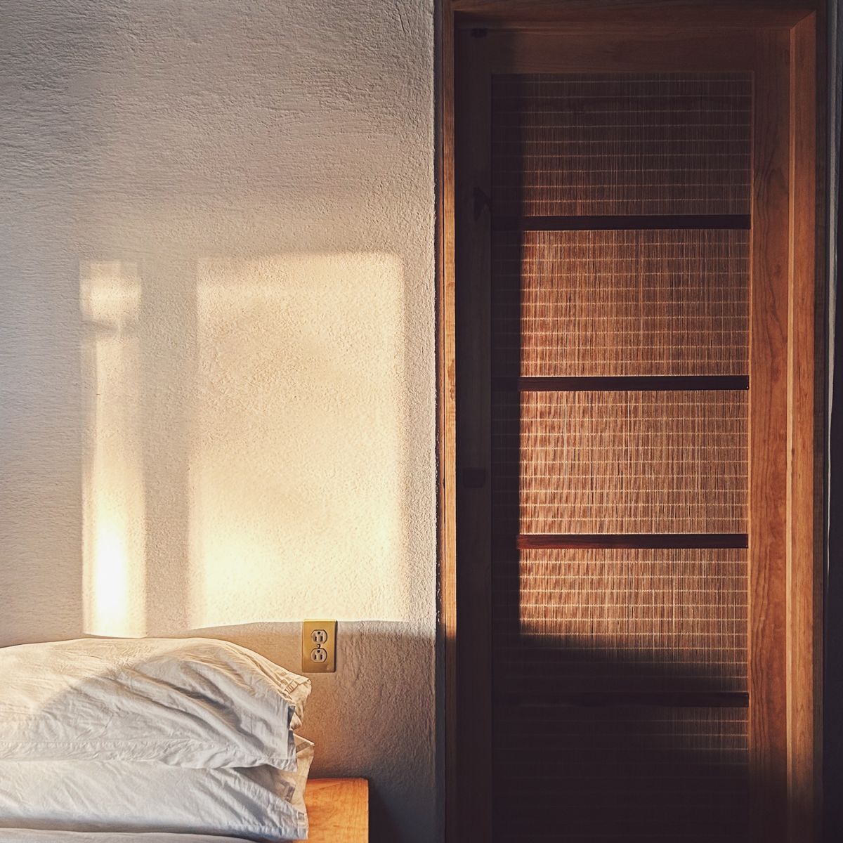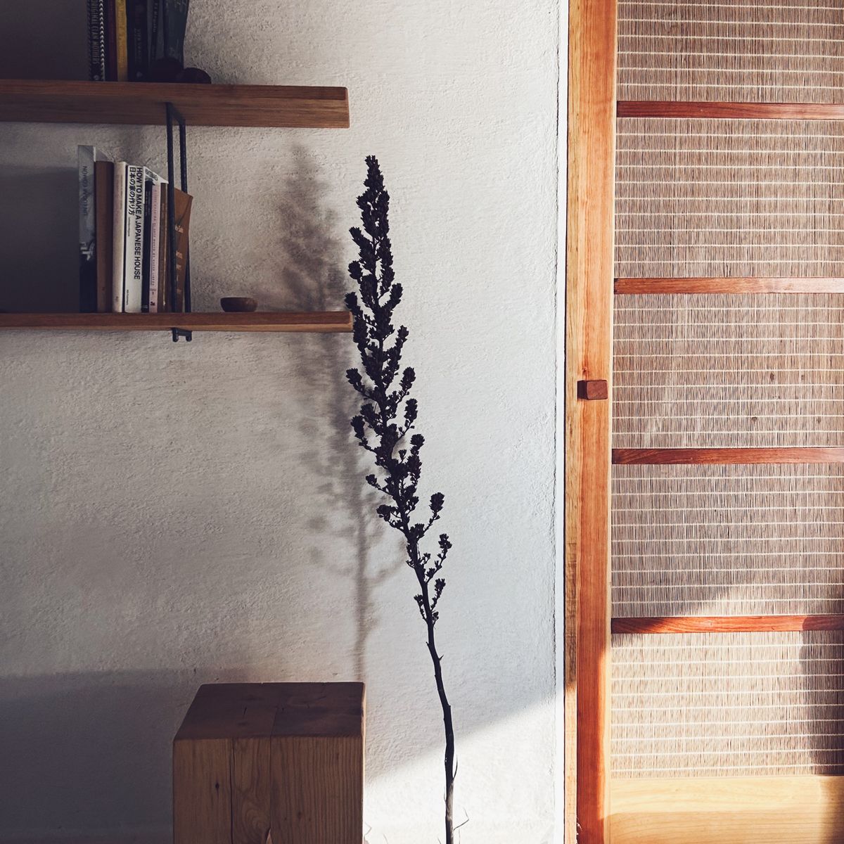 As you walk in, a Japanese-inspired entryway welcomes you to leave all that is too heavy behind. From the vestibule, you can enter a full bathroom with a wide shower made from soothing dark Tadelakt, giving the space a certain mystique.