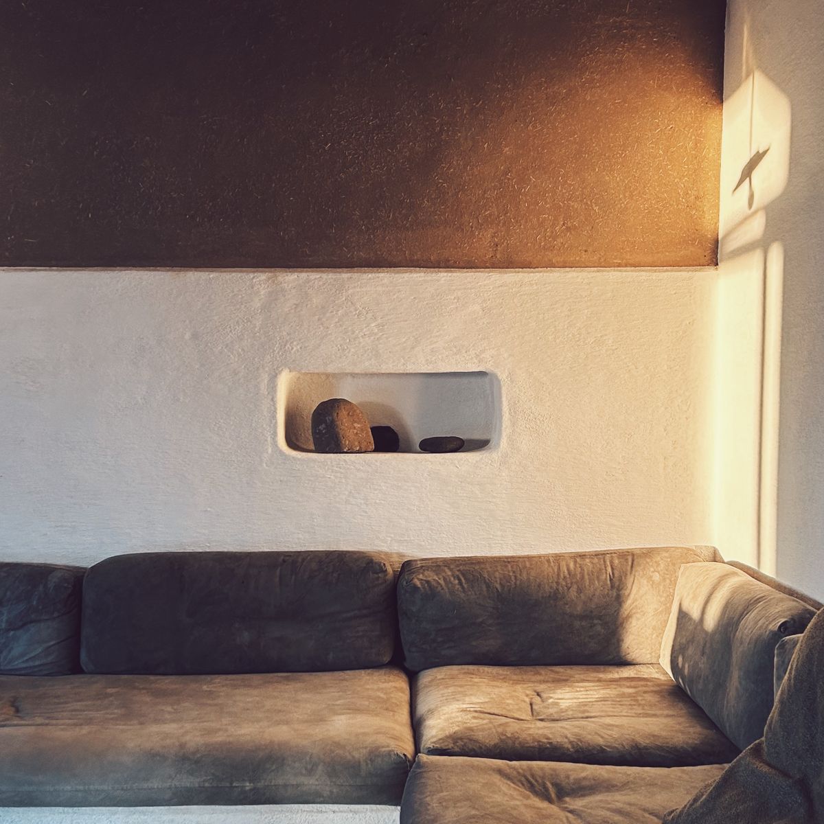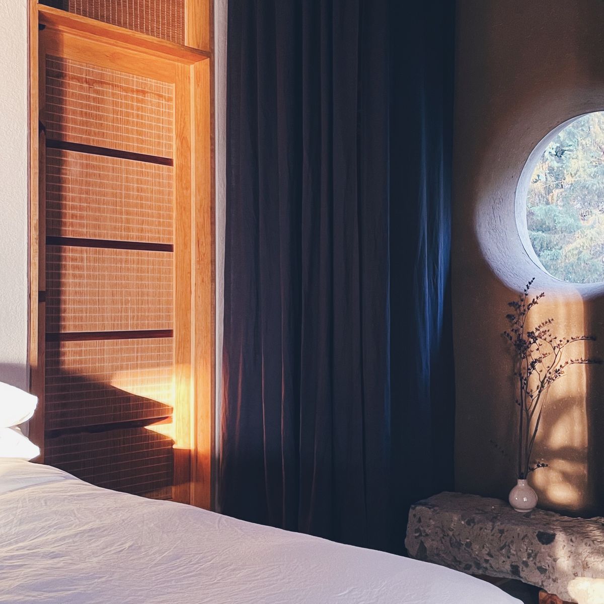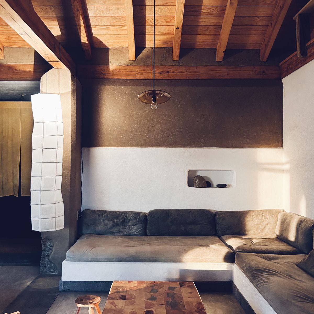 Guests come here to disconnect, to immerse themselves in nature, and to savor the silence and stillness. The house features a rustic luxe minimalism where a mix of local earth, stone, wood, and naturally dyed textiles creates an exquisitely relaxing space where time seems to stand still.