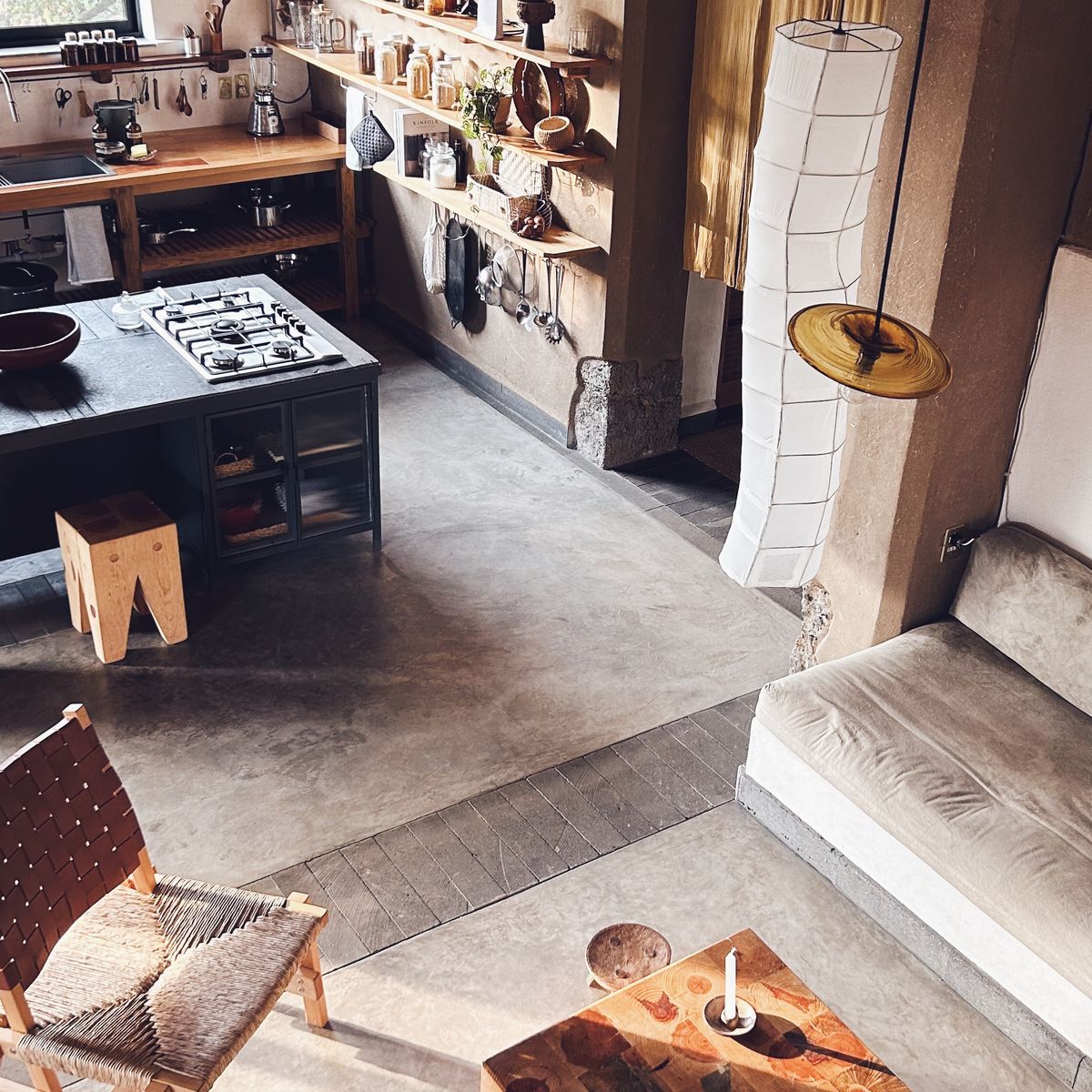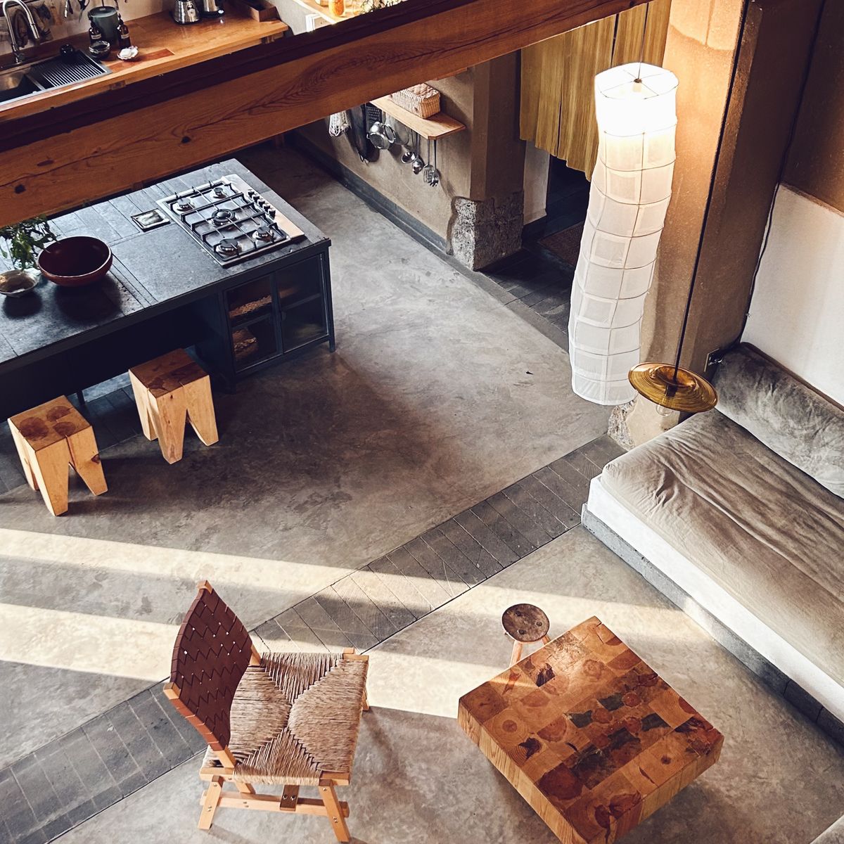 Passing through noren curtains, you’ll enter an open-plan kitchen and relaxed living area with a mezzanine. Double sheet doors lead to a large covered terrace with a dining and chill-out area. The terrace overlooks a petanca terrain and herb garden.