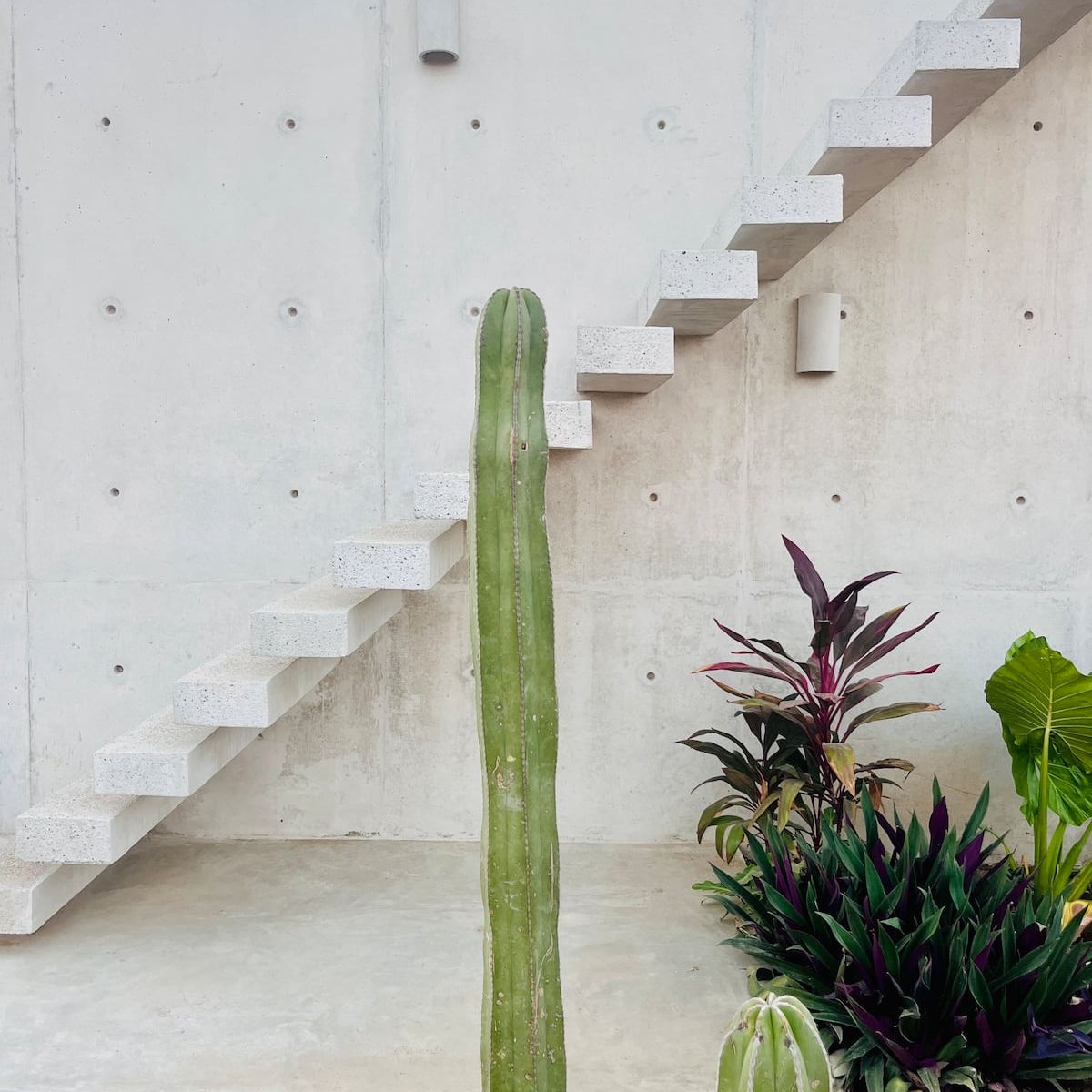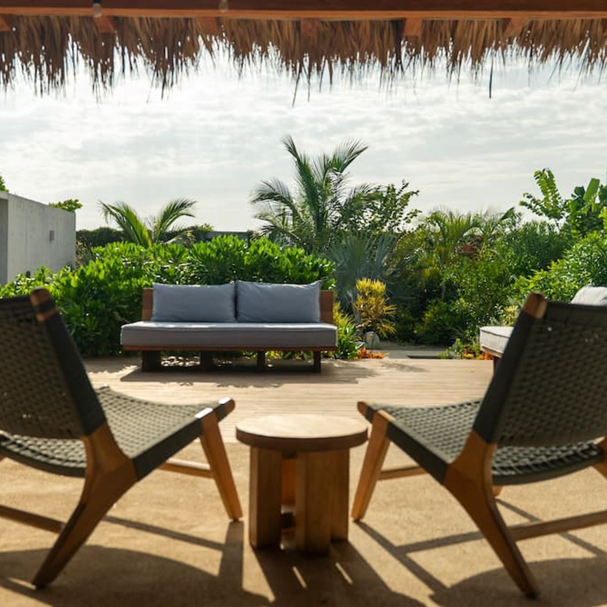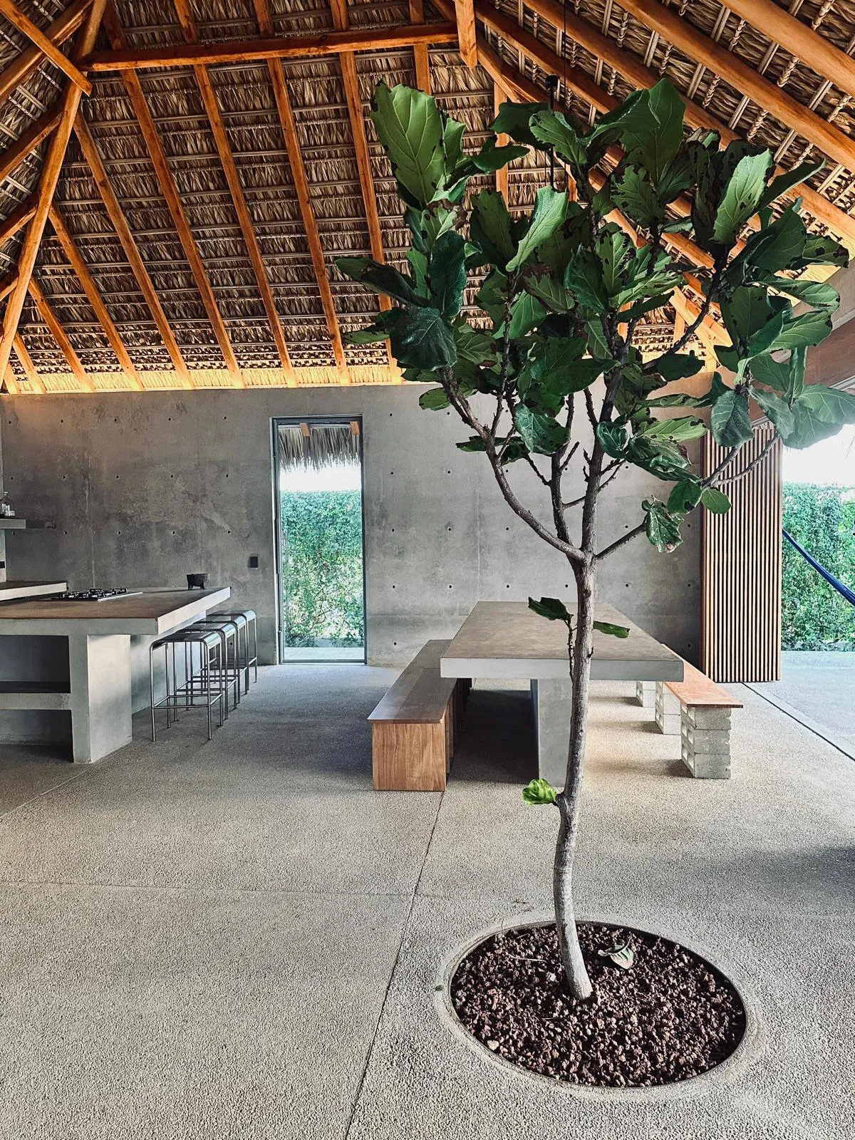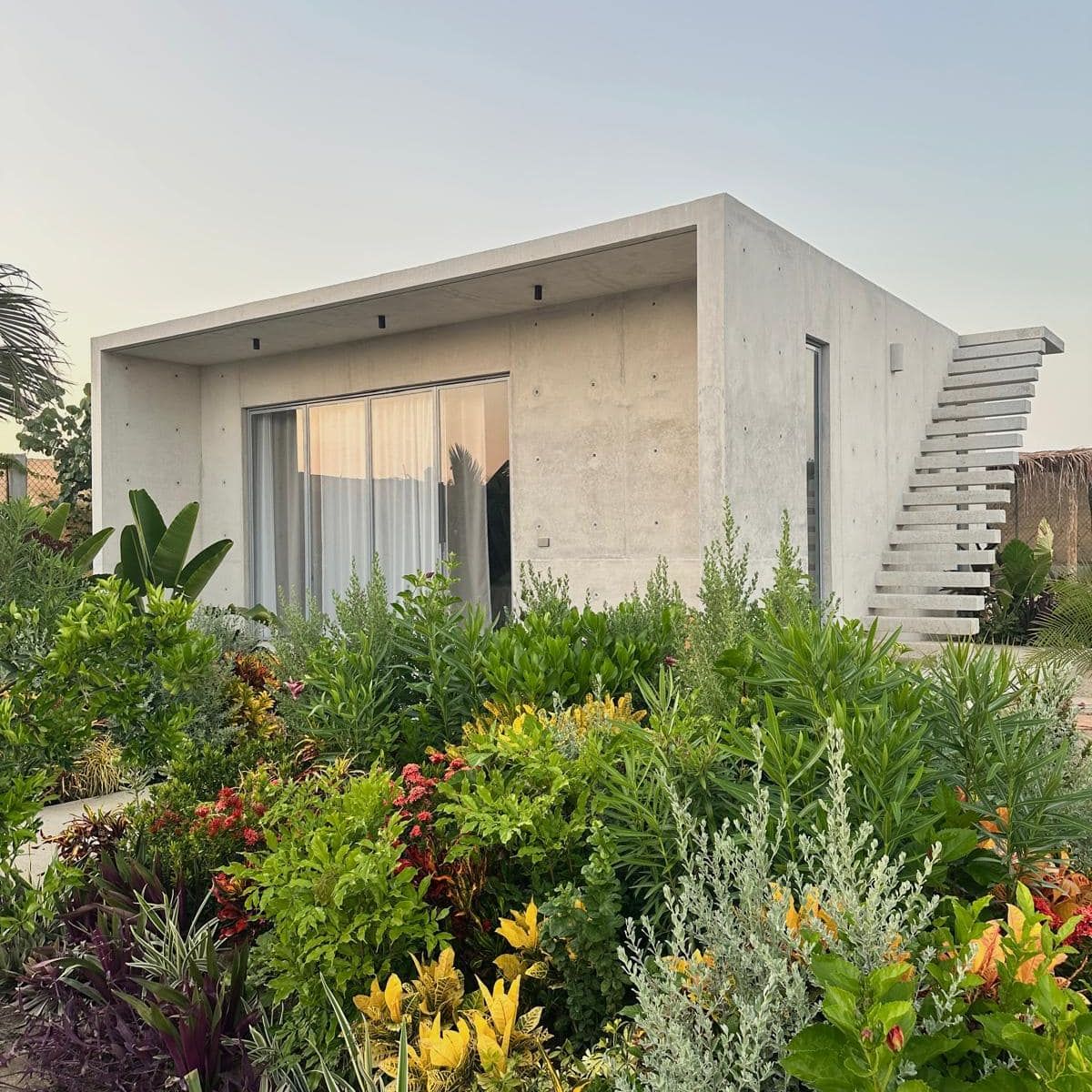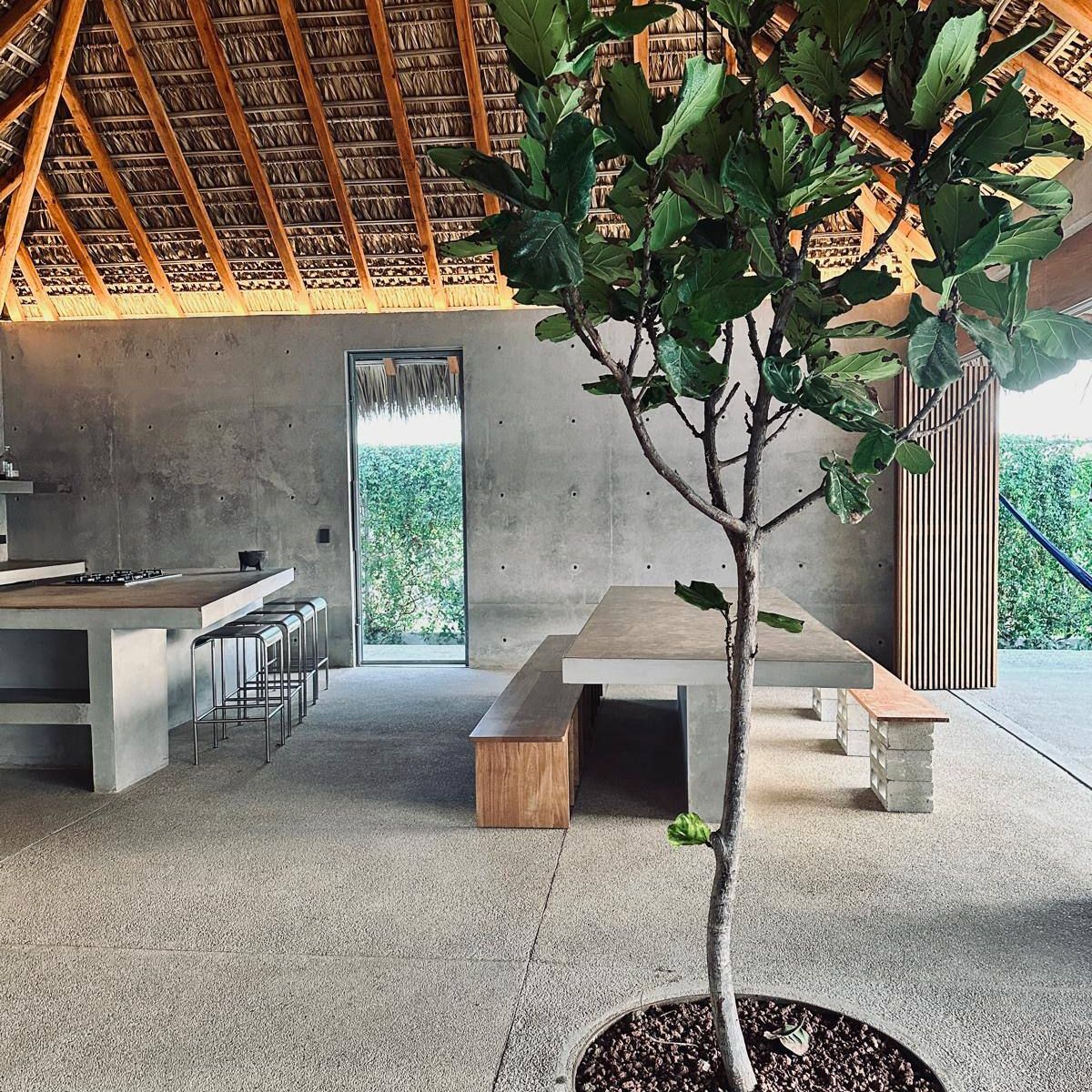 A space where modern design and brutalist architecture blend with the essence of the Oaxacan coast through the work of local artists, creating a cozy atmosphere immersed in the exuberance of a garden of endemic species that leads us to connect with nature uniquely.