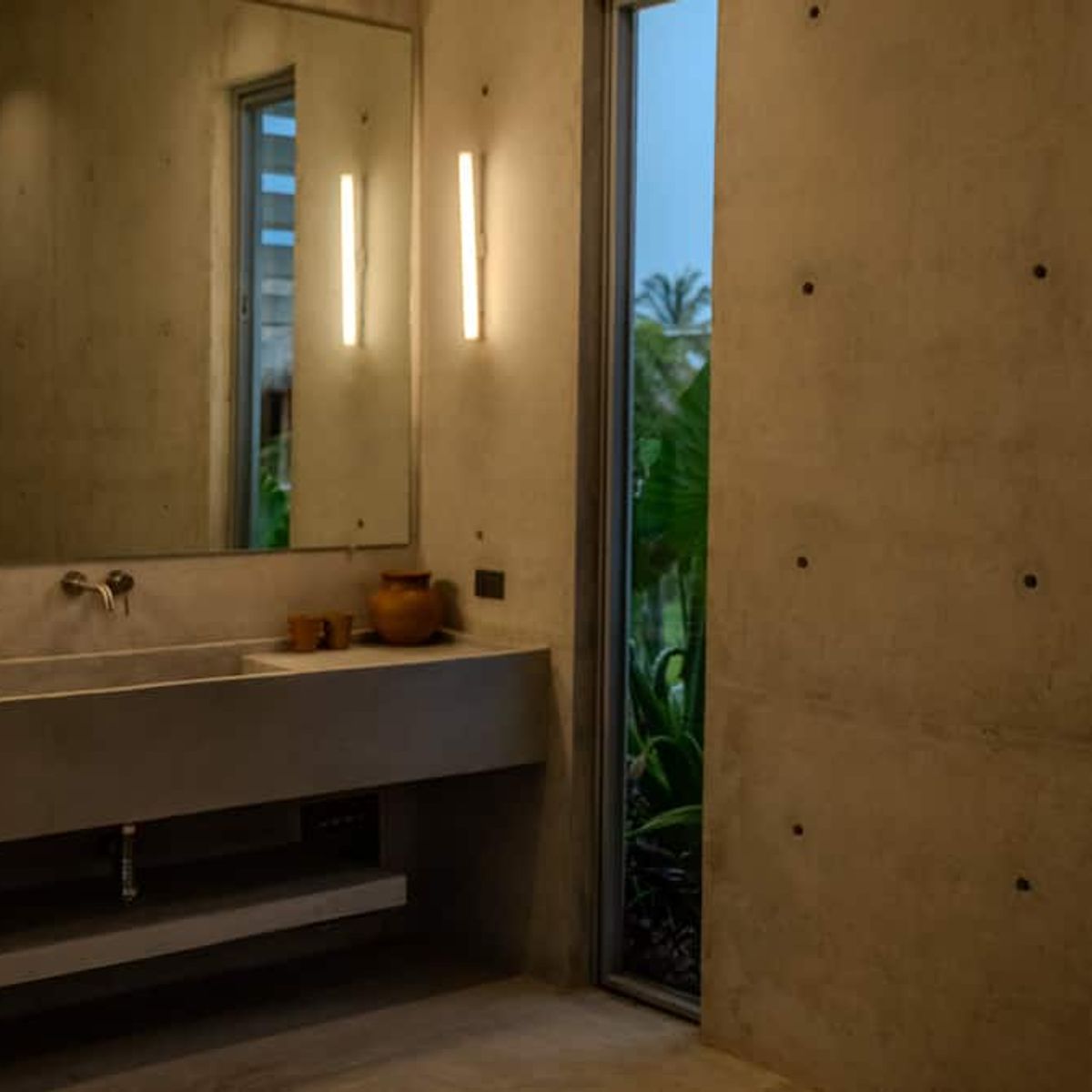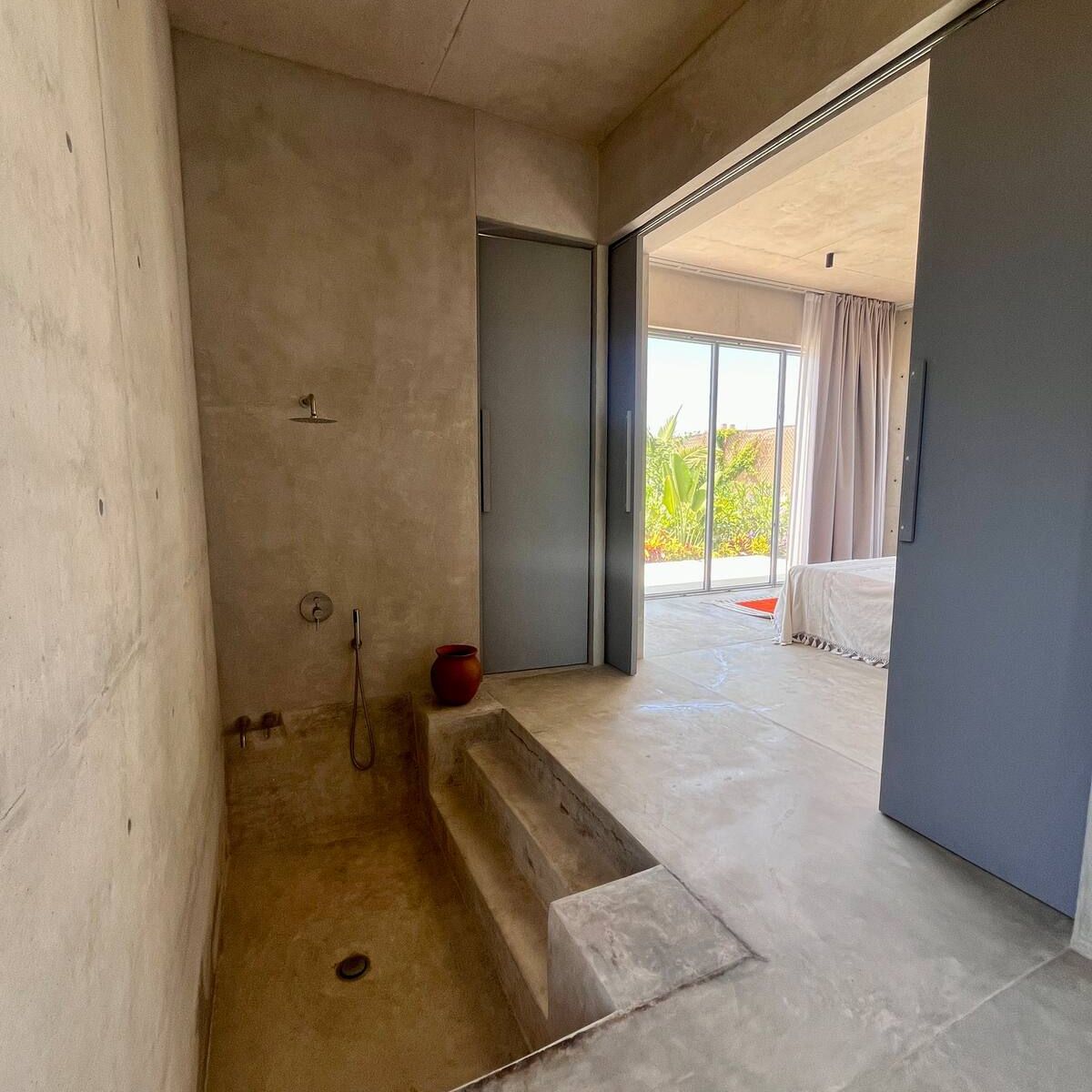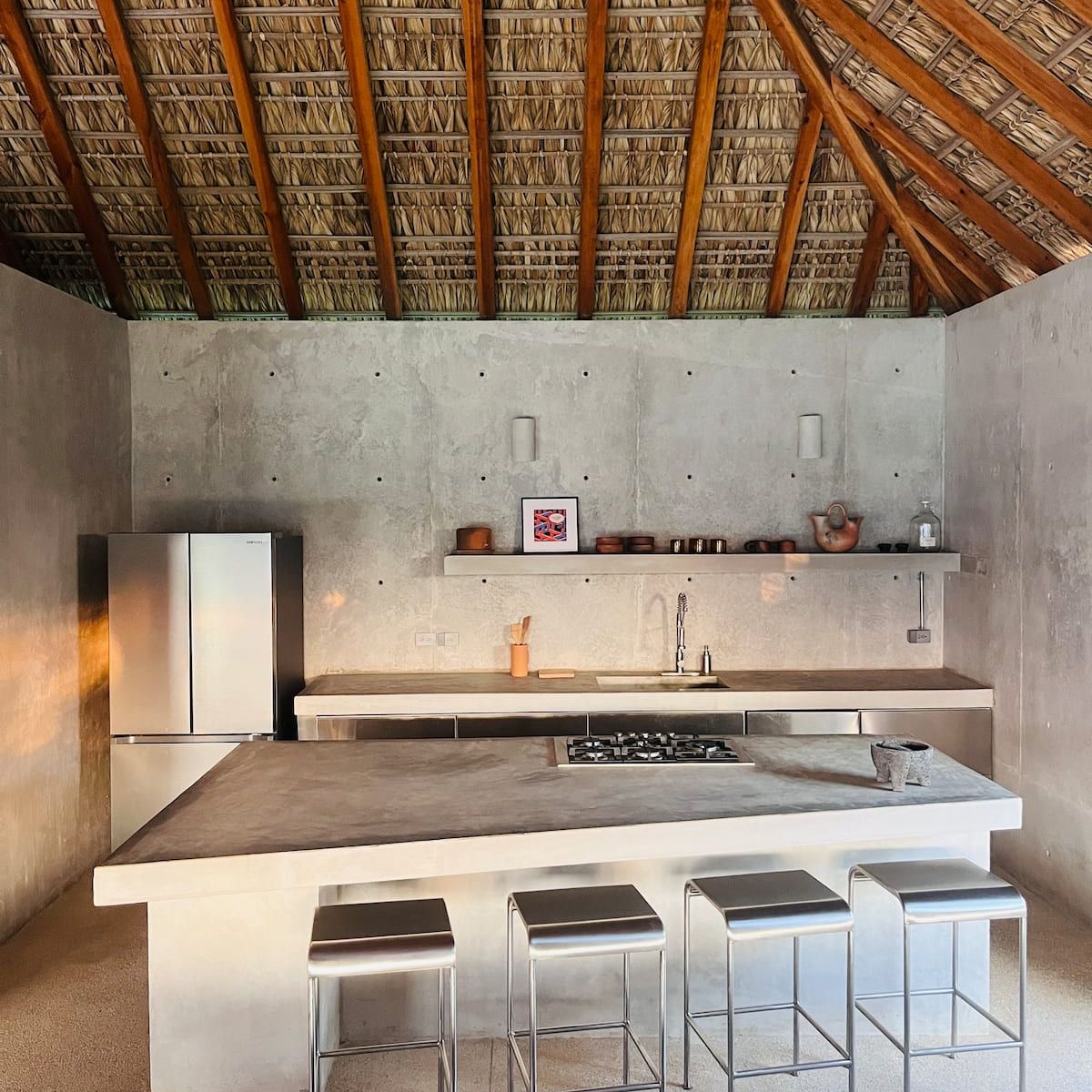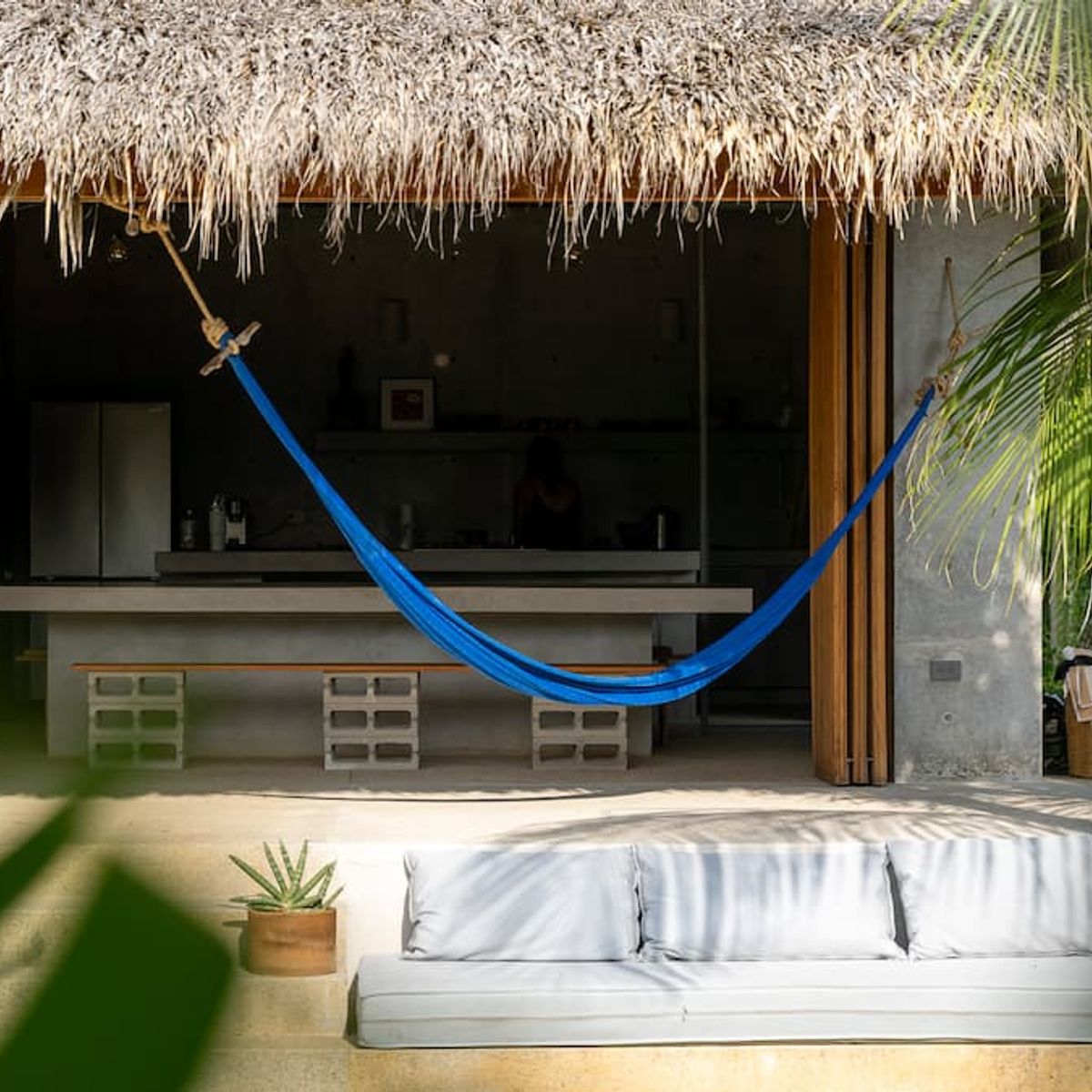 A space where modern design and brutalist architecture blend with the essence of the Oaxacan coast through the work of local artists, creating a cozy atmosphere immersed in the exuberance of a garden of endemic species that leads us to connect with nature uniquely.