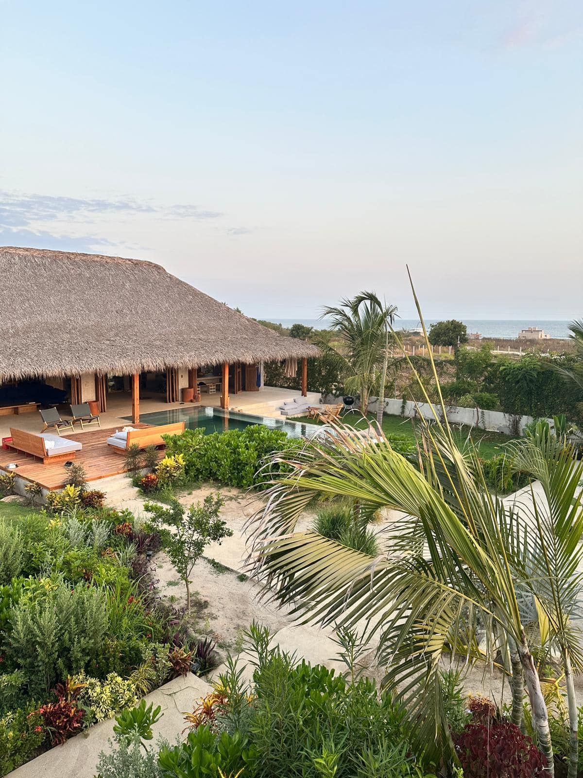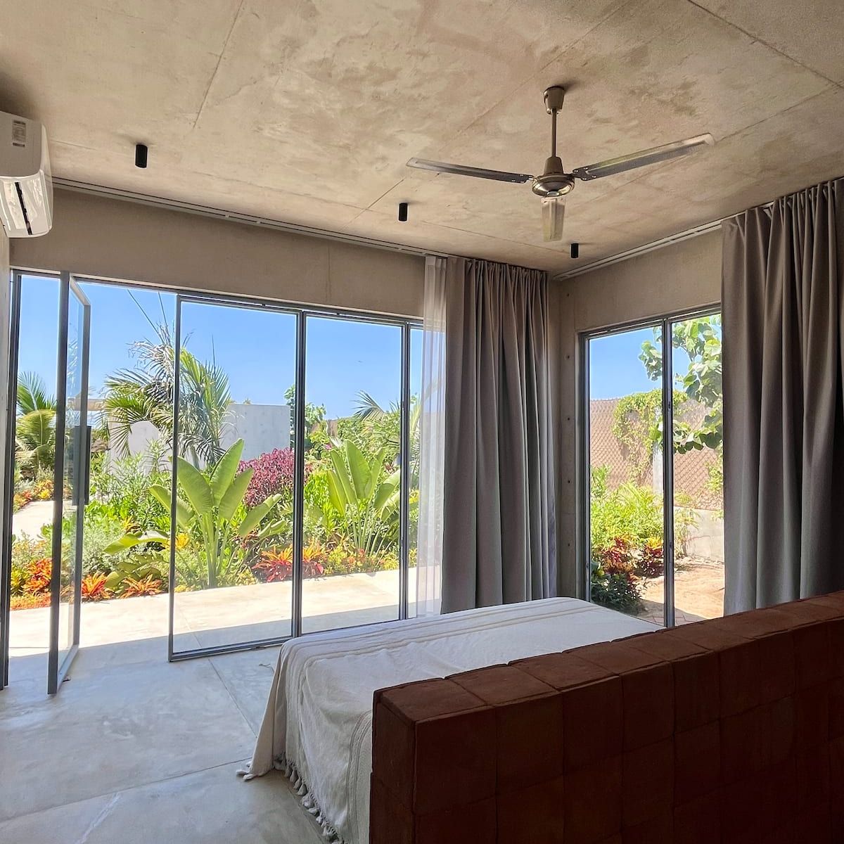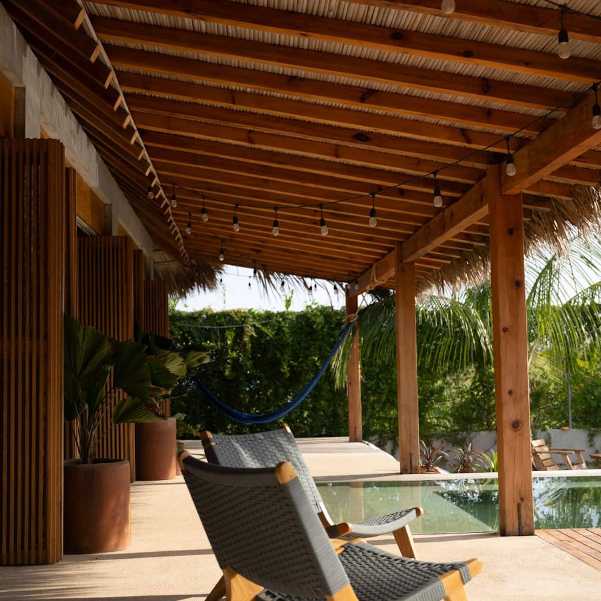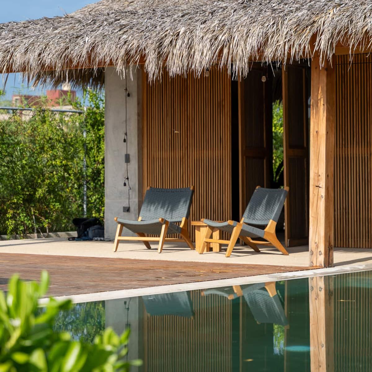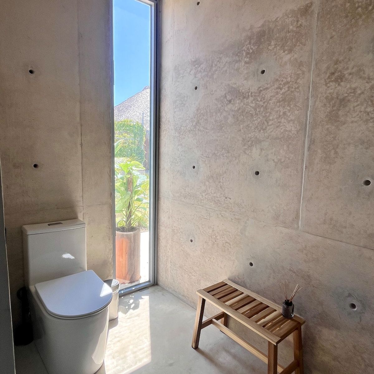 A space where modern design and brutalist architecture blend with the essence of the Oaxacan coast through the work of local artists, creating a cozy atmosphere immersed in the exuberance of a garden of endemic species that leads us to connect with nature uniquely.