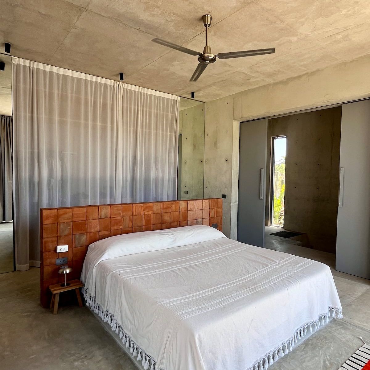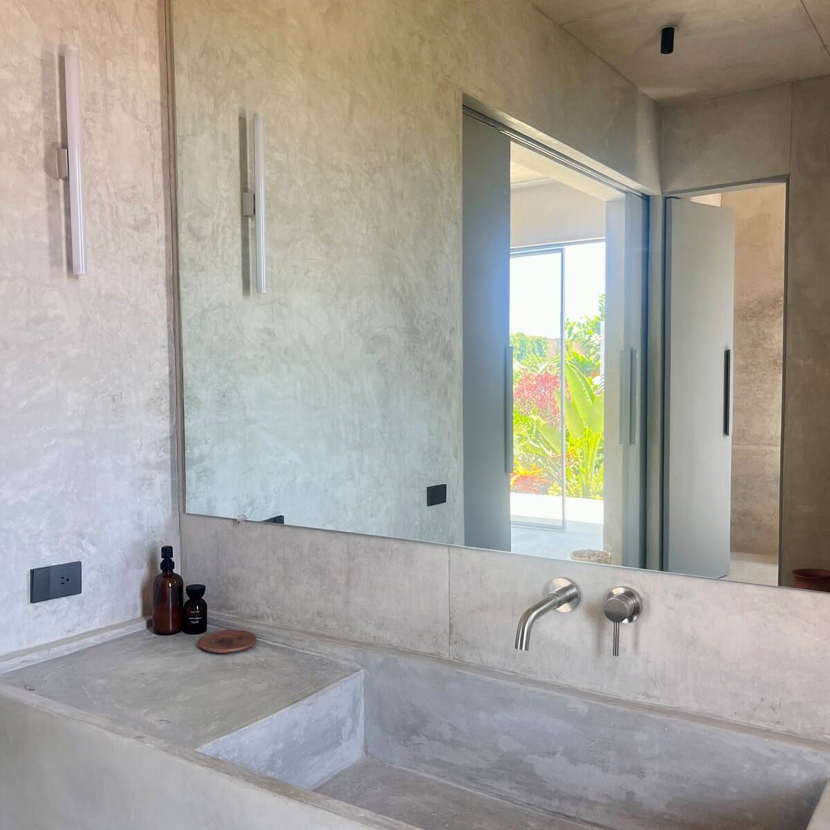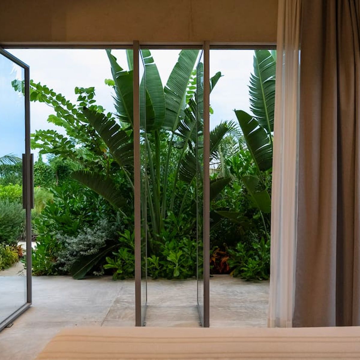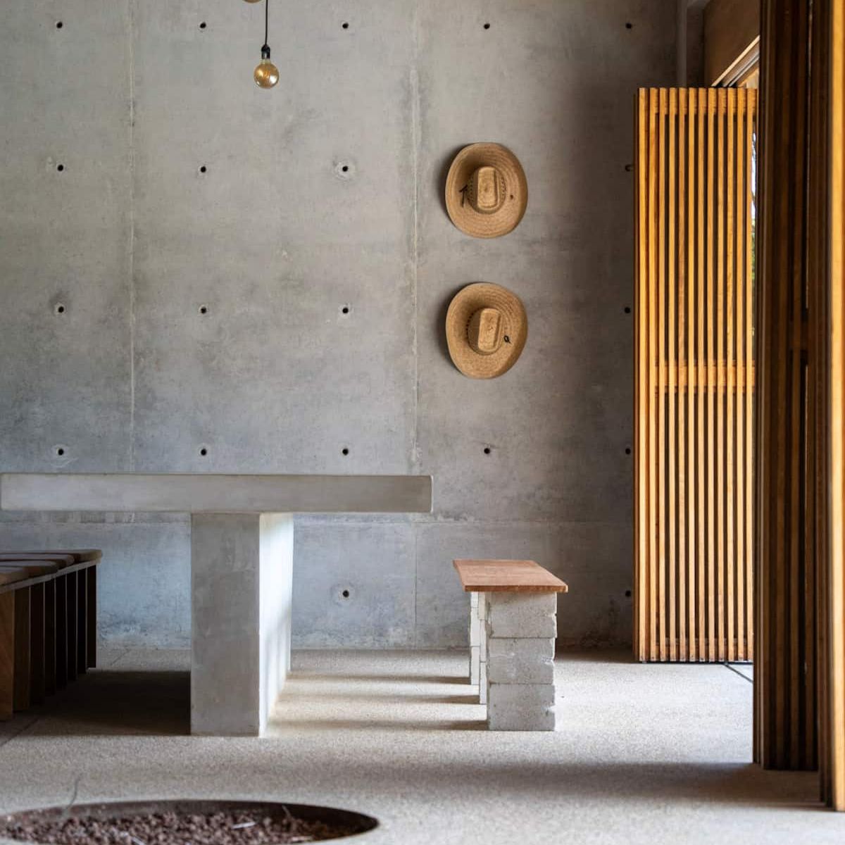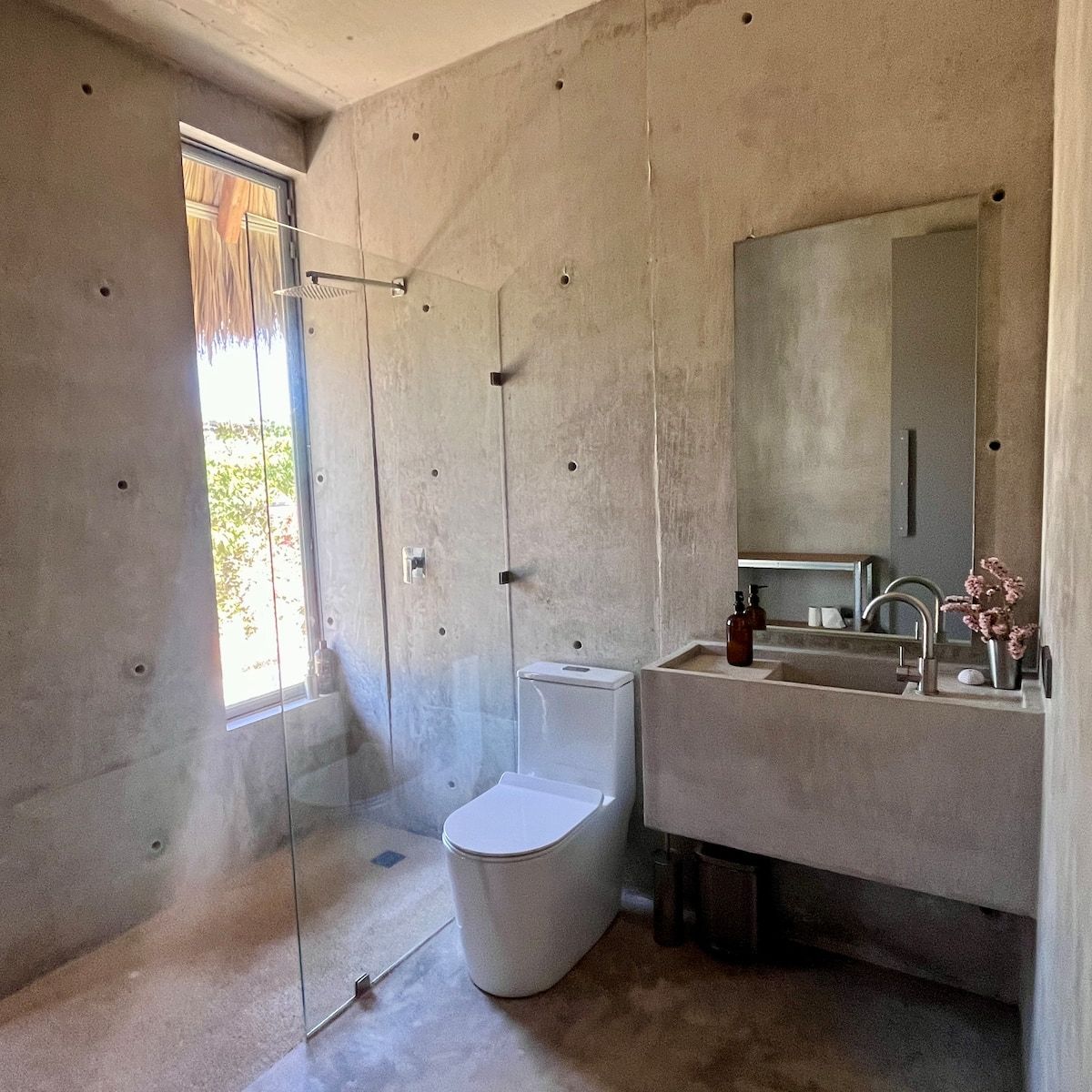 A space where modern design and brutalist architecture blend with the essence of the Oaxacan coast through the work of local artists, creating a cozy atmosphere immersed in the exuberance of a garden of endemic species that leads us to connect with nature uniquely.