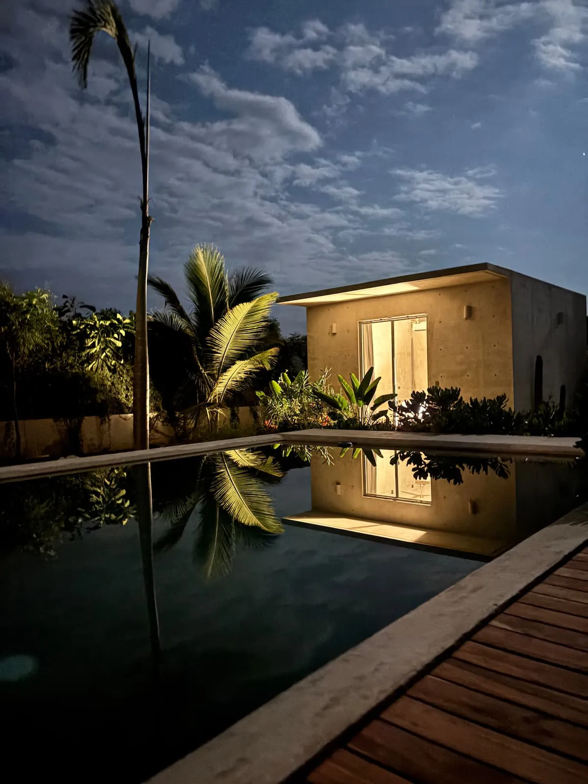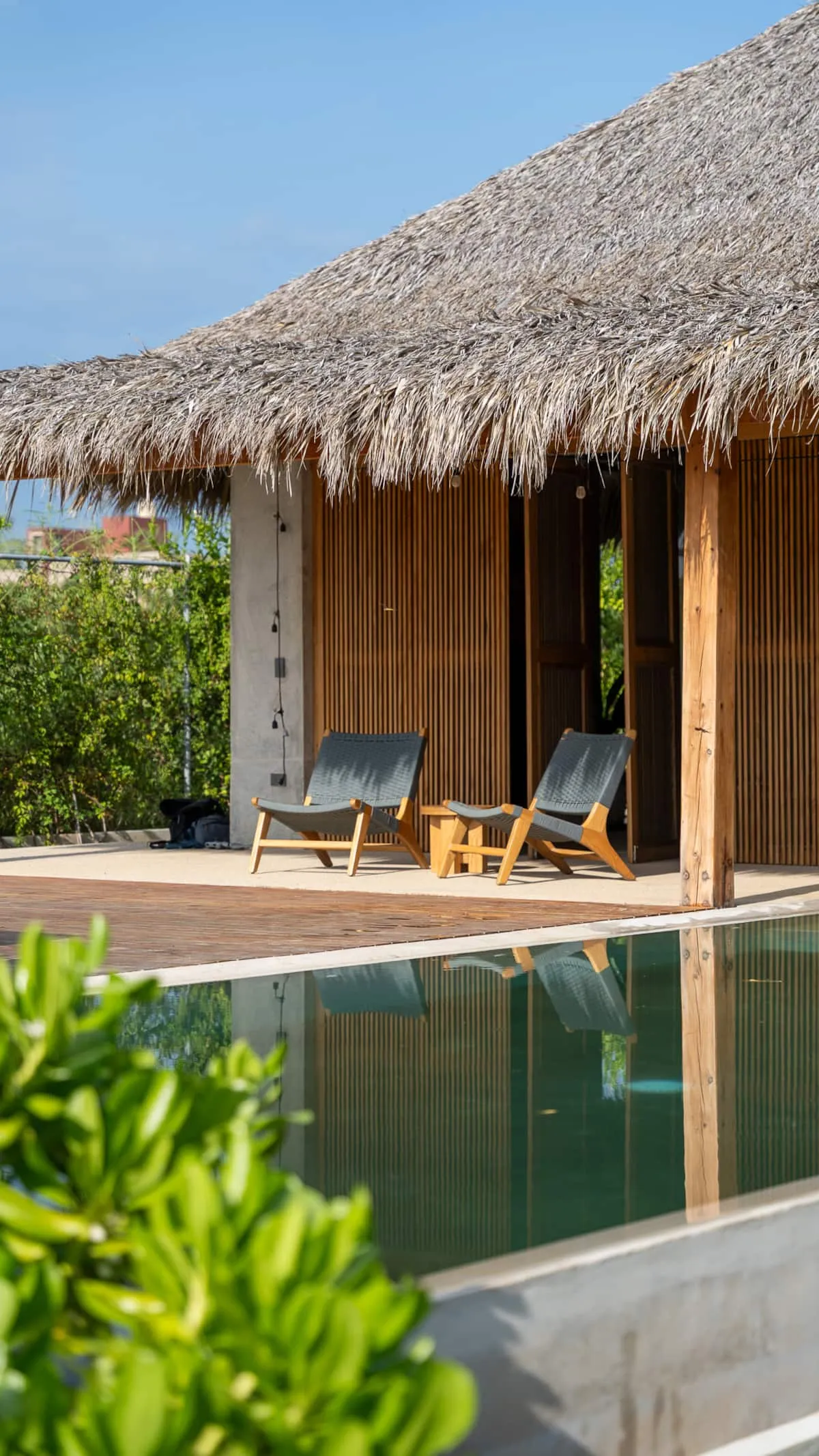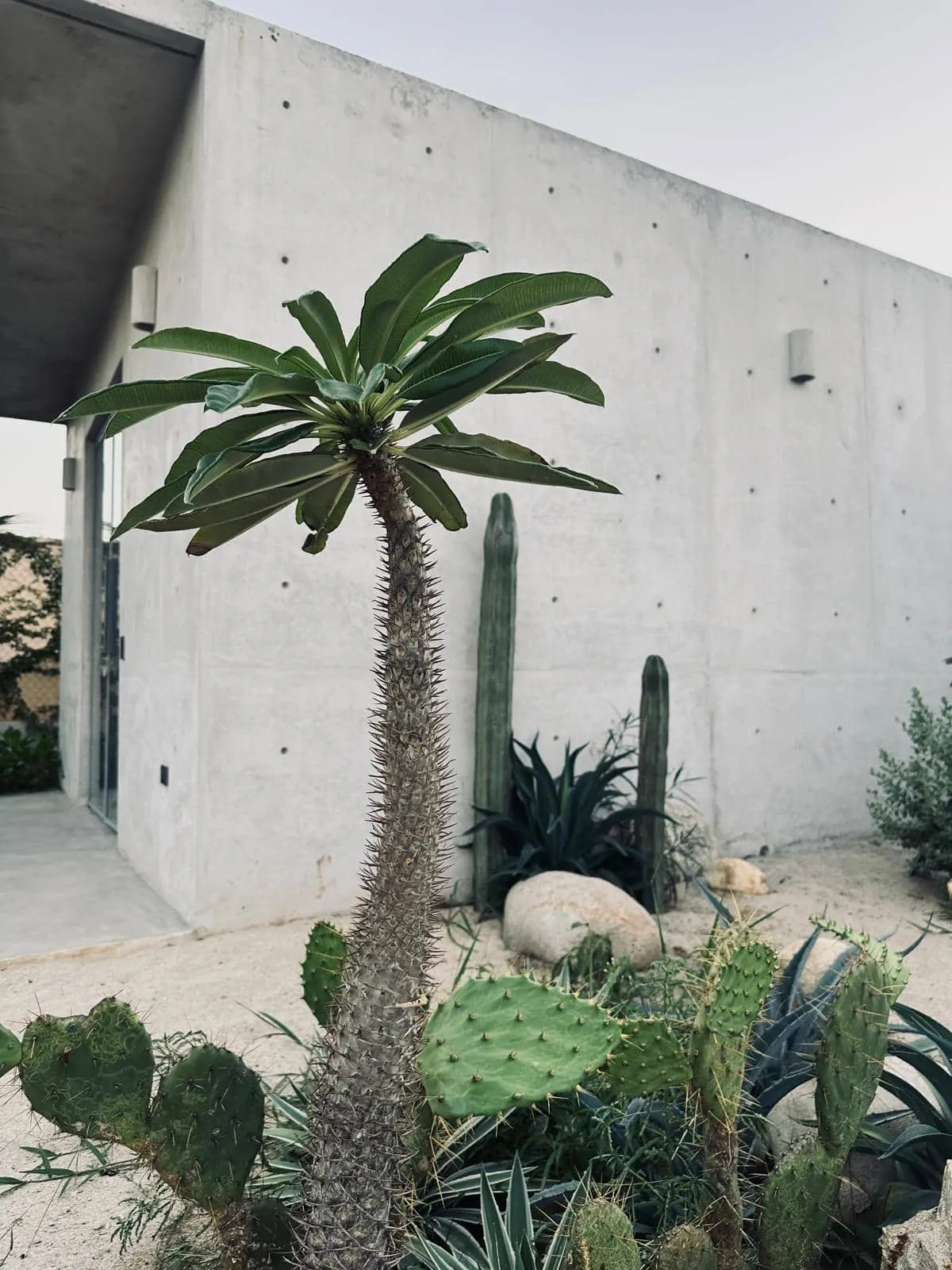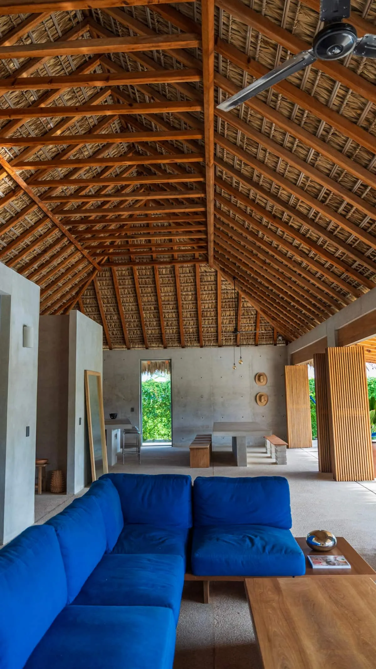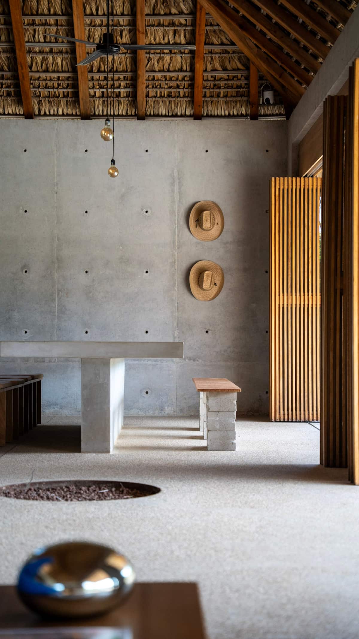 A space where modern design and brutalist architecture blend with the essence of the Oaxacan coast through the work of local artists, creating a cozy atmosphere immersed in the exuberance of a garden of endemic species that leads us to connect with nature uniquely.
