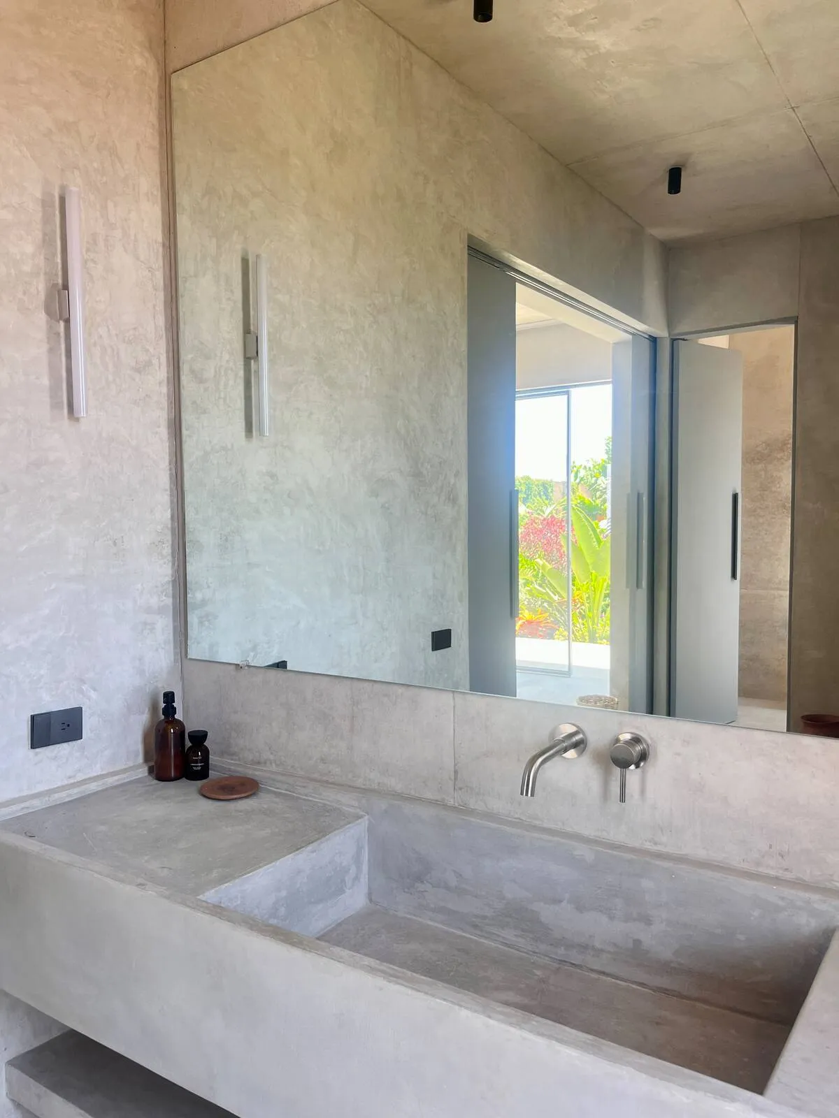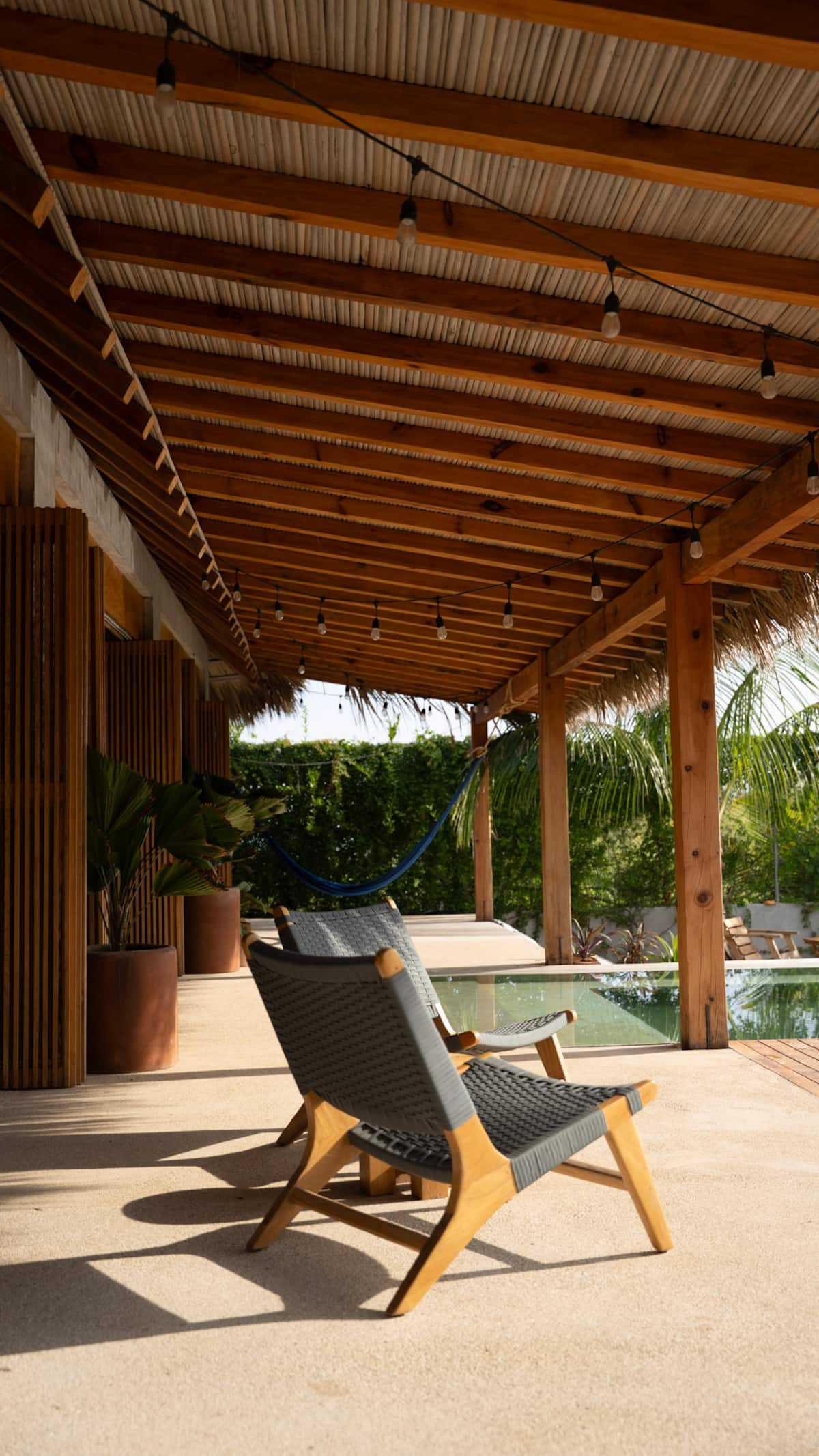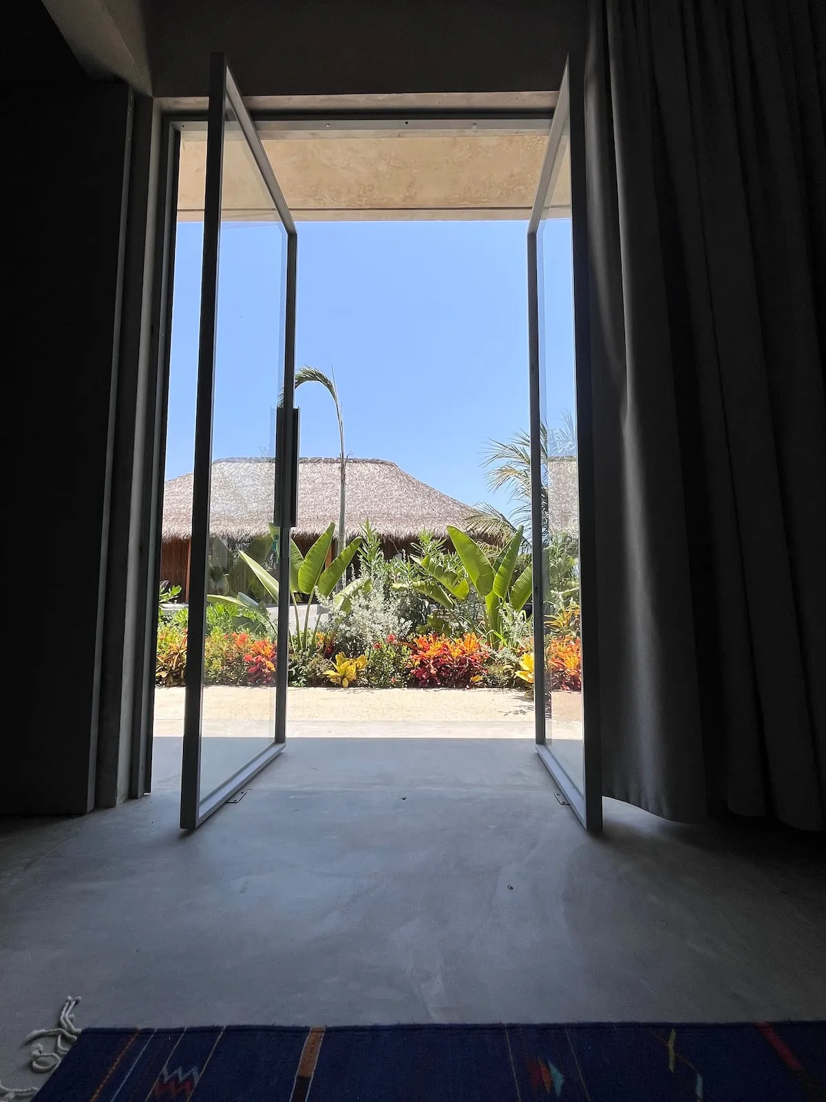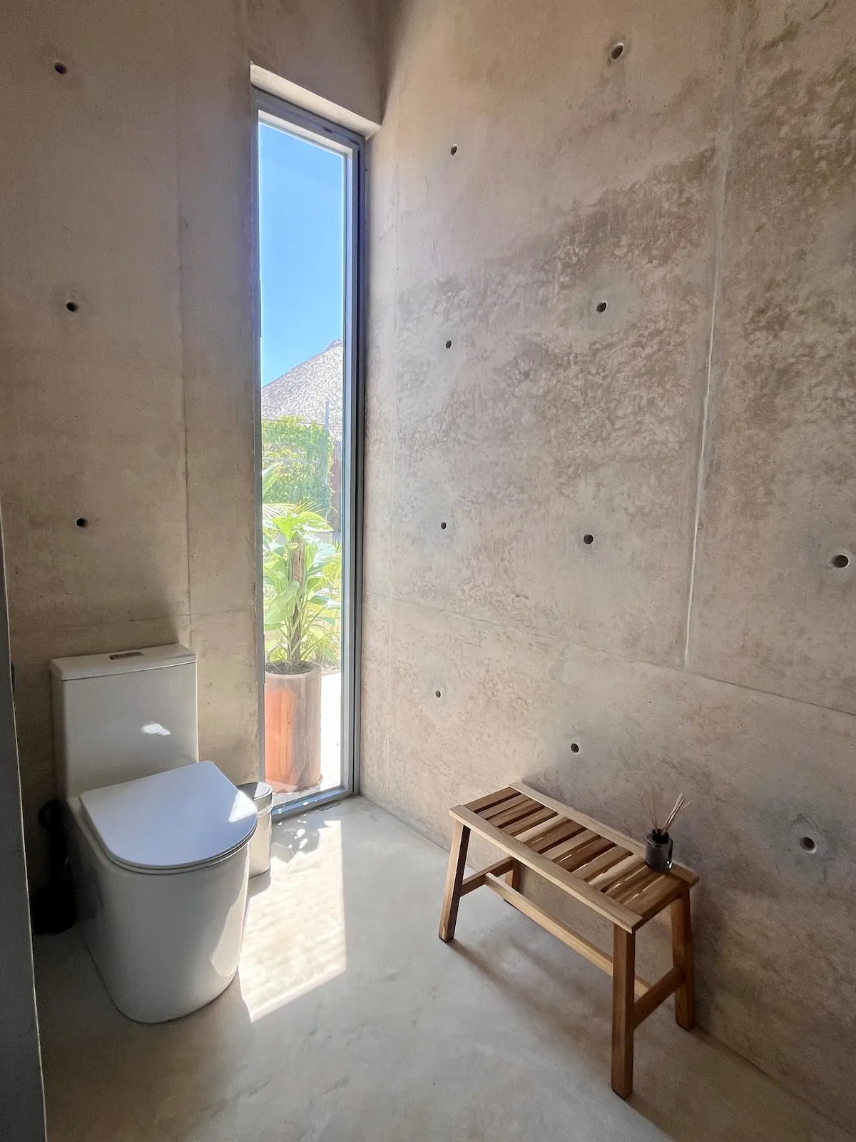 A space where modern design and brutalist architecture blend with the essence of the Oaxacan coast through the work of local artists, creating a cozy atmosphere immersed in the exuberance of a garden of endemic species that leads us to connect with nature uniquely.