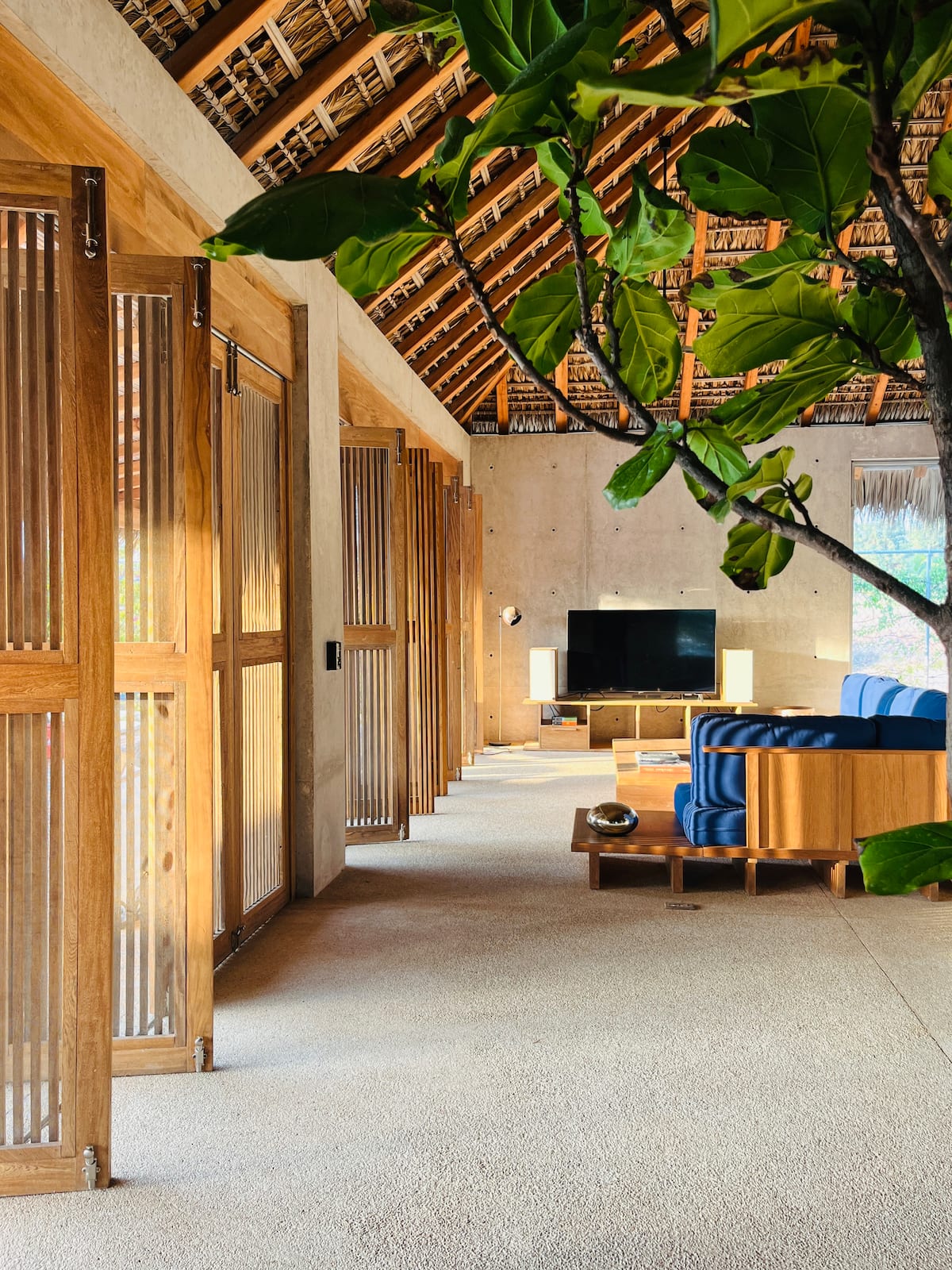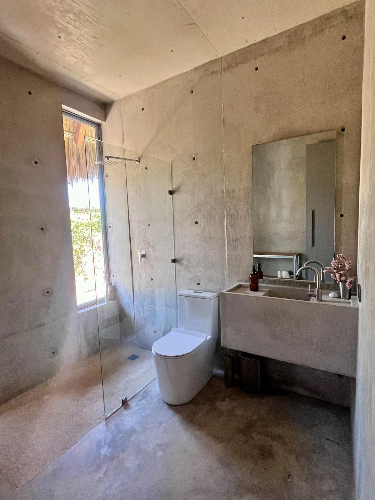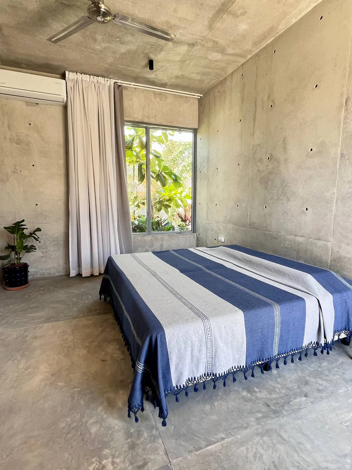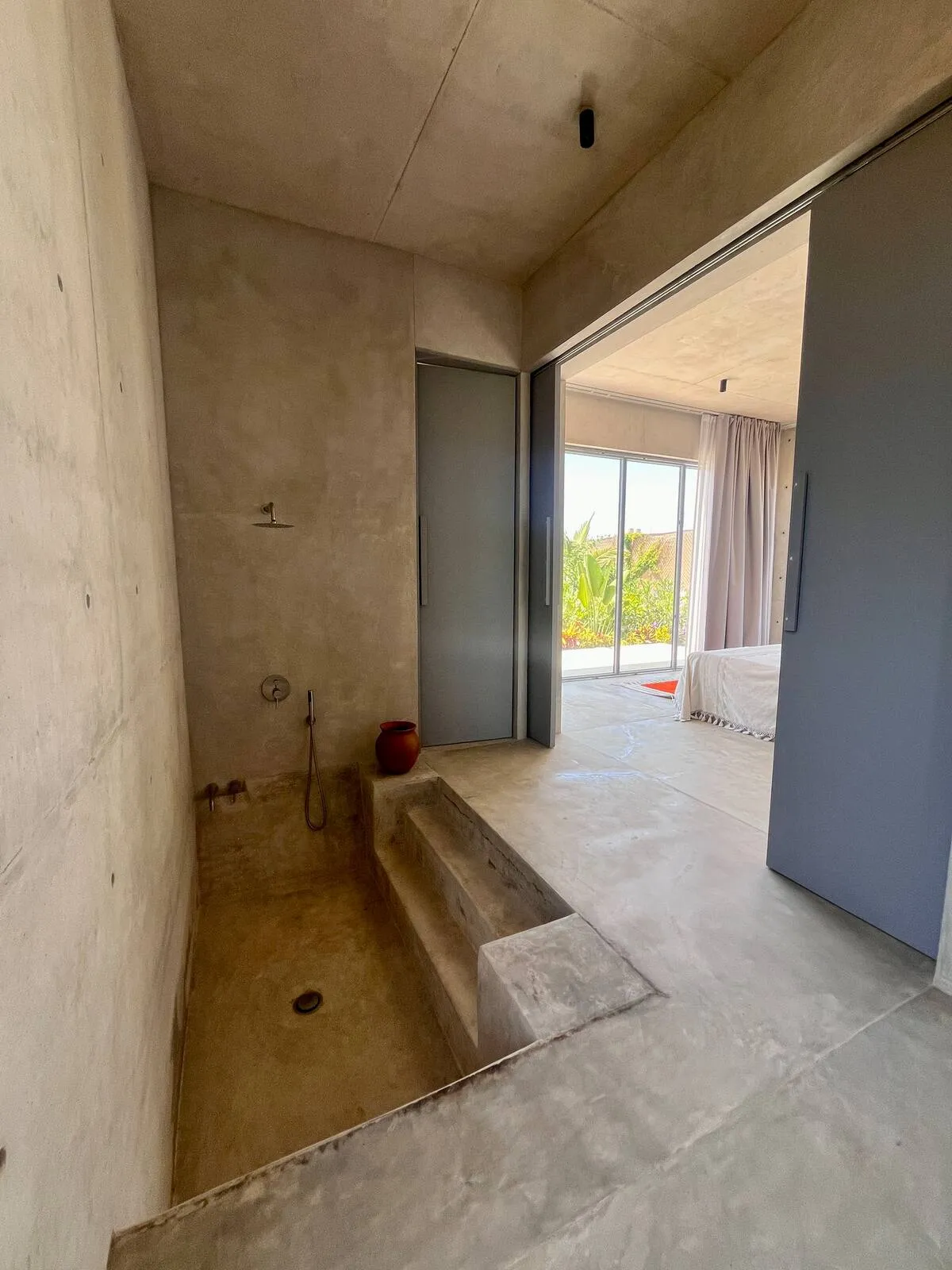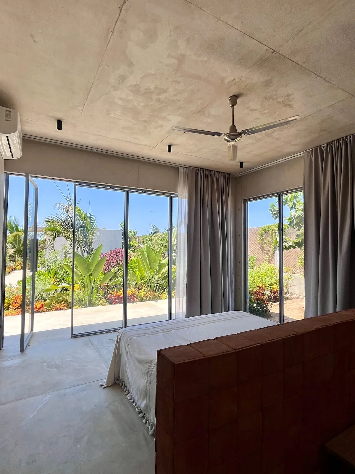 A space where modern design and brutalist architecture blend with the essence of the Oaxacan coast through the work of local artists, creating a cozy atmosphere immersed in the exuberance of a garden of endemic species that leads us to connect with nature uniquely.