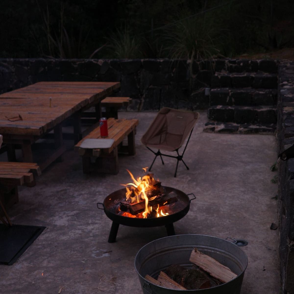 Step outside to the inviting outdoor dining area, complete with different-sized BBQ grills, essential tools, charcoal, an exterior cooler box, and basic camping gear such as chairs and mats. Set up a cozy spot on the grass to immerse yourself in the beauty of the outdoors during your stay.