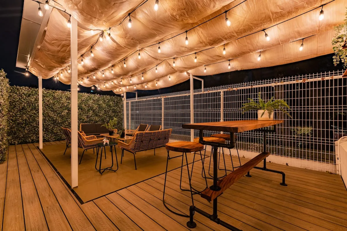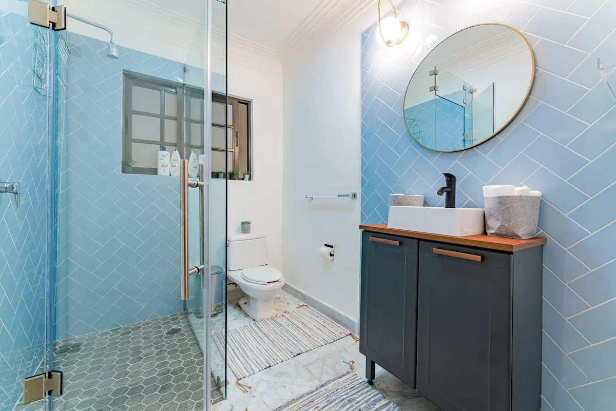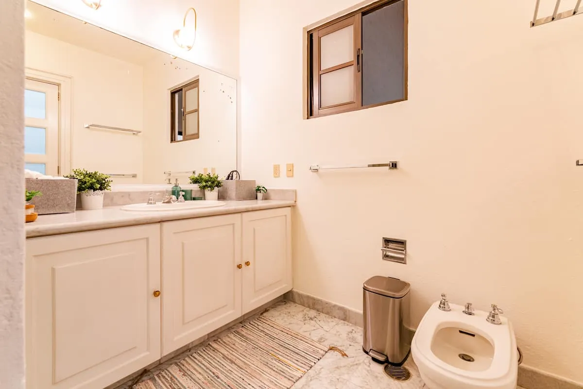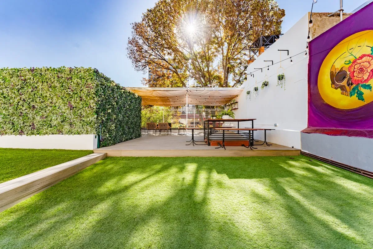 The upper floor of the home includes a rooftop terrace with lounge seating, dining area, barbecue, and full bathroom. This home is ideal for families or groups seeking comfort, space, and walkable access to La Condesa’s best cafés, parks, and nightlife.