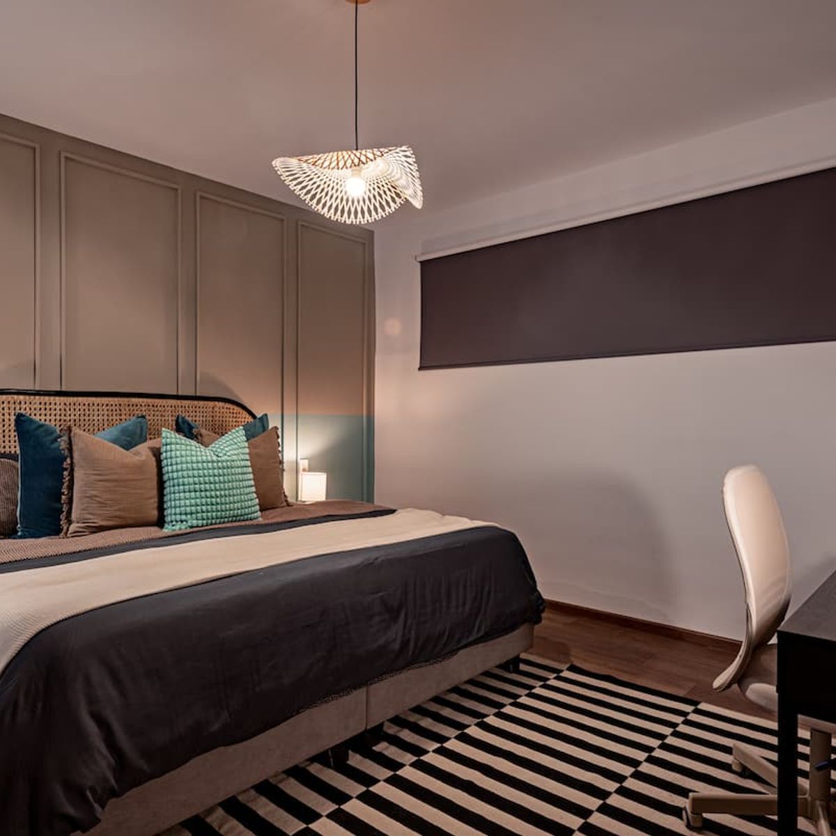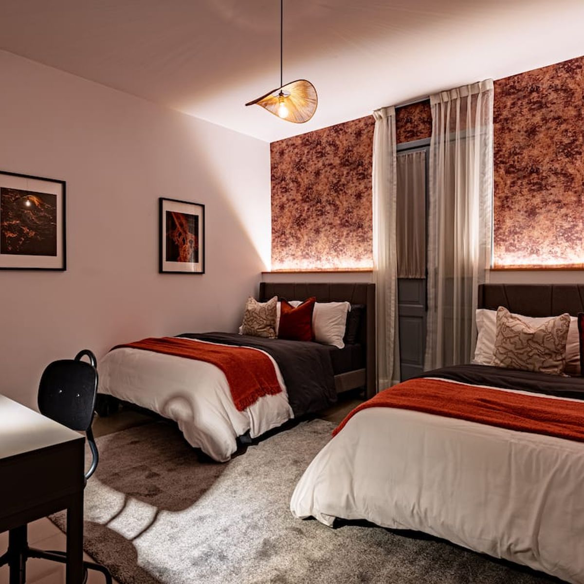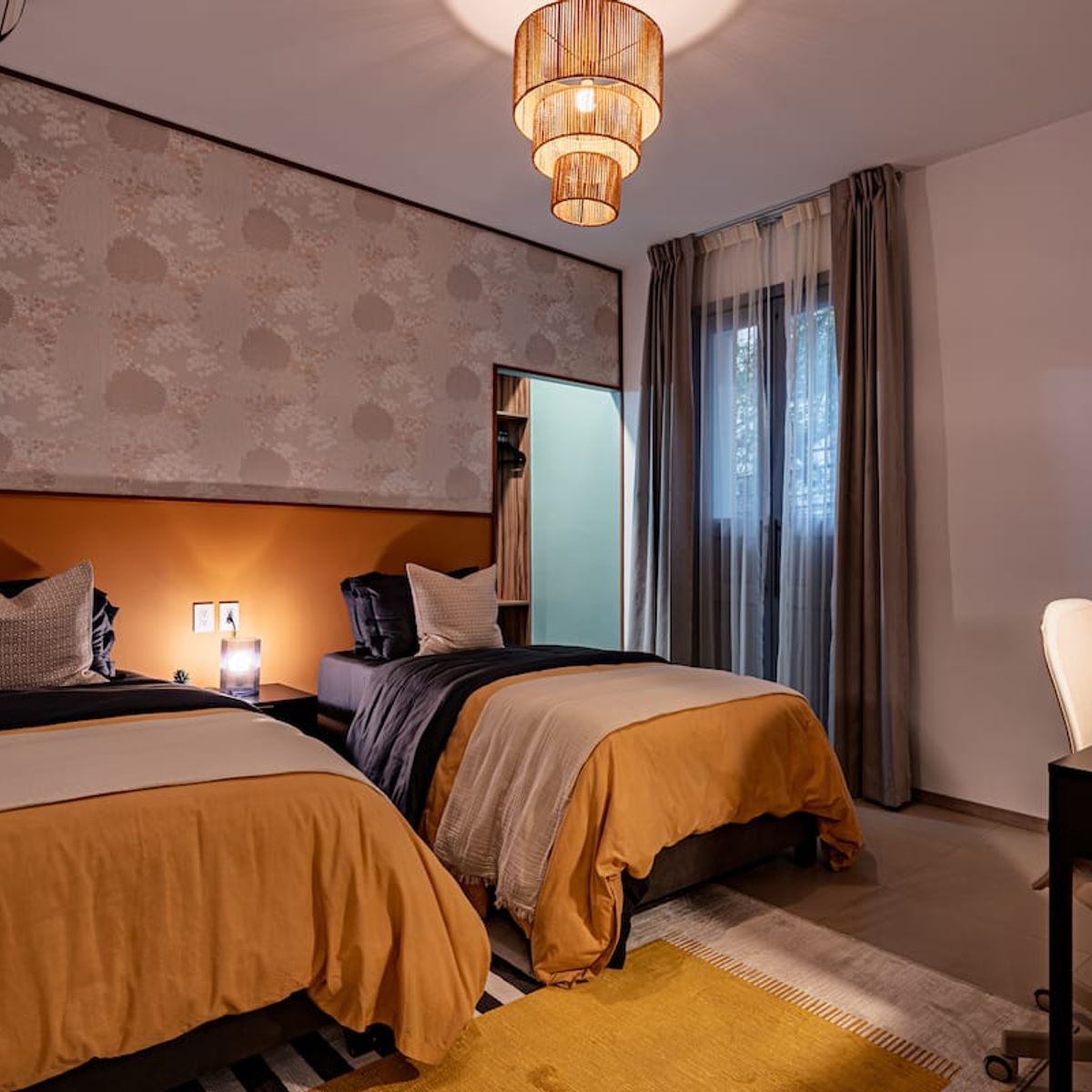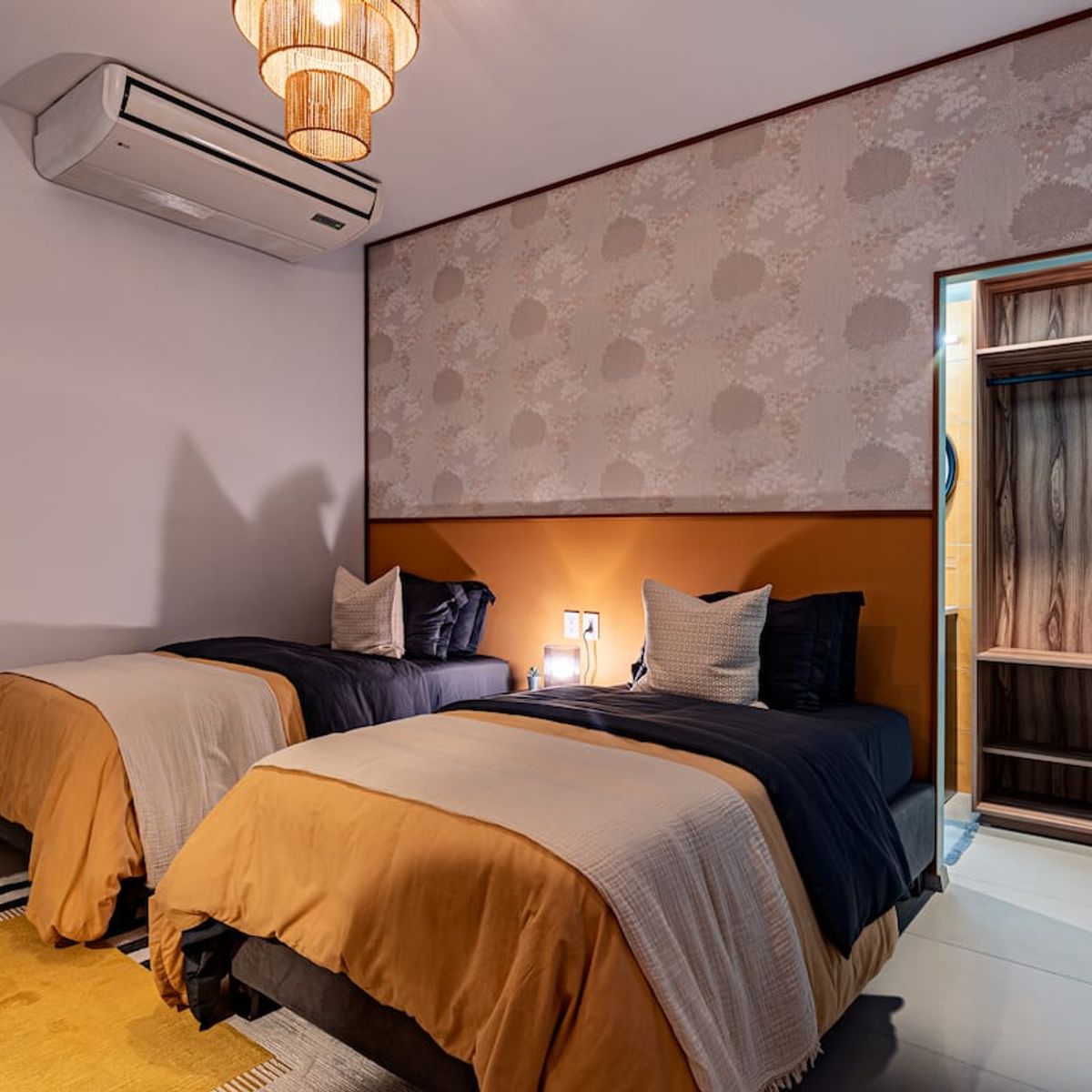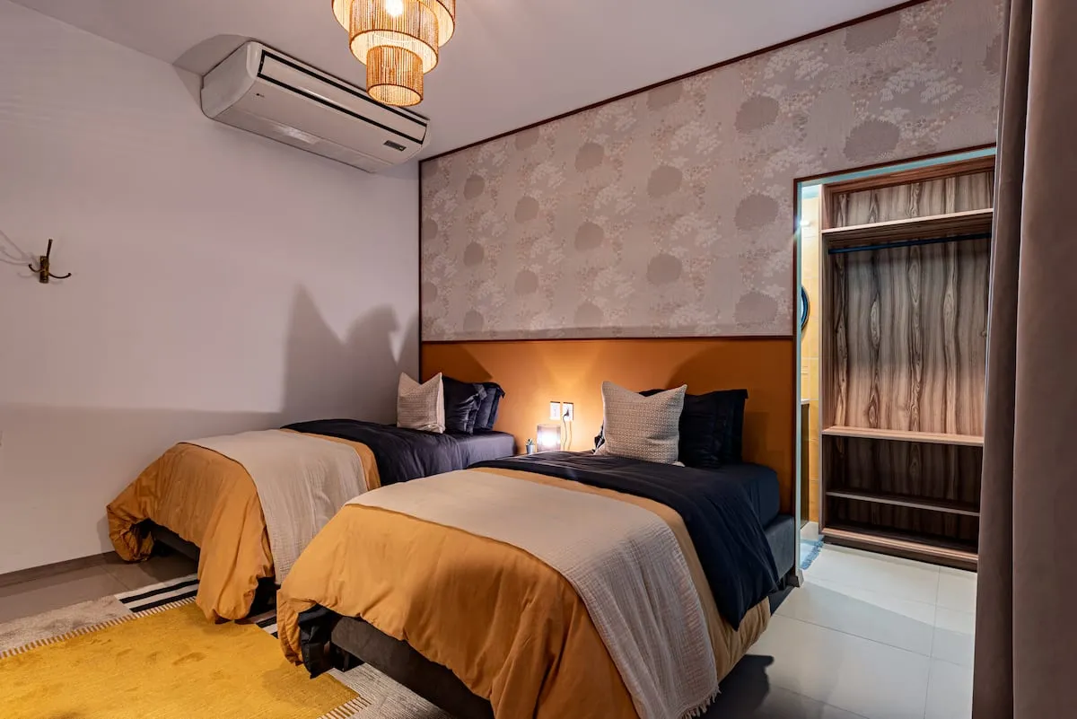 This stunning 8-bedroom home with AC accommodates 16+ guests and combines contemporary design with warm, inviting spaces. Enjoy a spacious rooftop terrace featuring a fully equipped kitchen and panoramic city views — perfect for morning coffee or evening gatherings .
