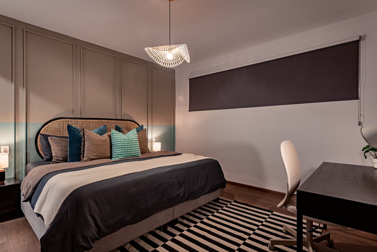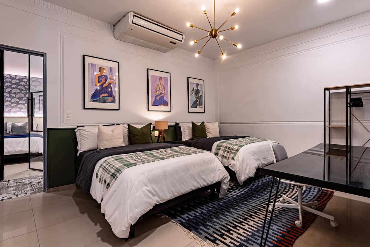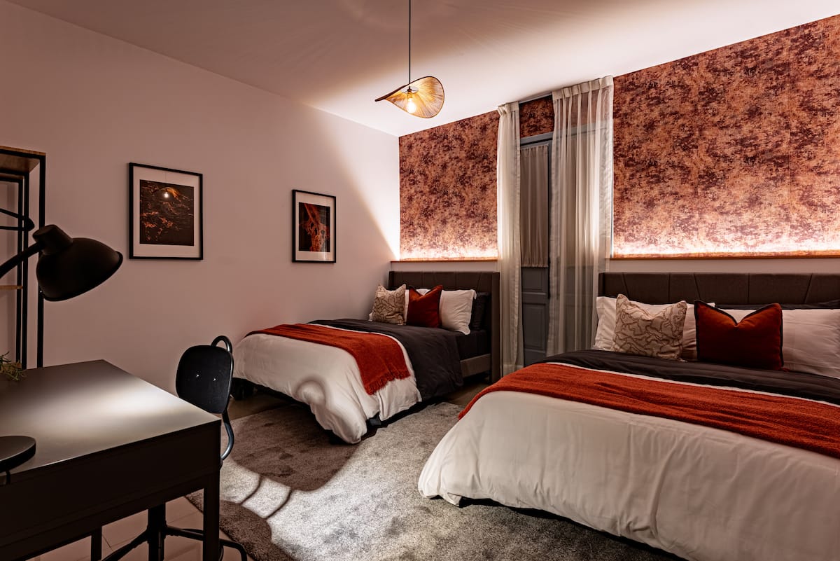 This stunning 8-bedroom home with AC accommodates 16+ guests and combines contemporary design with warm, inviting spaces. Enjoy a spacious rooftop terrace featuring a fully equipped kitchen and panoramic city views — perfect for morning coffee or evening gatherings .