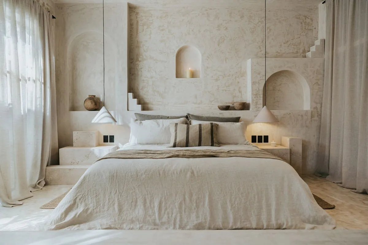 Adjacent to the pool, you'll find our intimate guest bedroom, complete with a queen-size bed, a fan, AC, and conveniently placed plugs on both sides of the bed for charging phones or laptops. Day and night curtains ensure privacy and shading for your comfort.Inside the main apartment, you'll discover a beautifully appointed space with plenty of room to relax, whether it's on the large L-shaped sofa, the sumptuous king-size bed, or at the inviting dining table.