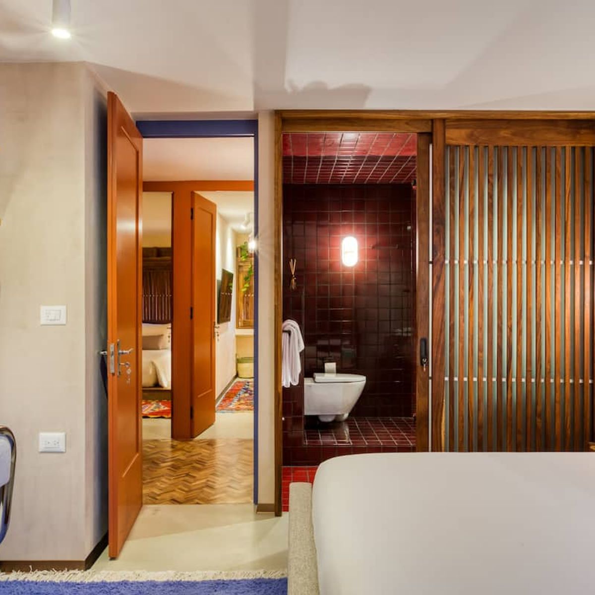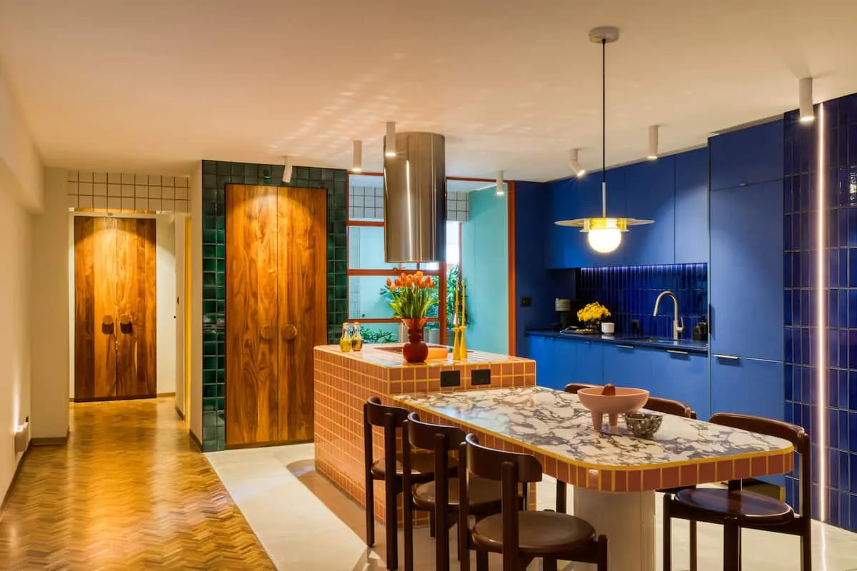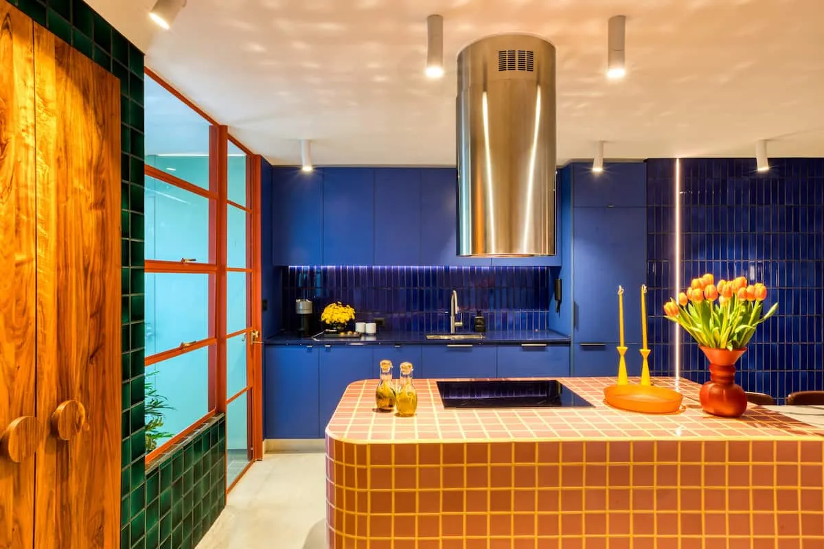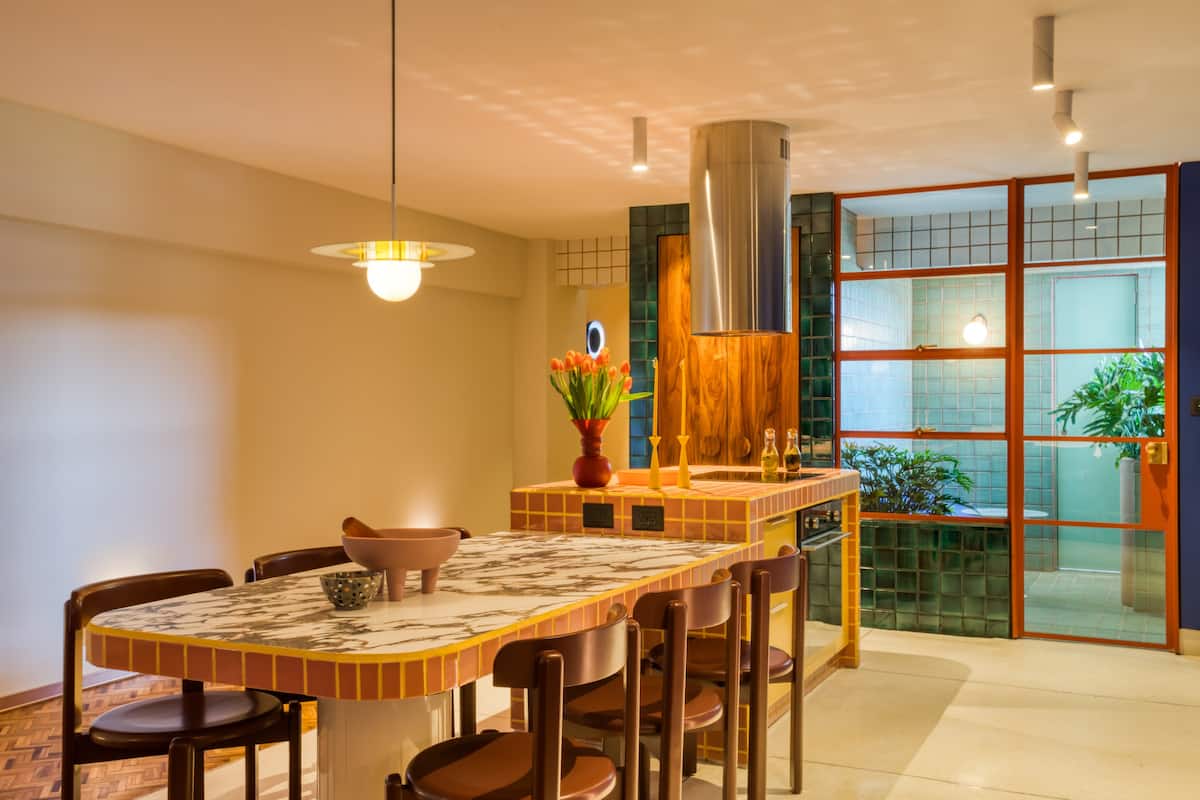 We love this home because of the stunning kitchen, beautiful tile work, quality handcrafted furniture, colorful spaces, private terrace, and comfortable beds.
