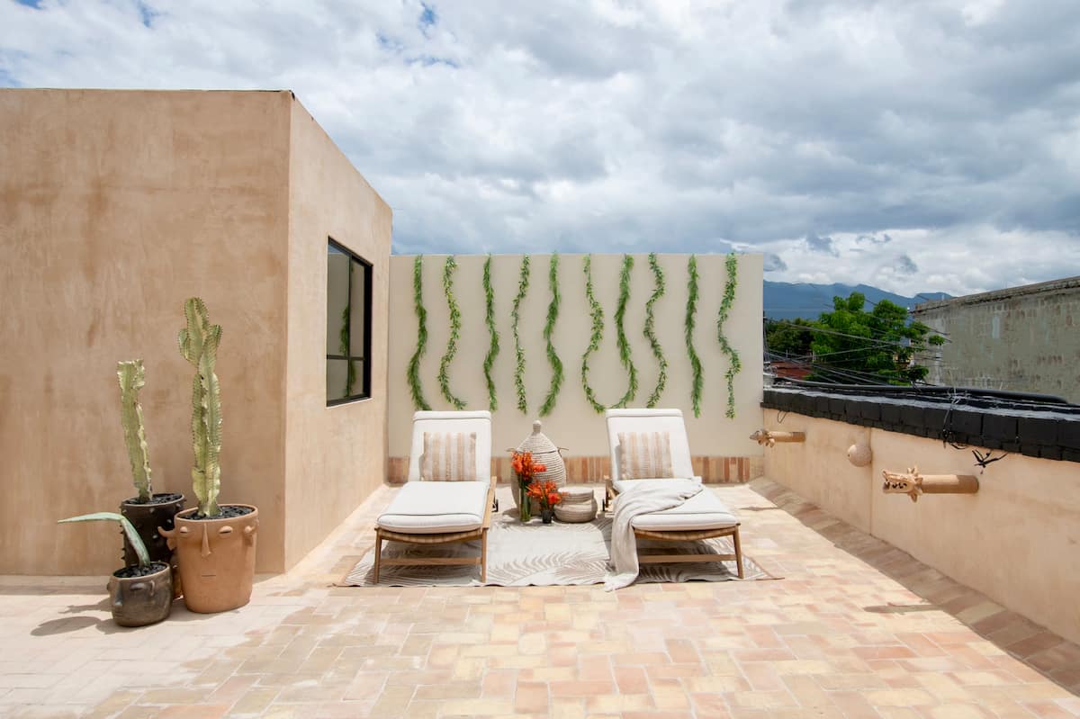 A highlight of the property is its expansive rooftop terrace, offering breathtaking views of the surrounding architecture and a unique garden inspired by the Árbol del Pochote — an ideal setting to unwind above the city.