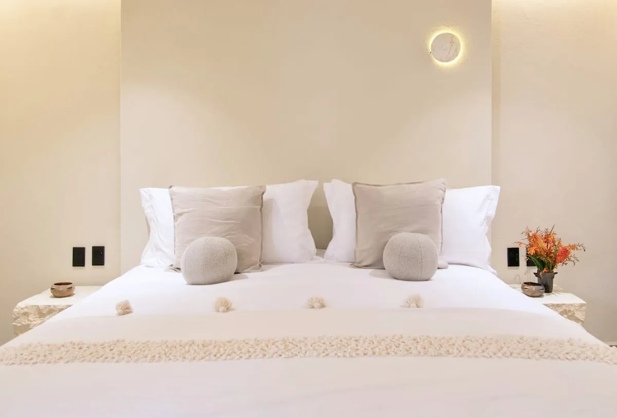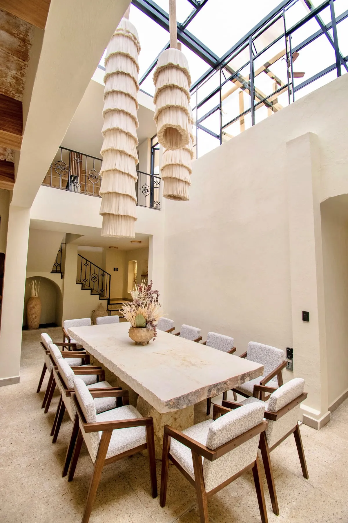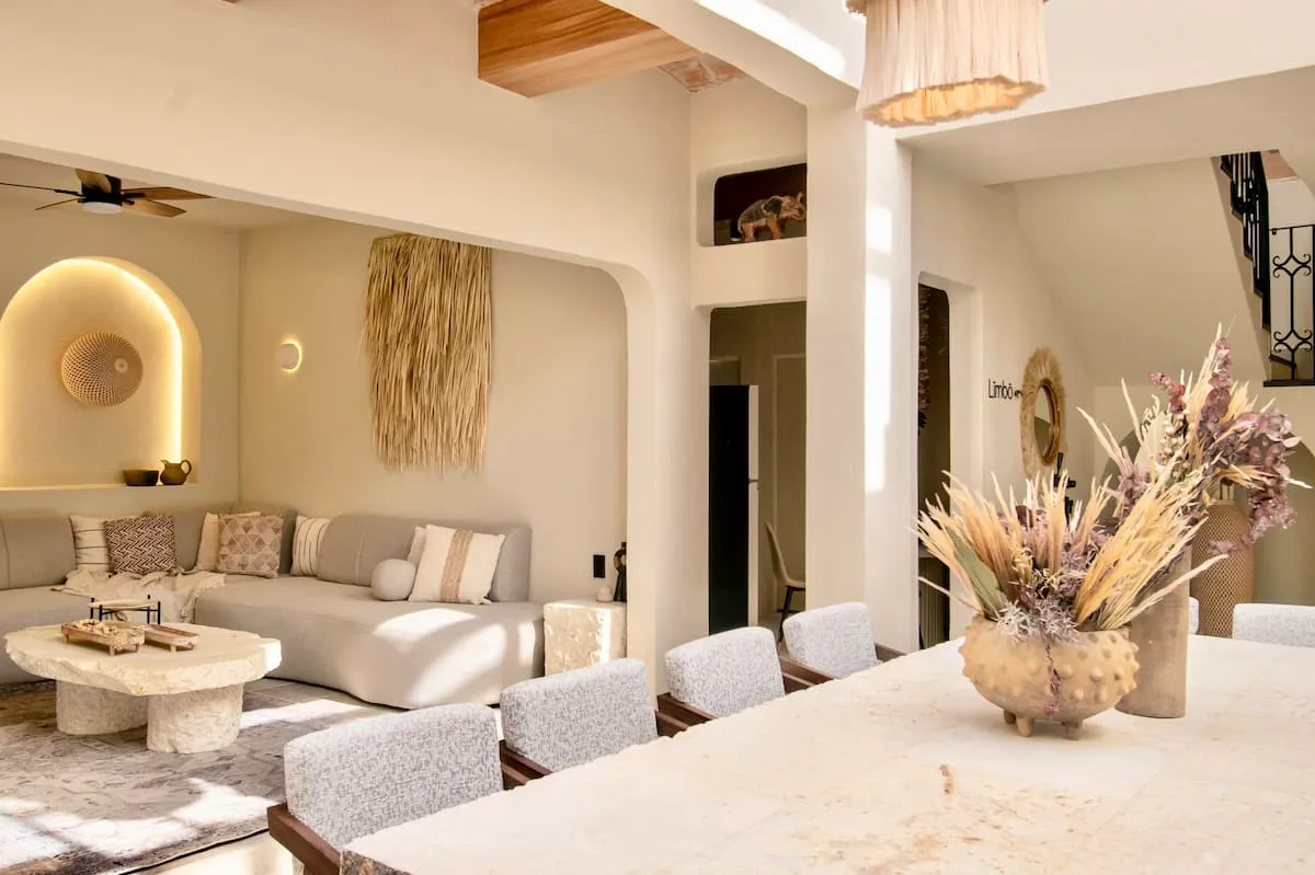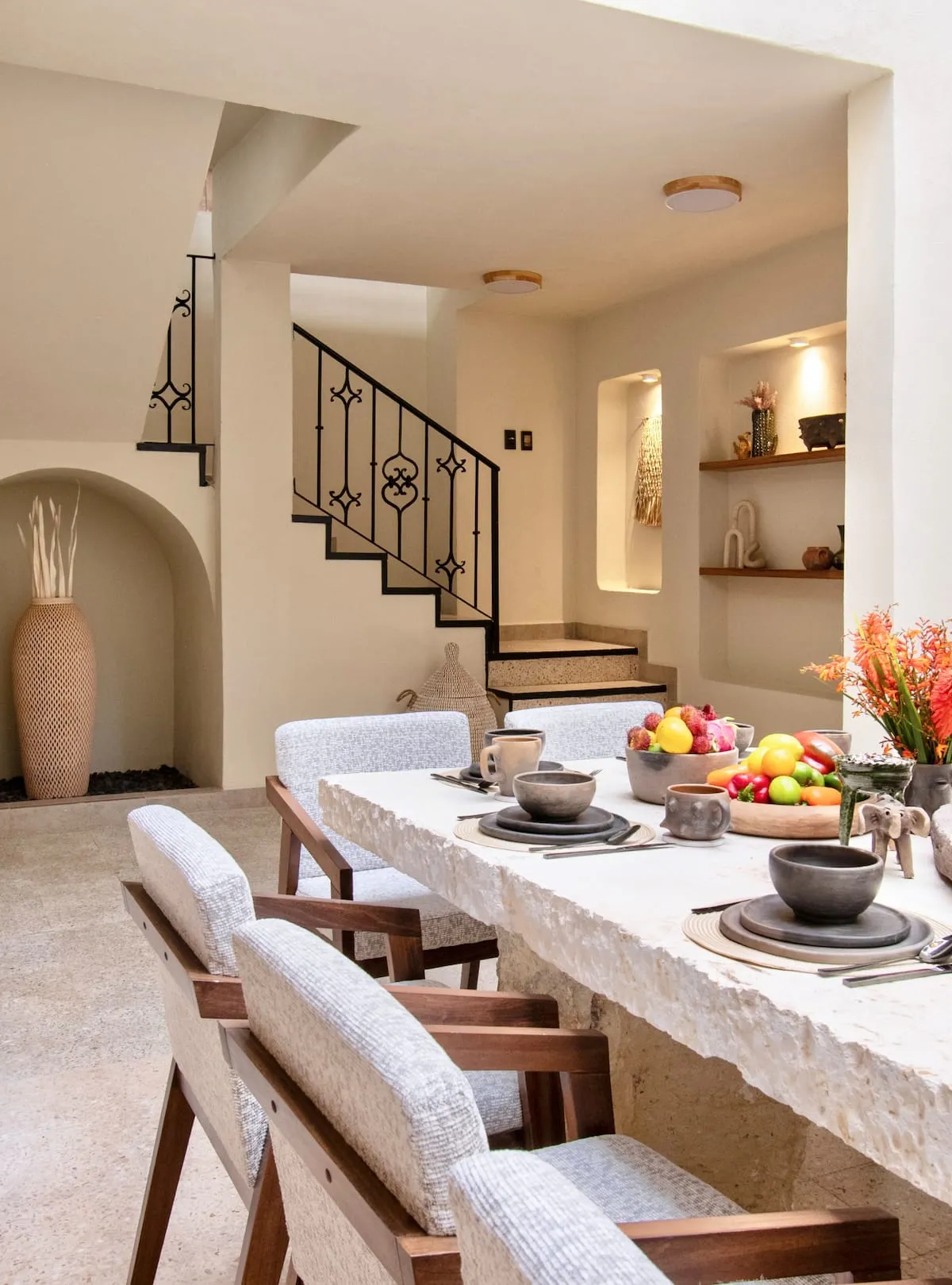 Thoughtfully curated with artisan-made furniture, handwoven textiles, black clay accents, and sculptural pottery, the home reflects the rich cultural heritage of Oaxaca while offering a calm and elevated living experience.