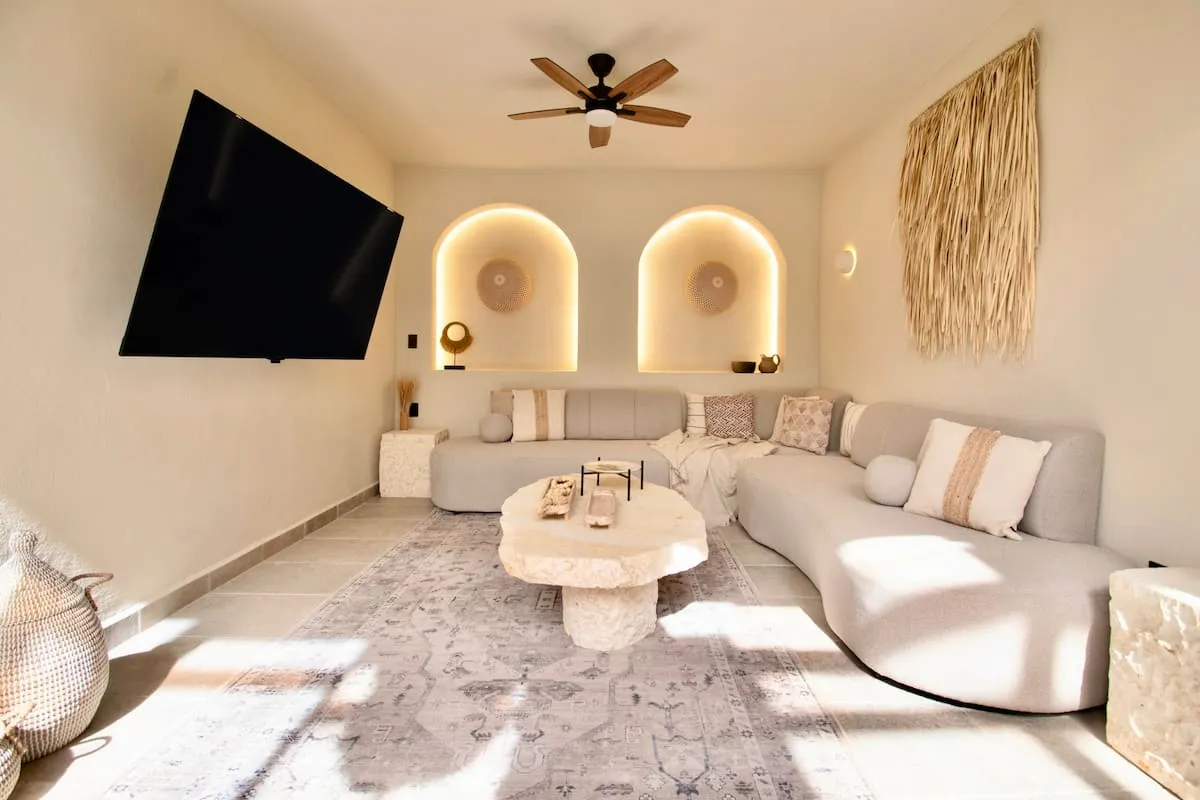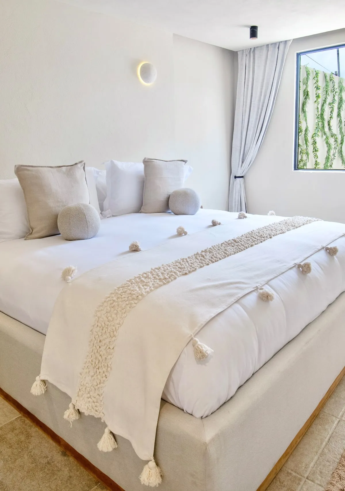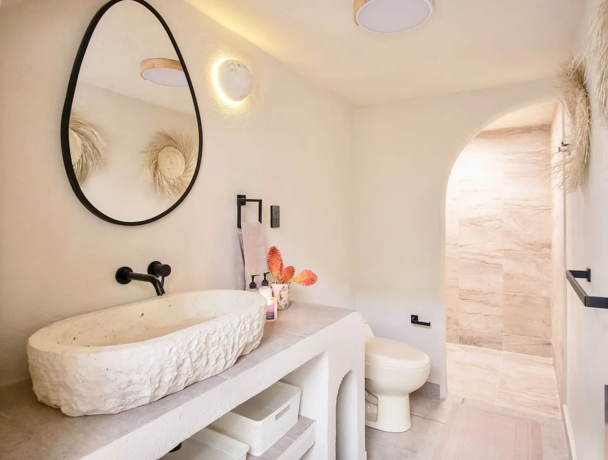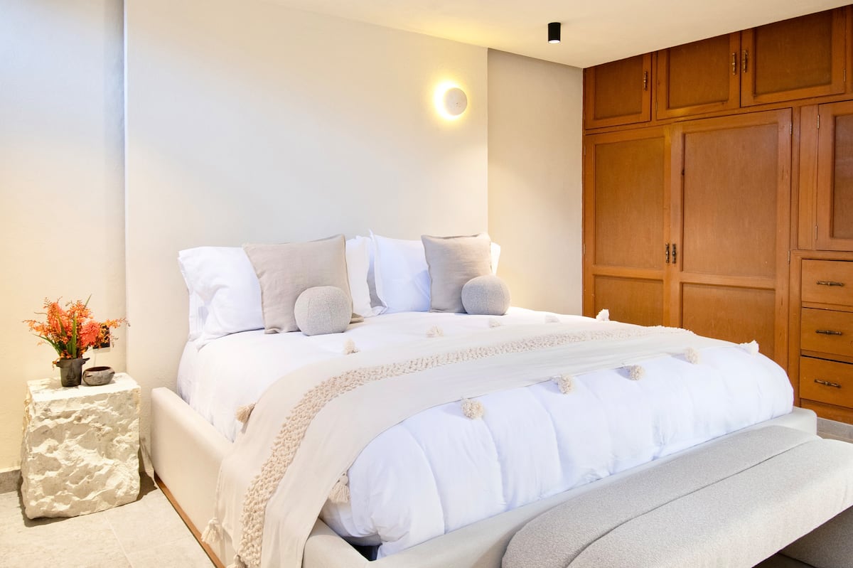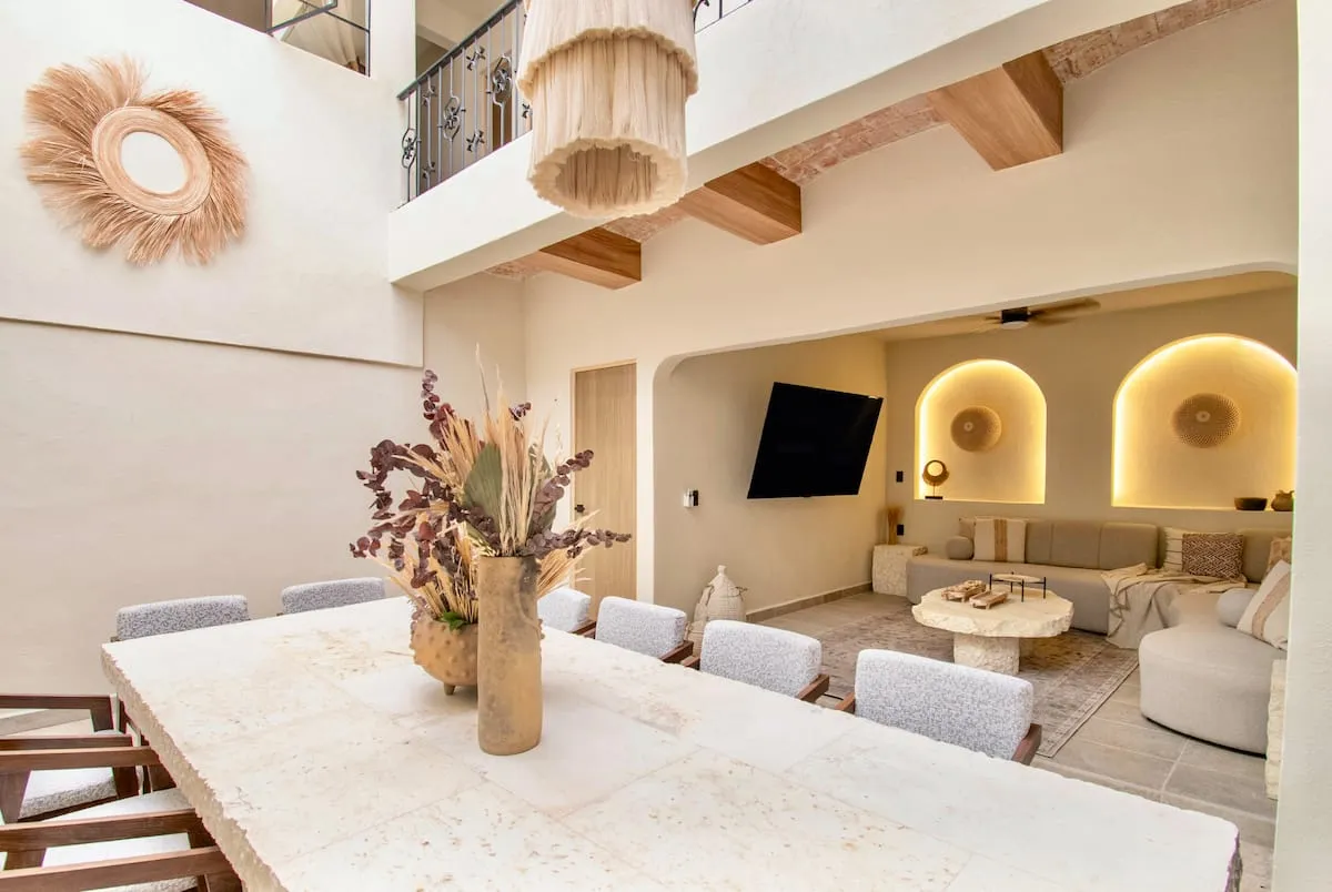 Thoughtfully curated with artisan-made furniture, handwoven textiles, black clay accents, and sculptural pottery, the home reflects the rich cultural heritage of Oaxaca while offering a calm and elevated living experience.