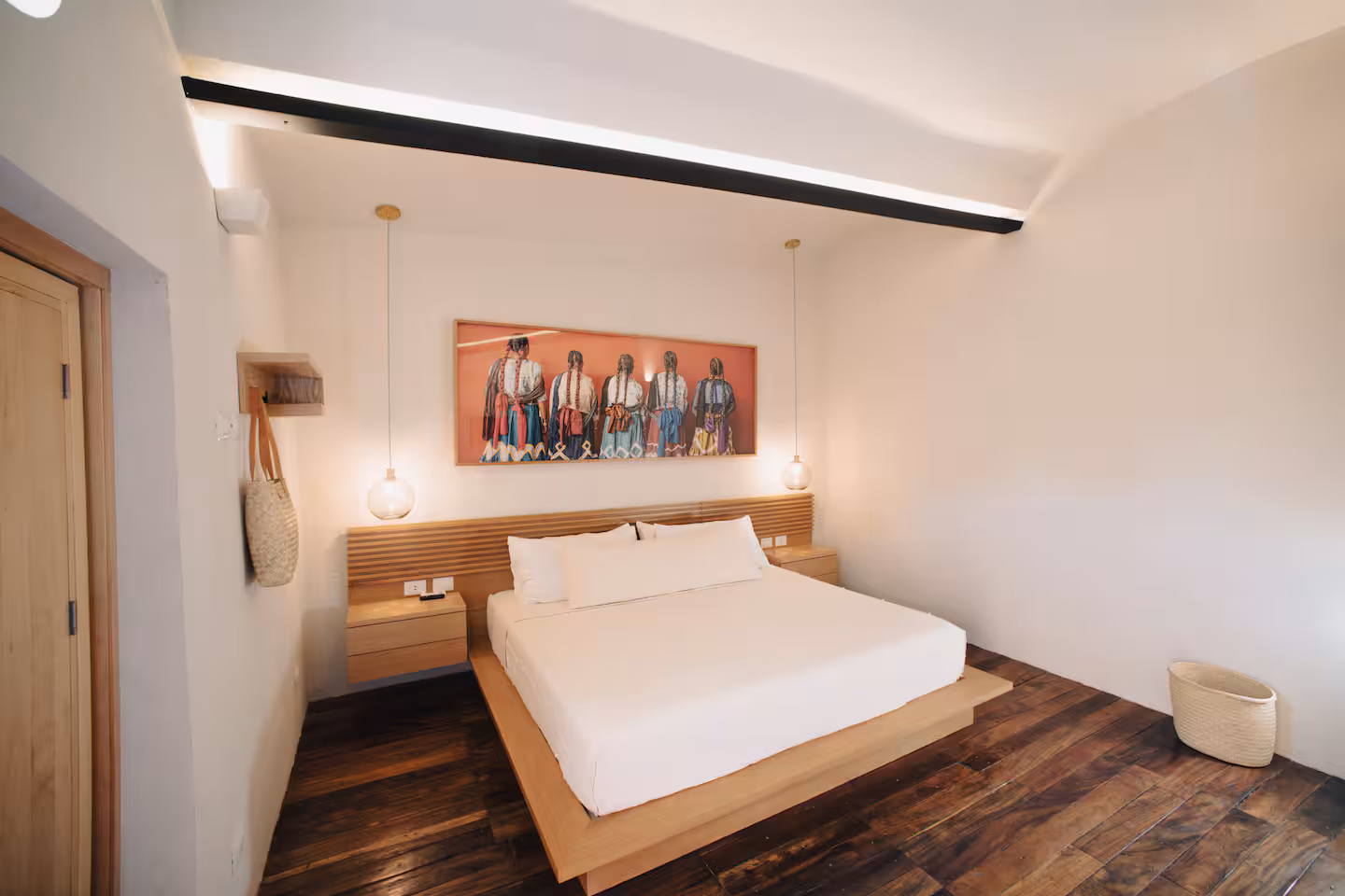 Designed by acclaimed Oaxacan architect Daniel López Salgado (MUFI, Casa de Barro), Casa Brava blends local heritage with contemporary design. Each spacious bedroom features premium bedding, air conditioning, a work desk, TV, mini-fridge, ample storage, and a private ensuite bathroom with curated artistic details.