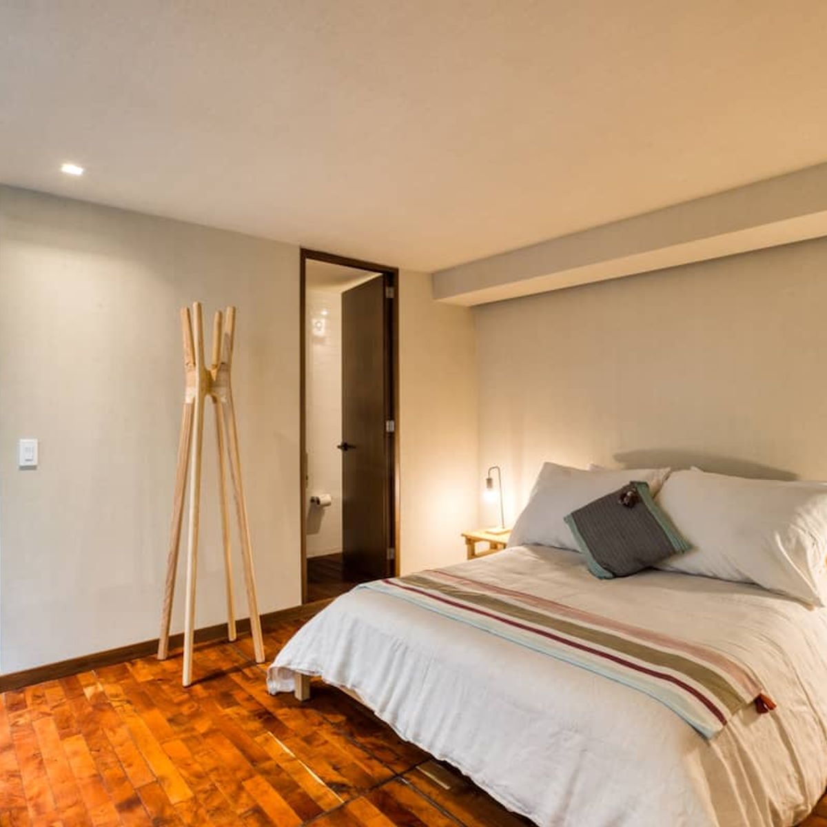 Comfy, light-filled townhouse located in the heart of Colonia Roma, just one block away from Avenida Alvaro Obregon and its trendy cafes, restaurants and shops. The centerpiece of the multi-level home is its courtyard - with center wooden dining table and big, beautiful plants.