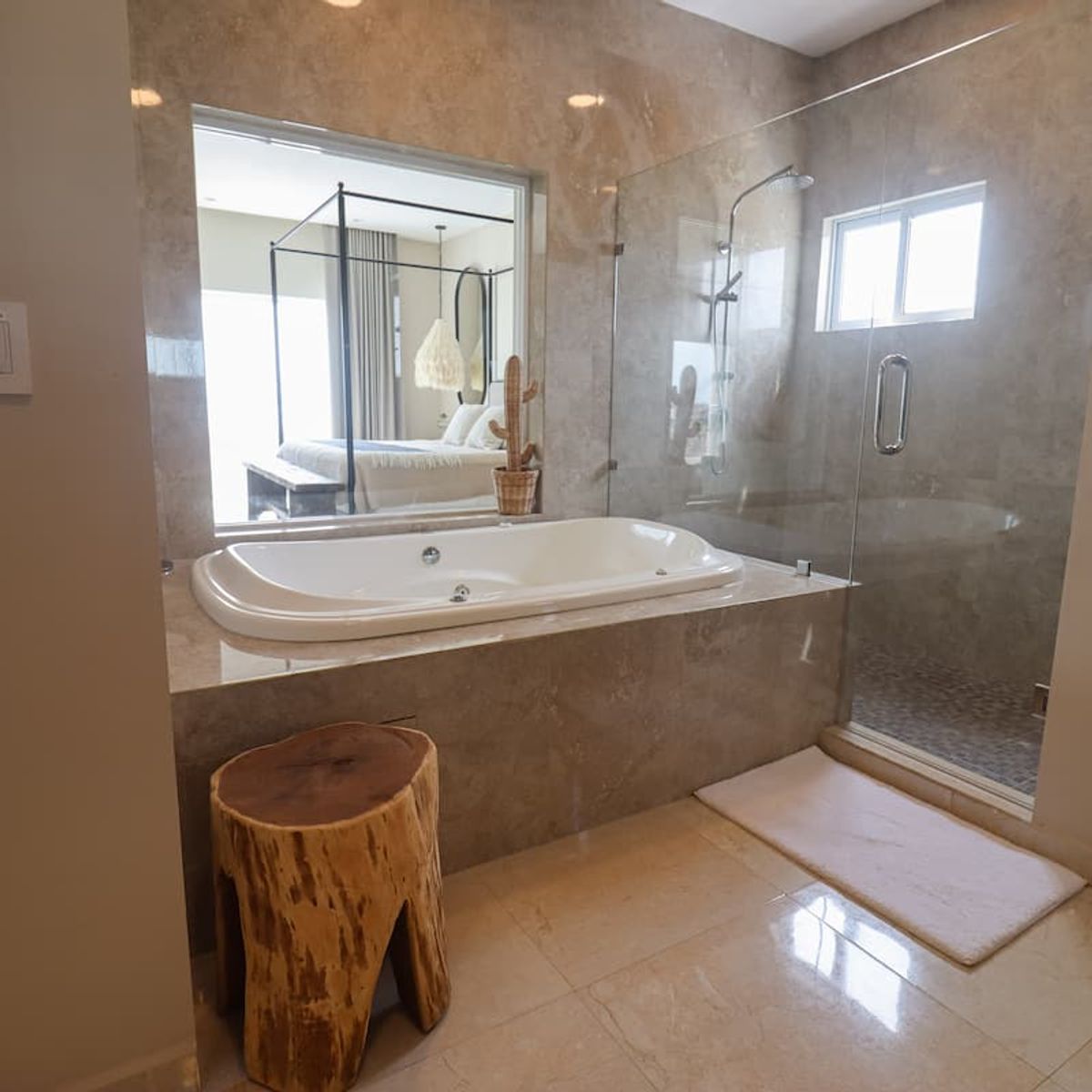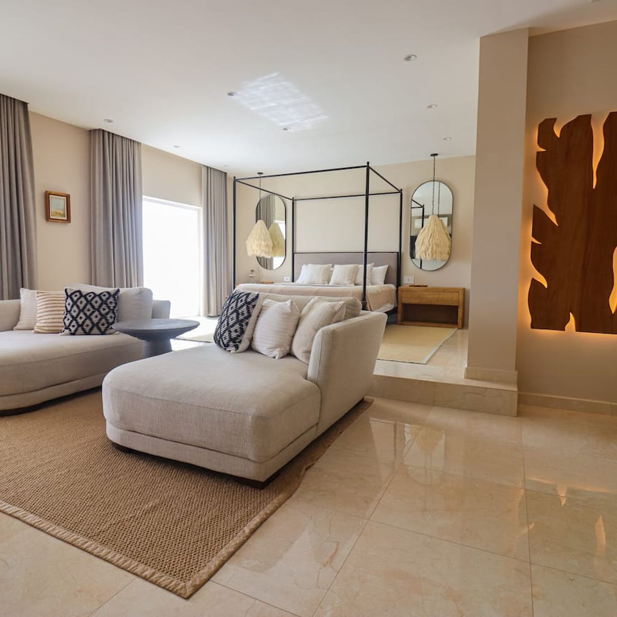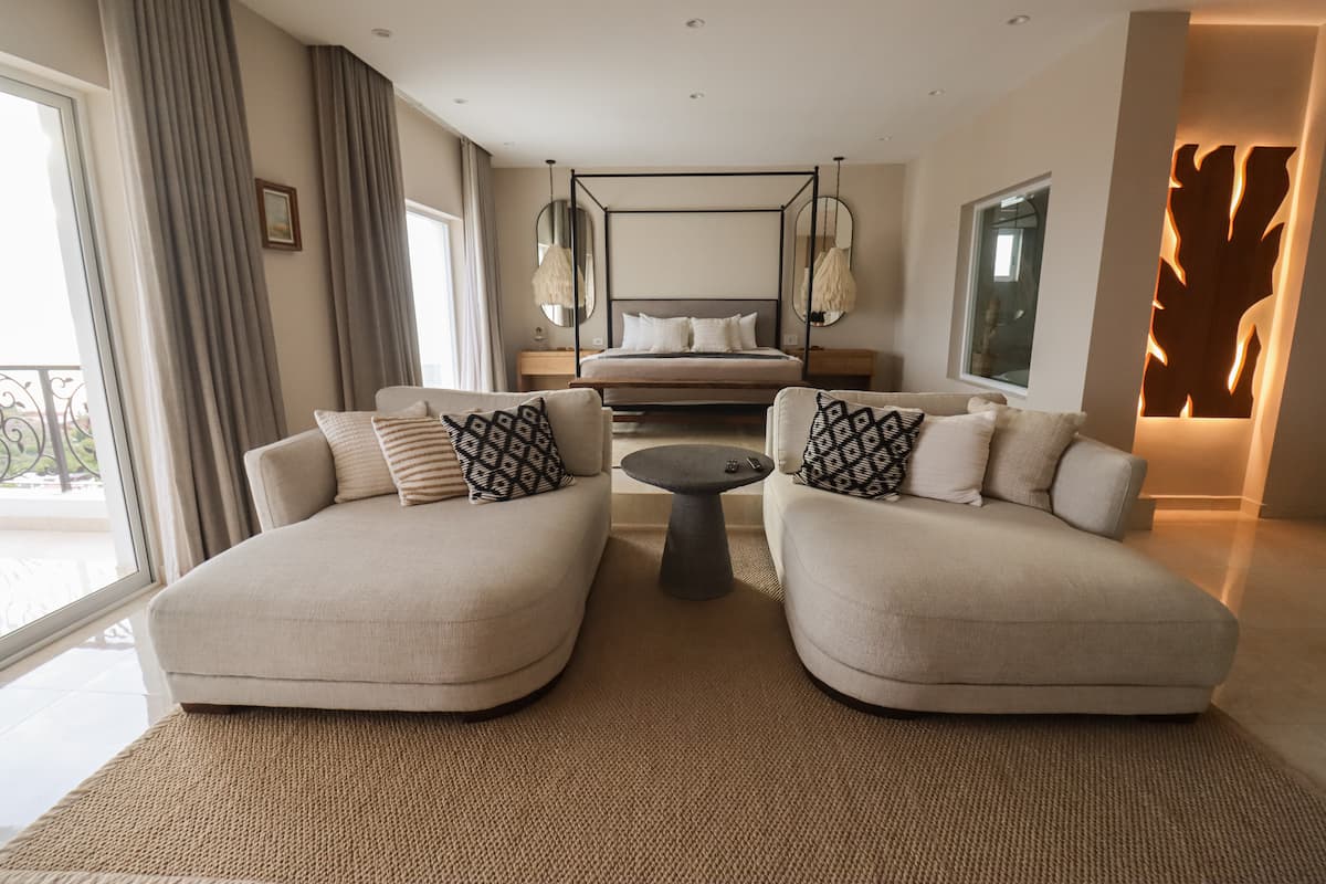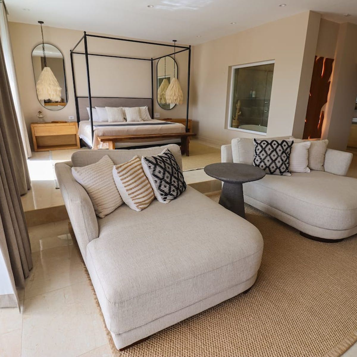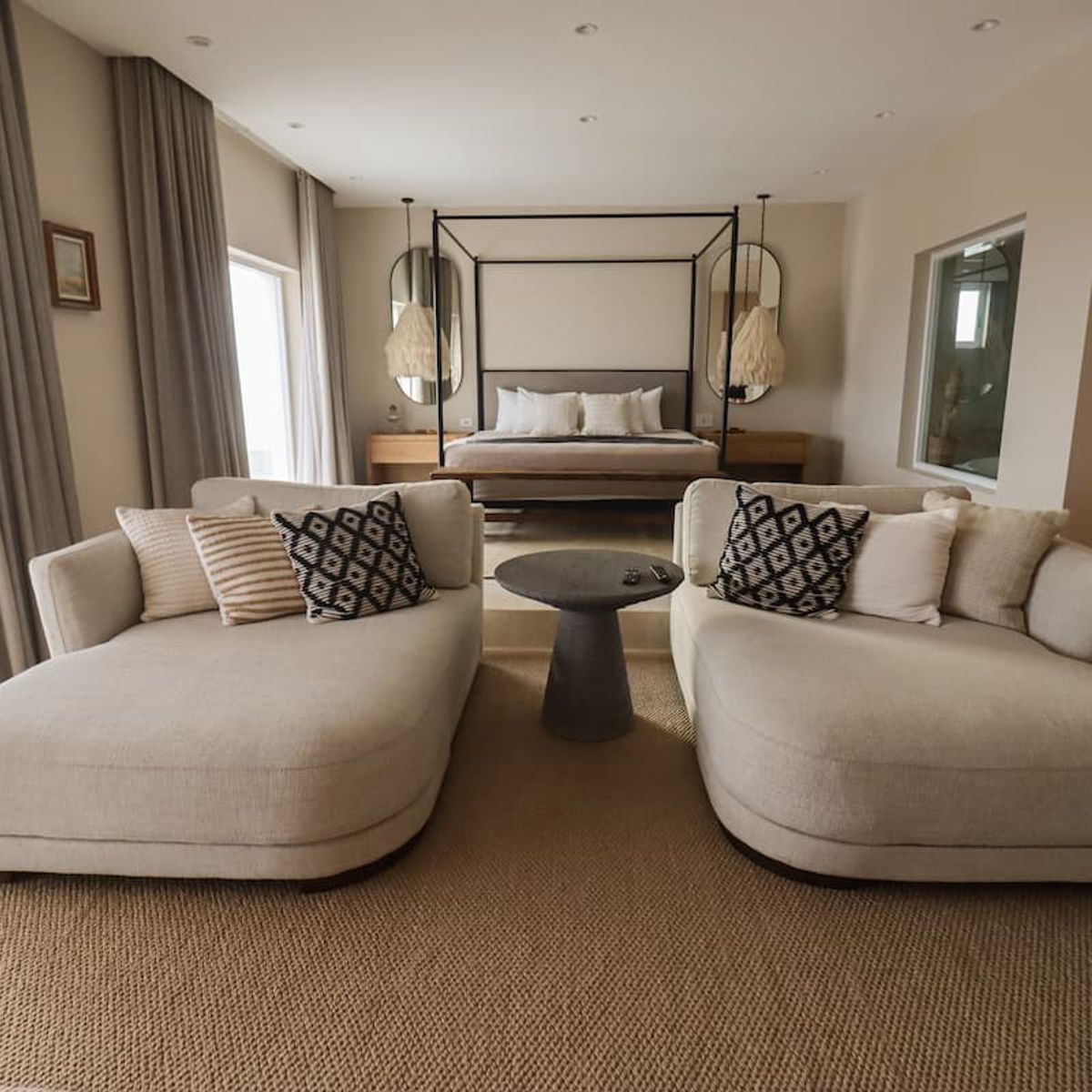 Each bedroom is a private sanctuary with plush bedding and thoughtful amenities, and the villa comes with full in-house staff to take care of cleaning, cooking, and concierge needs. Outside, the infinity pool and lounge areas are perfect for sunset cocktails, alfresco meals, or just soaking up the vibes.