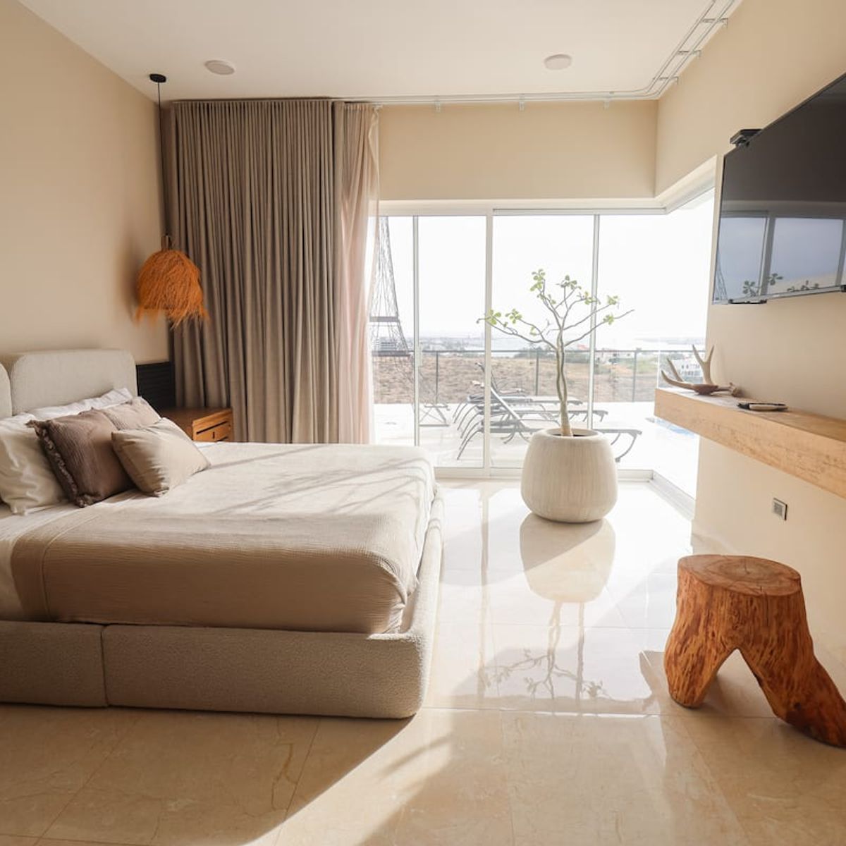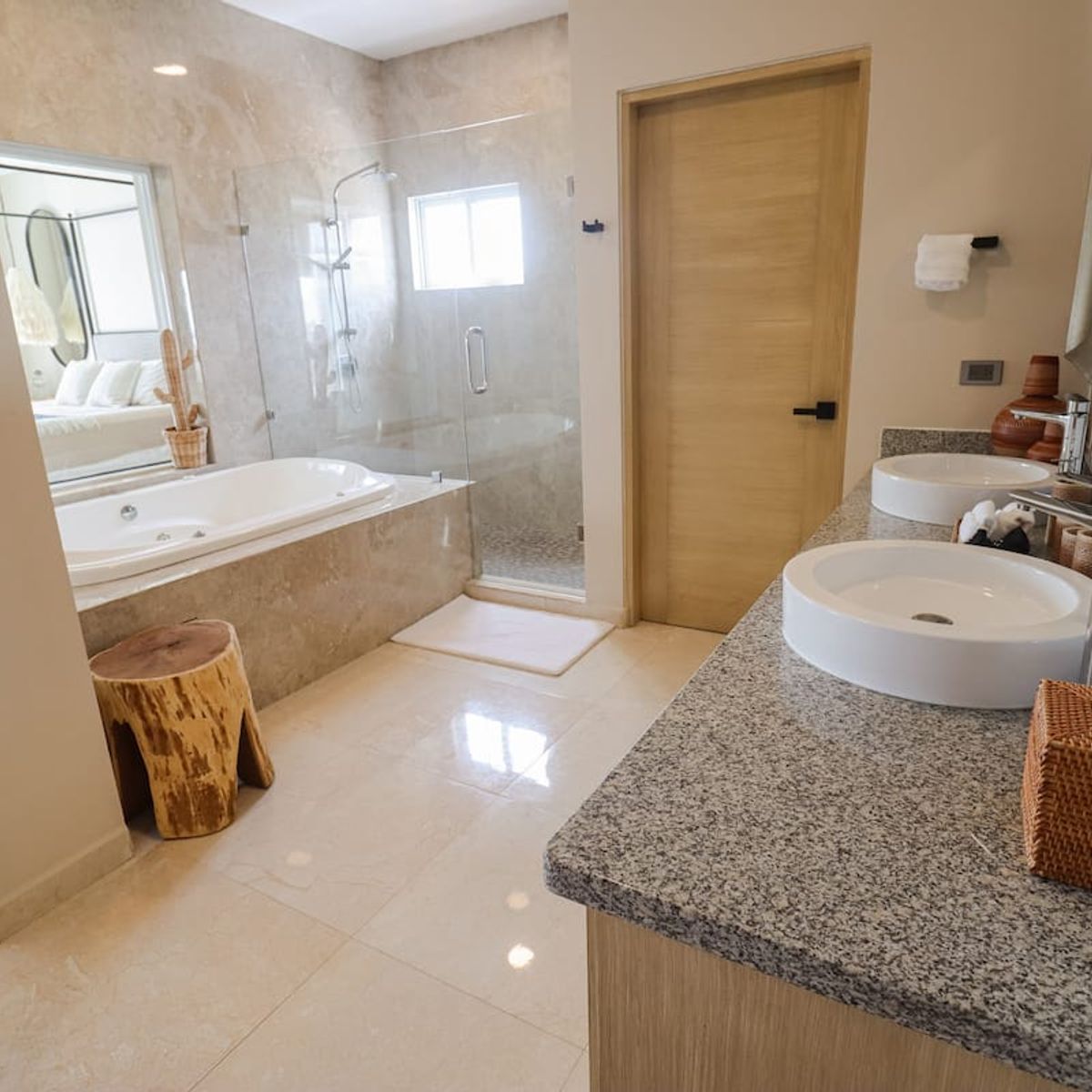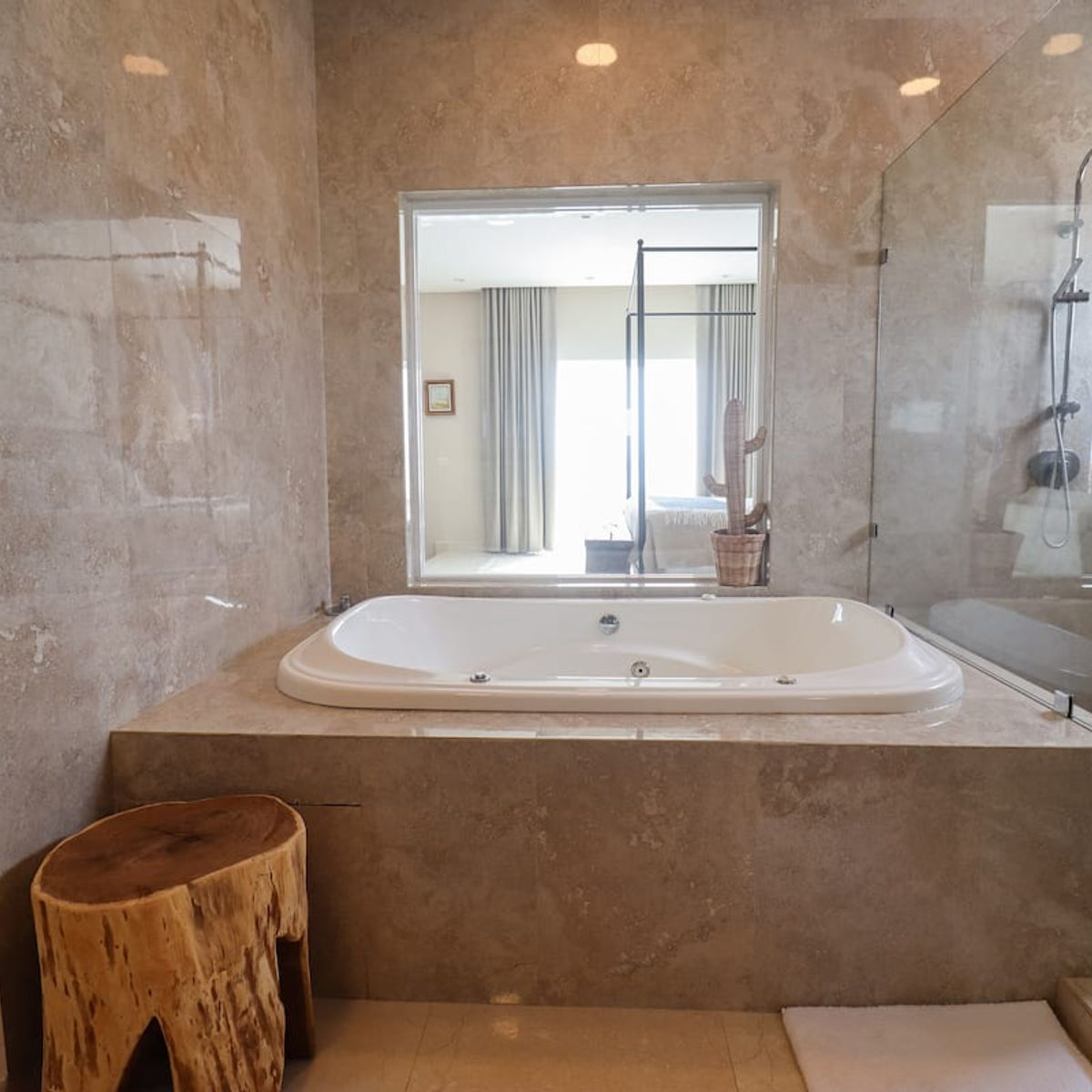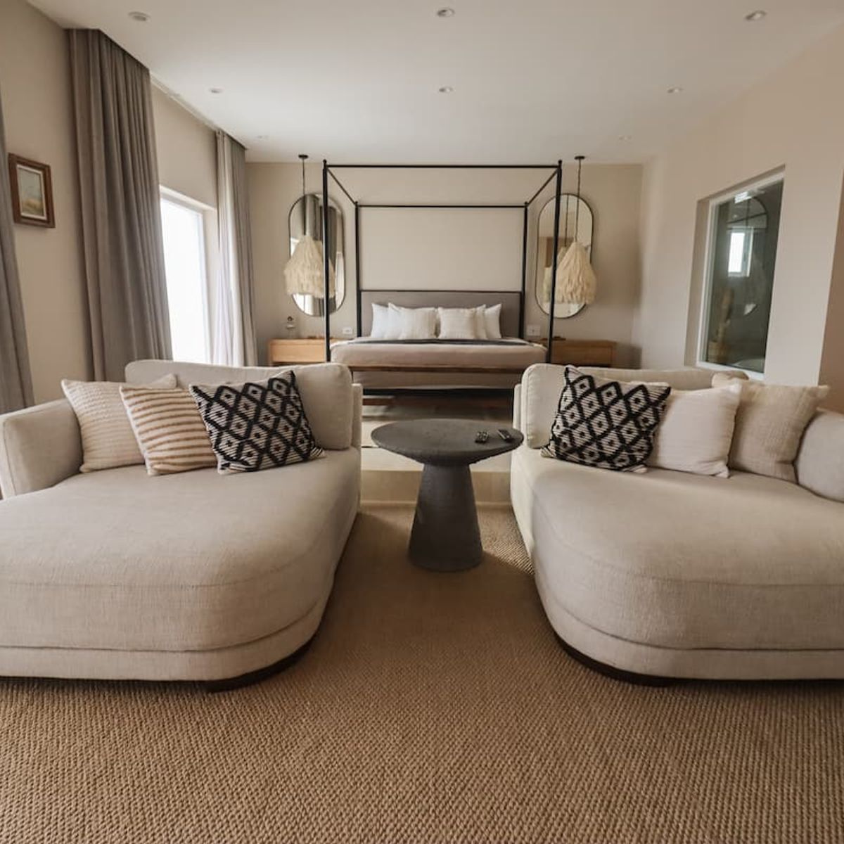 Each bedroom is a private sanctuary with plush bedding and thoughtful amenities, and the villa comes with full in-house staff to take care of cleaning, cooking, and concierge needs. Outside, the infinity pool and lounge areas are perfect for sunset cocktails, alfresco meals, or just soaking up the vibes.