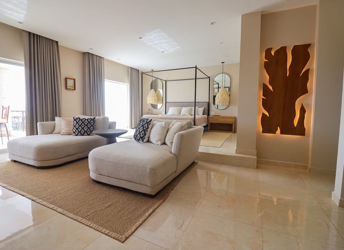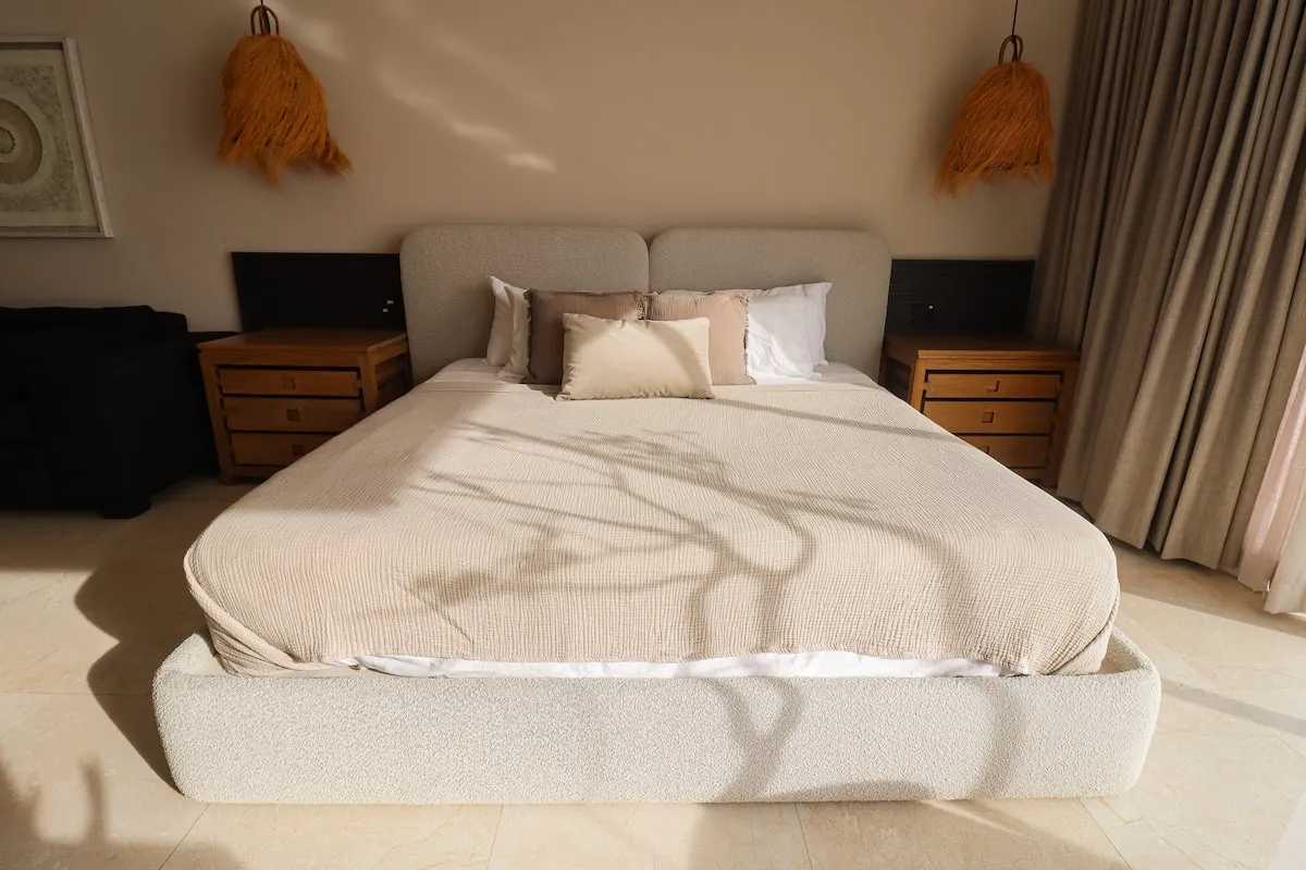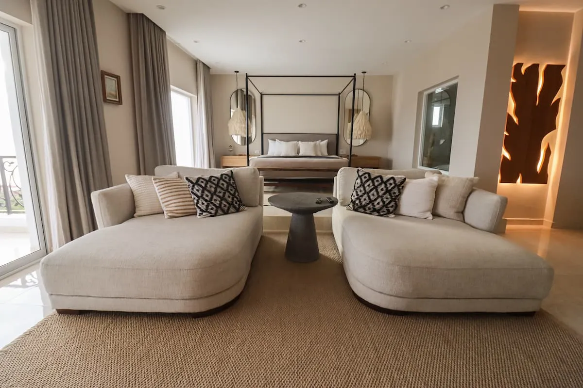 Each bedroom is a private sanctuary with plush bedding and thoughtful amenities, and the villa comes with full in-house staff to take care of cleaning, cooking, and concierge needs. Outside, the infinity pool and lounge areas are perfect for sunset cocktails, alfresco meals, or just soaking up the vibes.