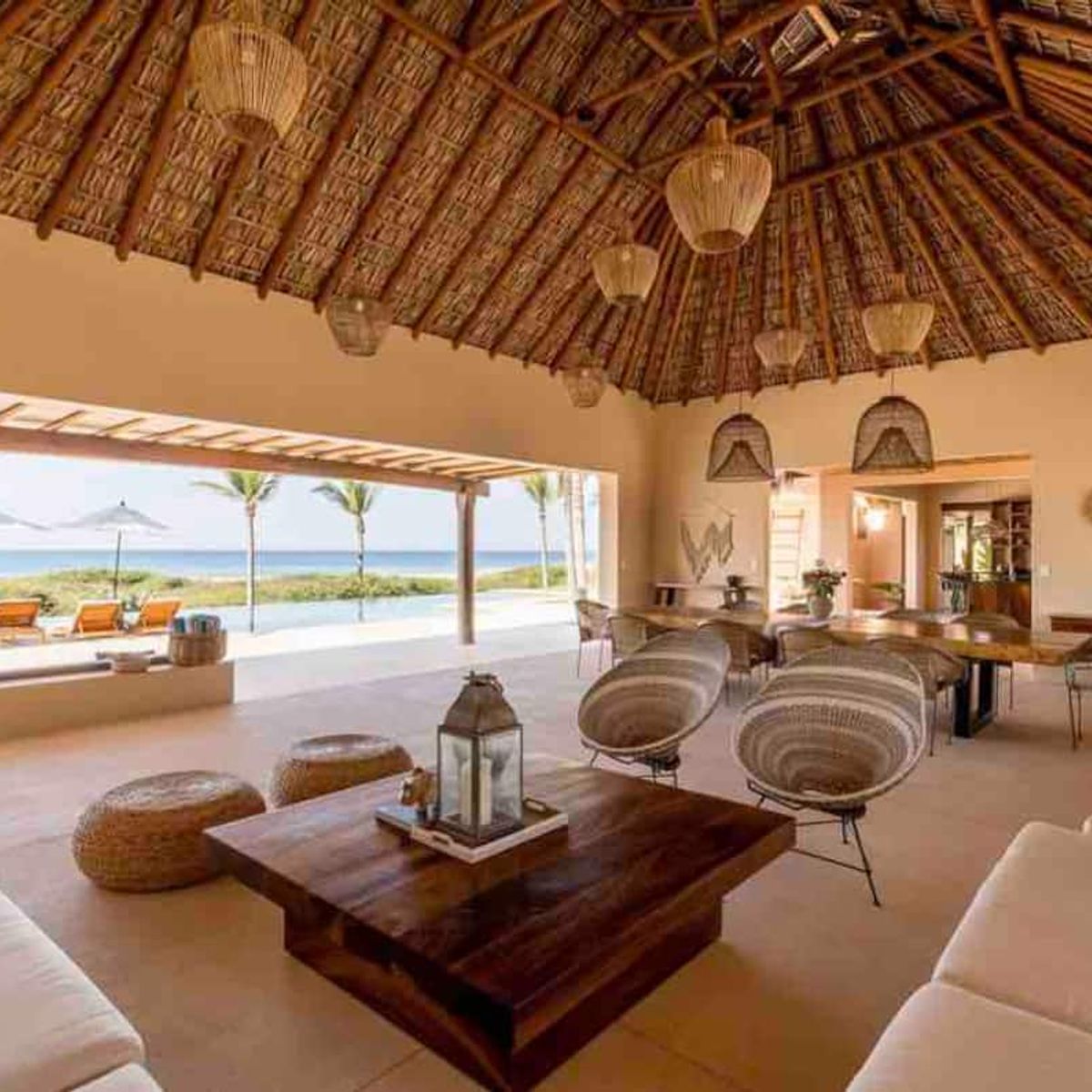 An infinity pool merges with the sea beyond, while a dining terrace beneath a palm-thatched palapa invites long, leisurely meals. A dedicated team — House Manager, Private Chef, Waiter, and Housekeeper — ensures that every detail is attended to with warmth and discretion.