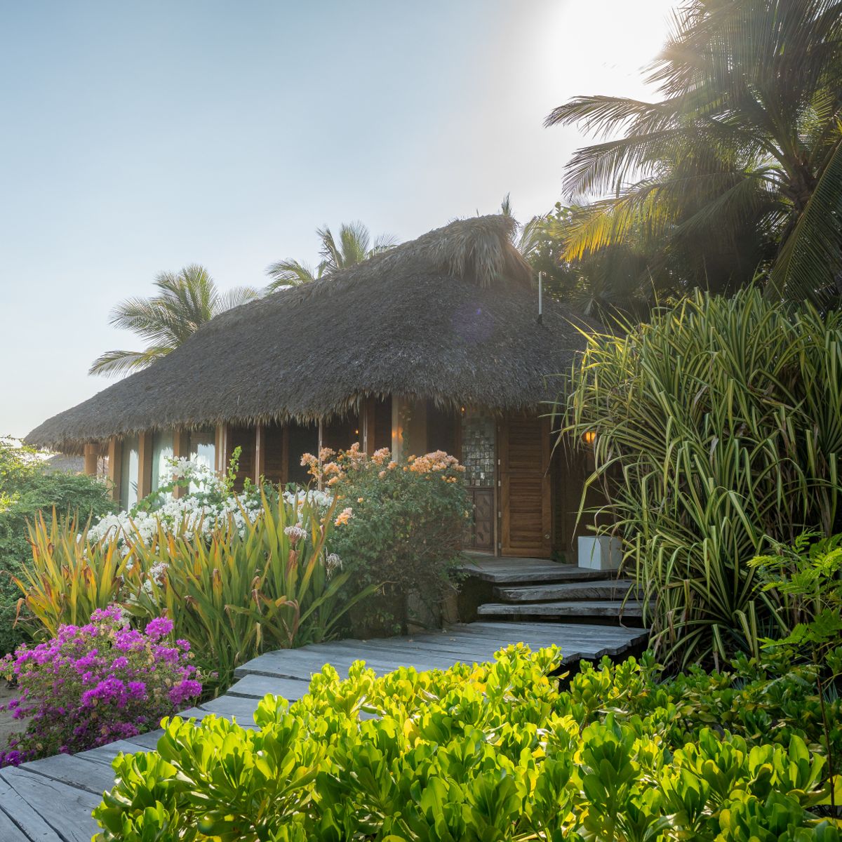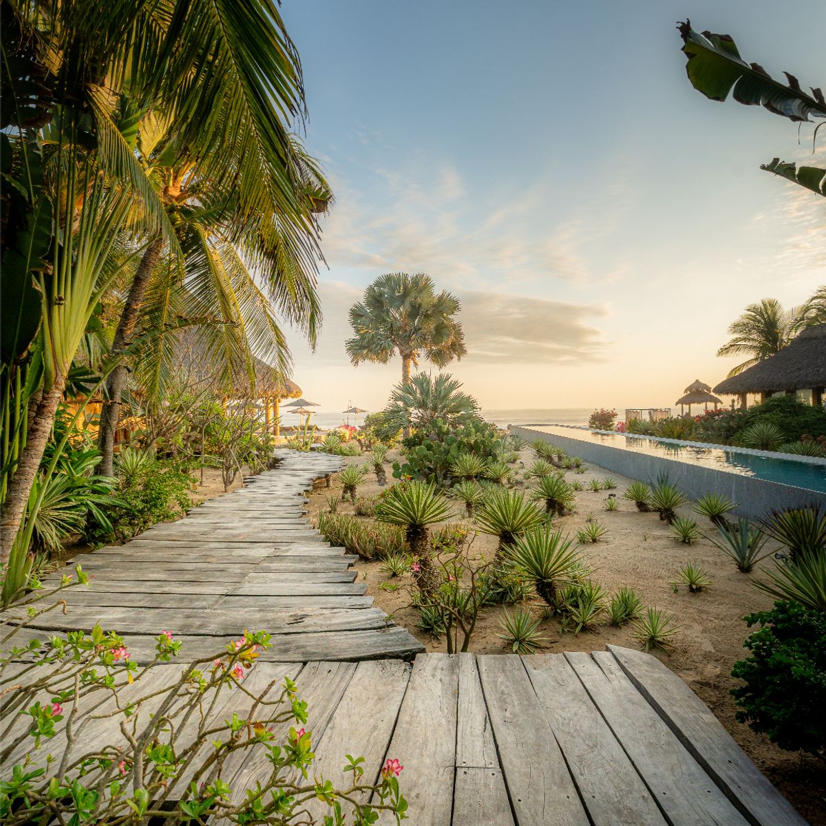 Throughout the estate, elevated boardwalks connect the various living spaces, ensuring you are never far from the sand or the sea.
