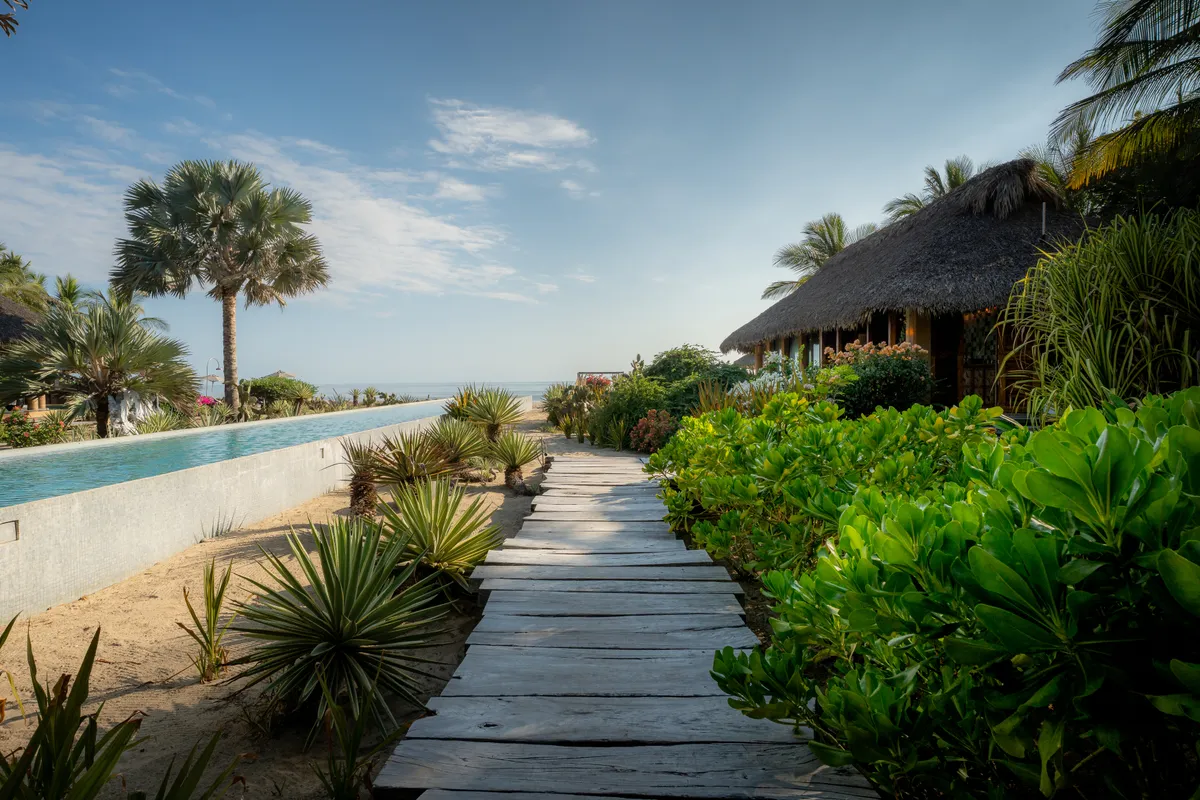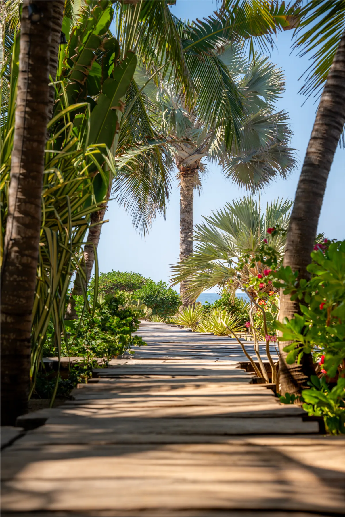 Throughout the estate, elevated boardwalks connect the various living spaces, ensuring you are never far from the sand or the sea.