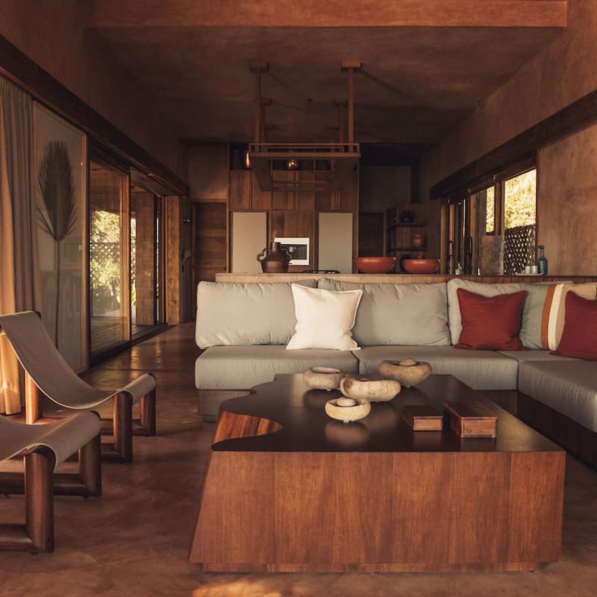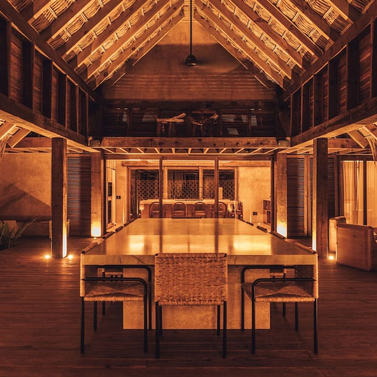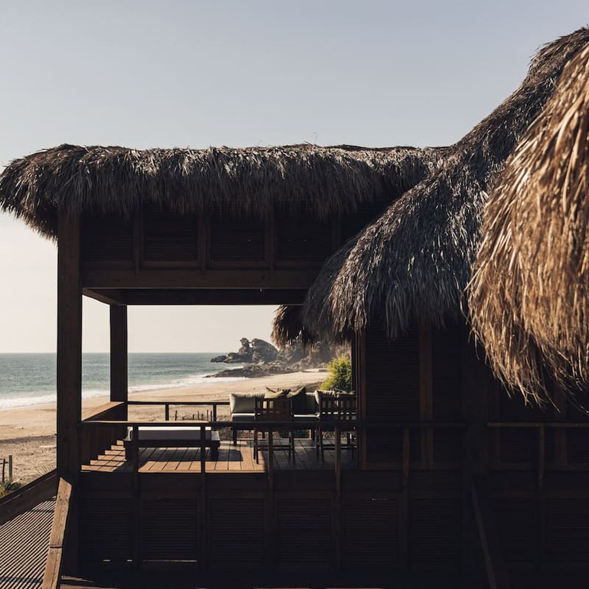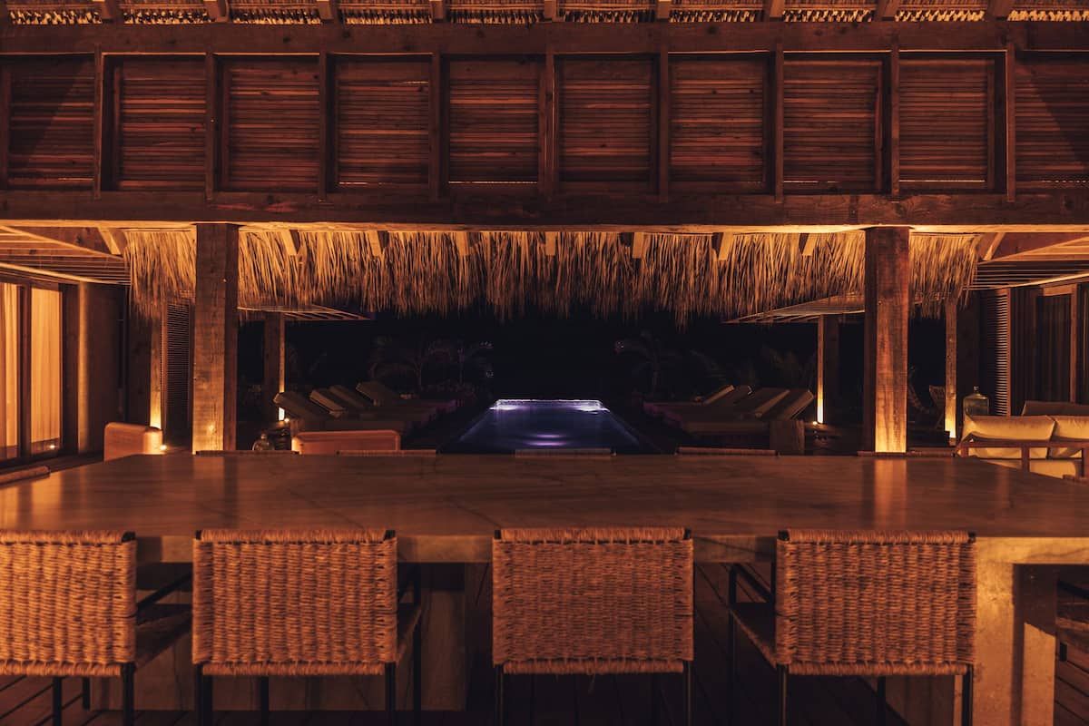 Casa de Mayo, designed by the renowned Massiv Studio, is an exclusive six-bedroom villa in Playa Mermejita, Mazunte. Blending architectural elegance with the beauty of nature, it accommodates up to fourteen guests in comfort and style.