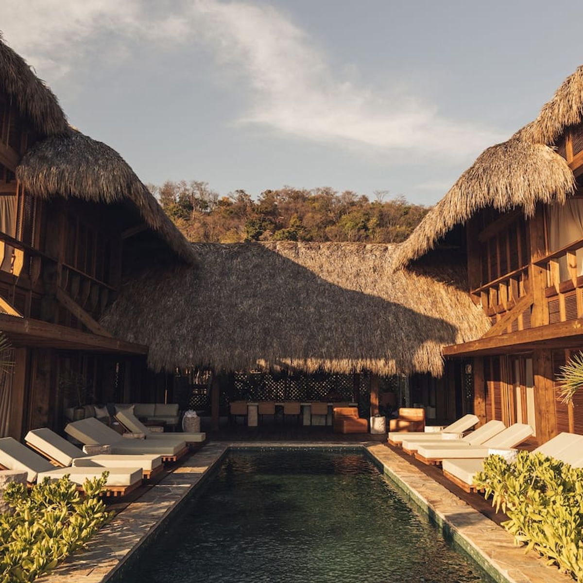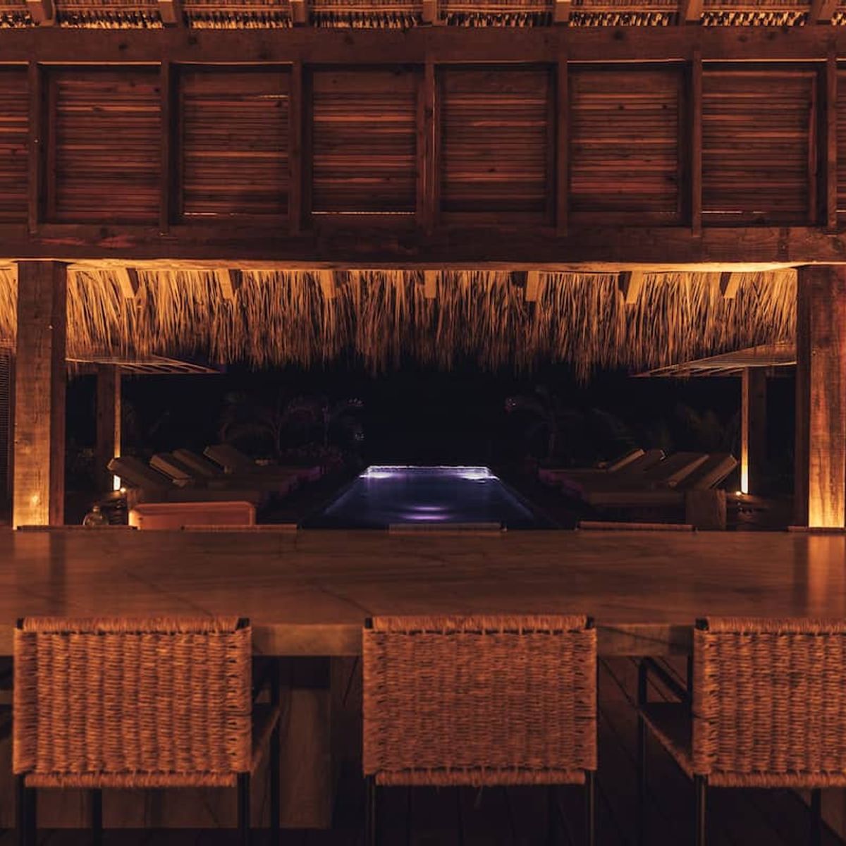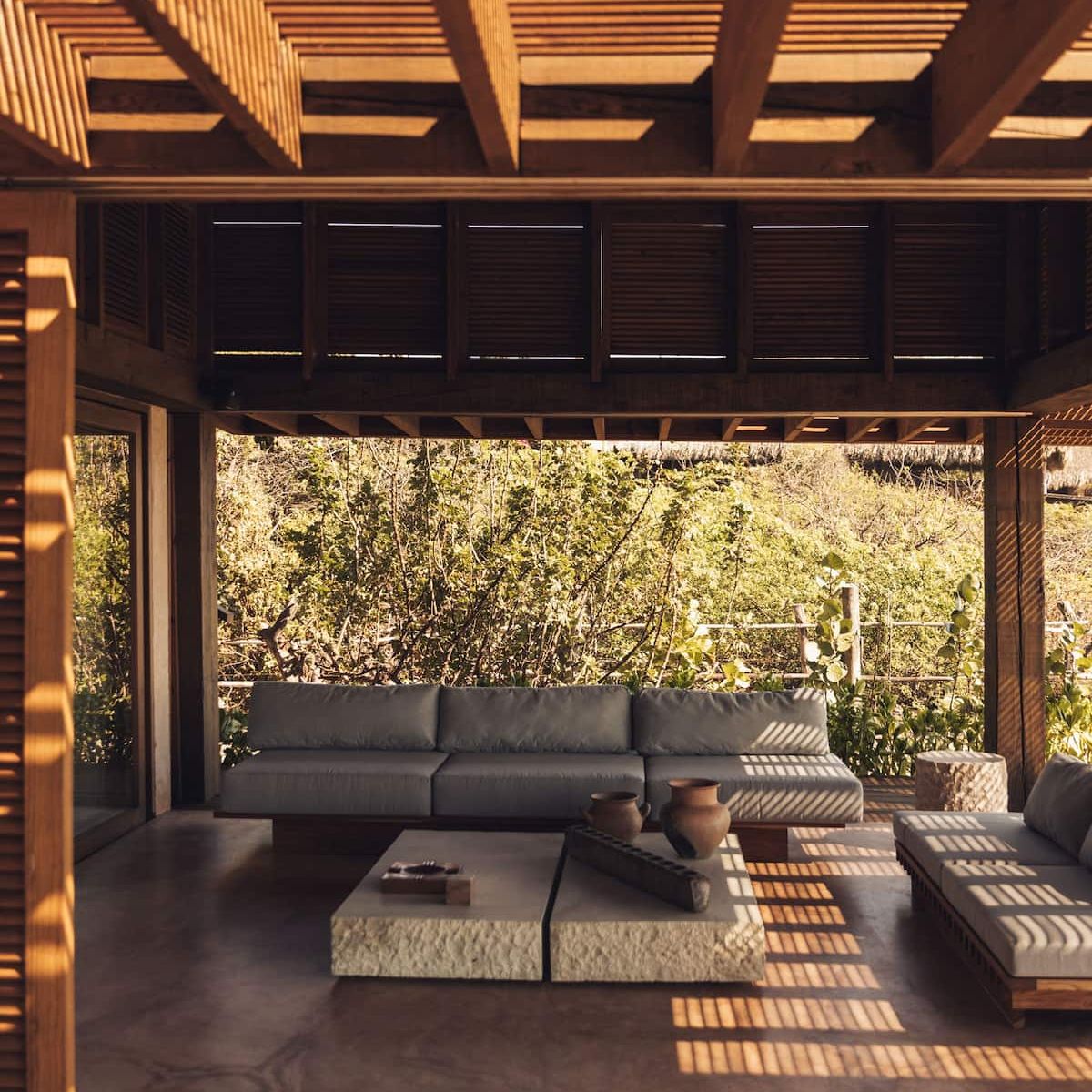 Casa de Mayo, designed by the renowned Massiv Studio, is an exclusive six-bedroom villa in Playa Mermejita, Mazunte. Blending architectural elegance with the beauty of nature, it accommodates up to fourteen guests in comfort and style.