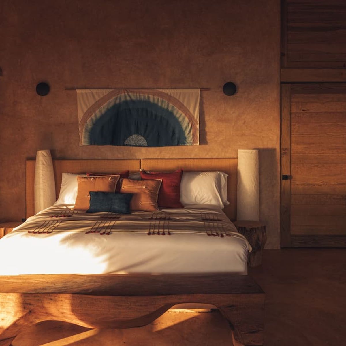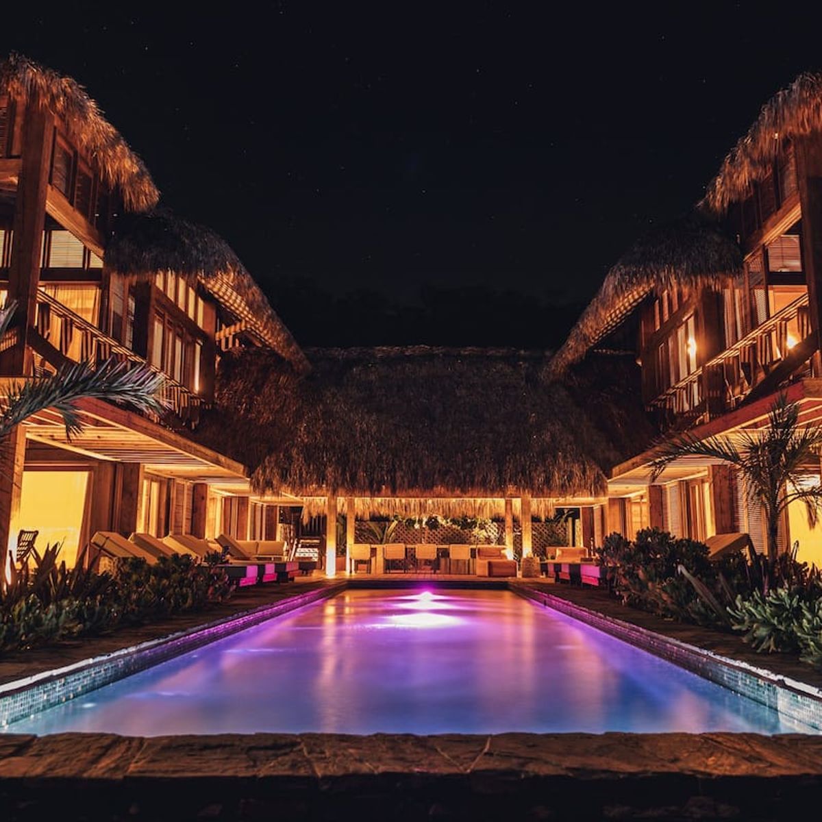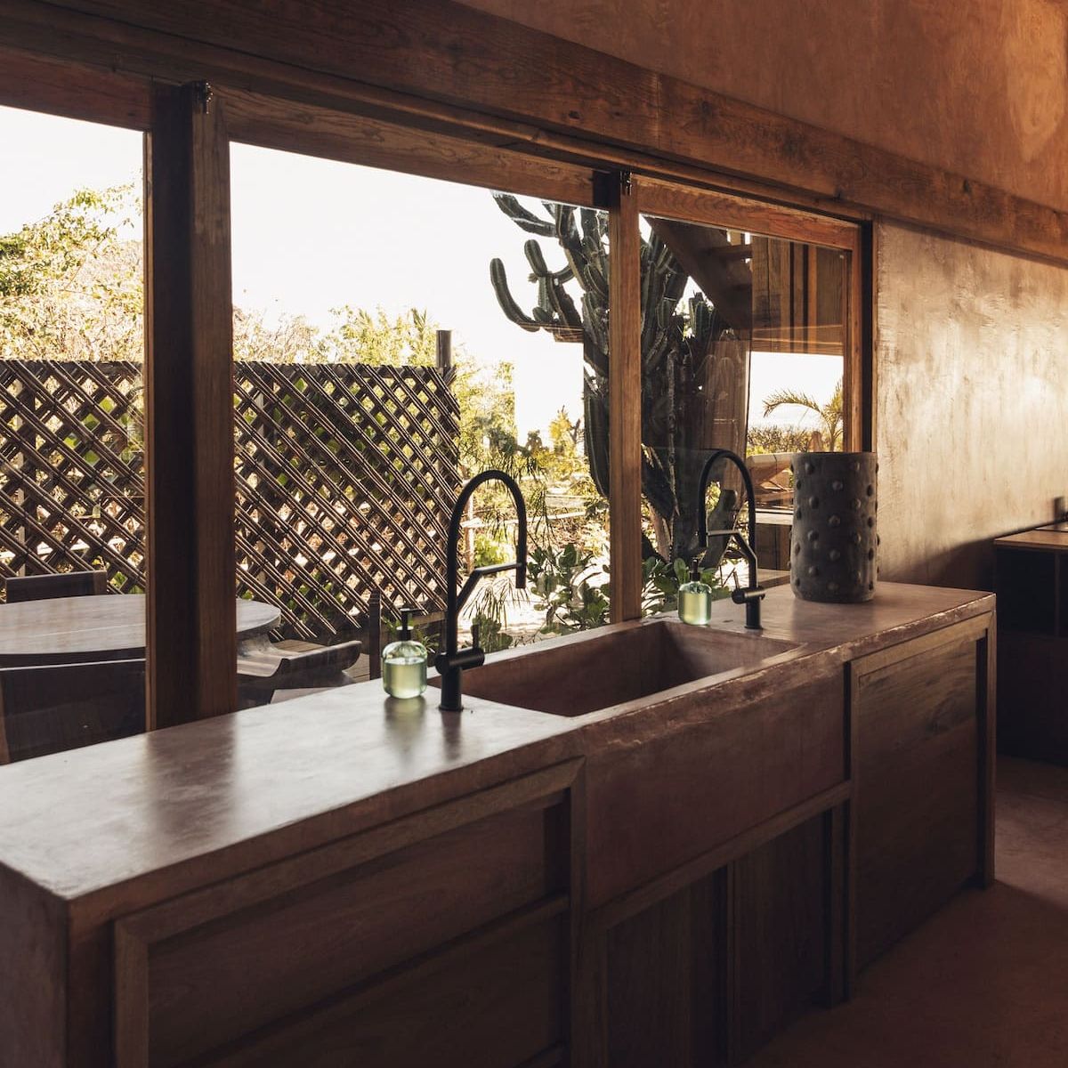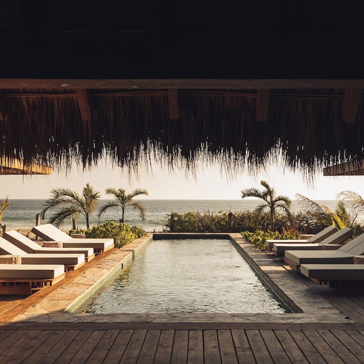 Casa de Mayo, designed by the renowned Massiv Studio, is an exclusive six-bedroom villa in Playa Mermejita, Mazunte. Blending architectural elegance with the beauty of nature, it accommodates up to fourteen guests in comfort and style.