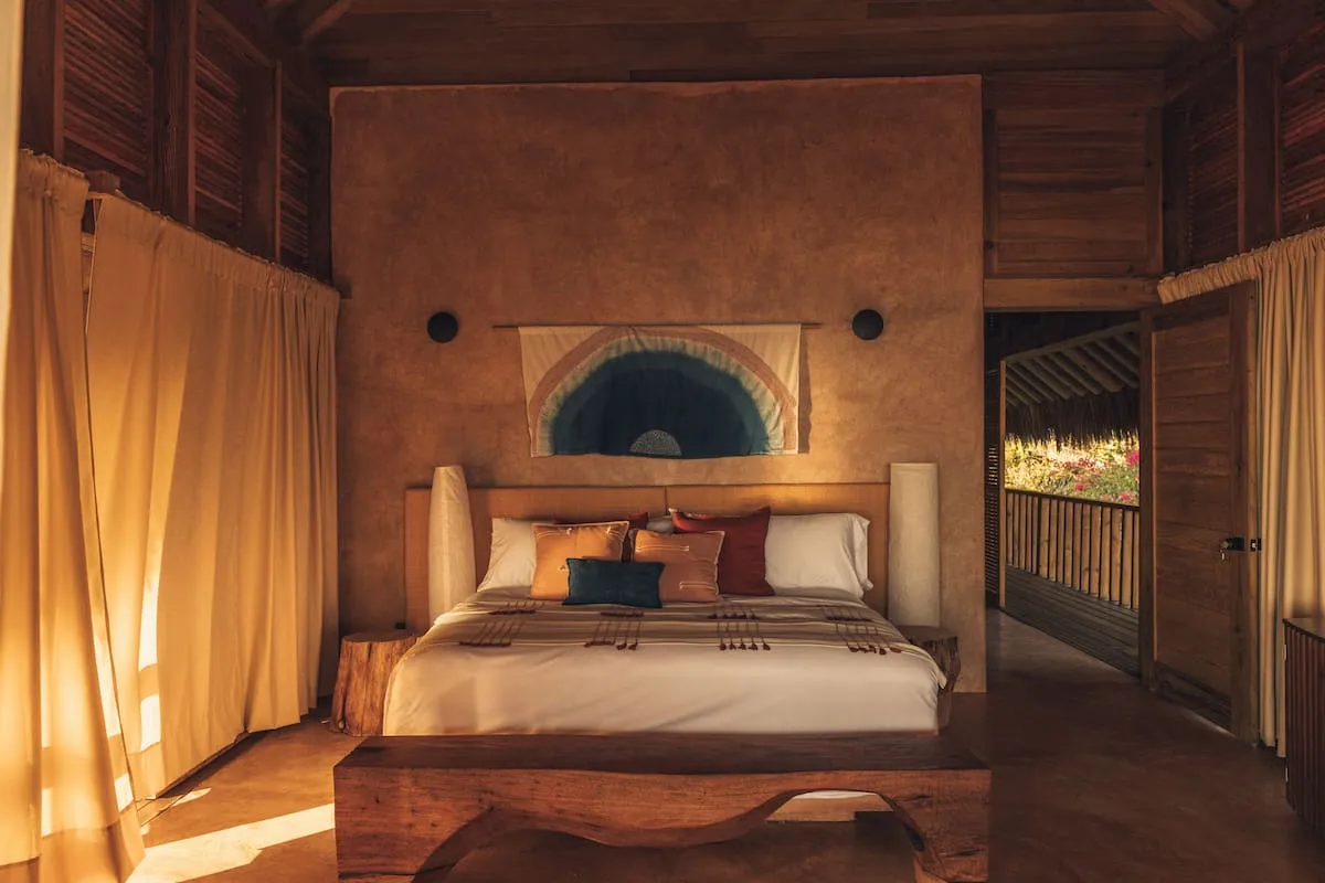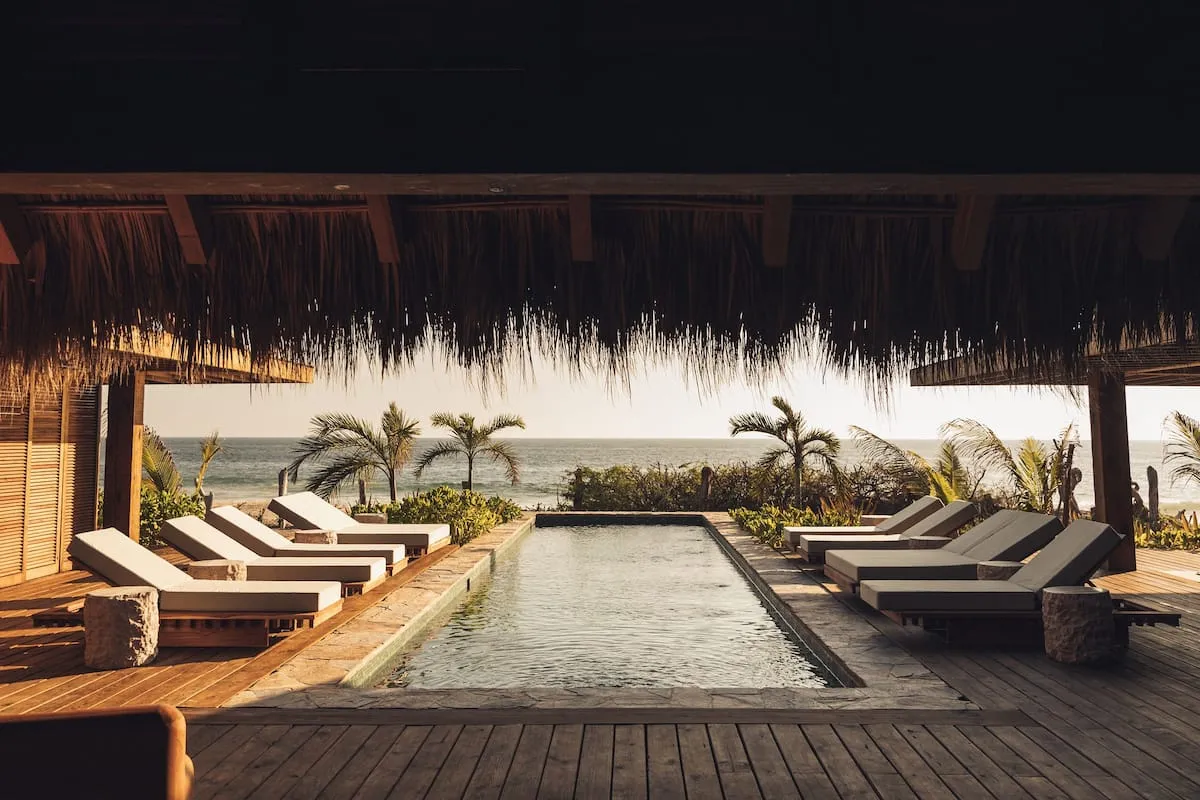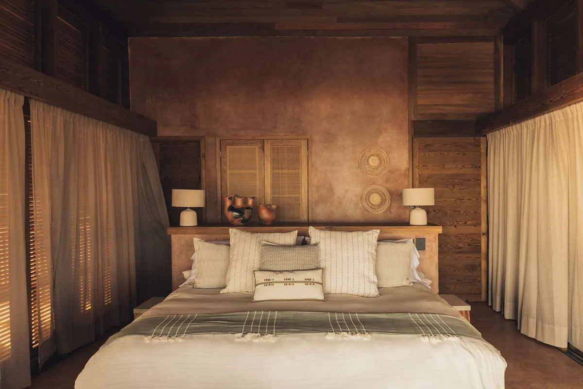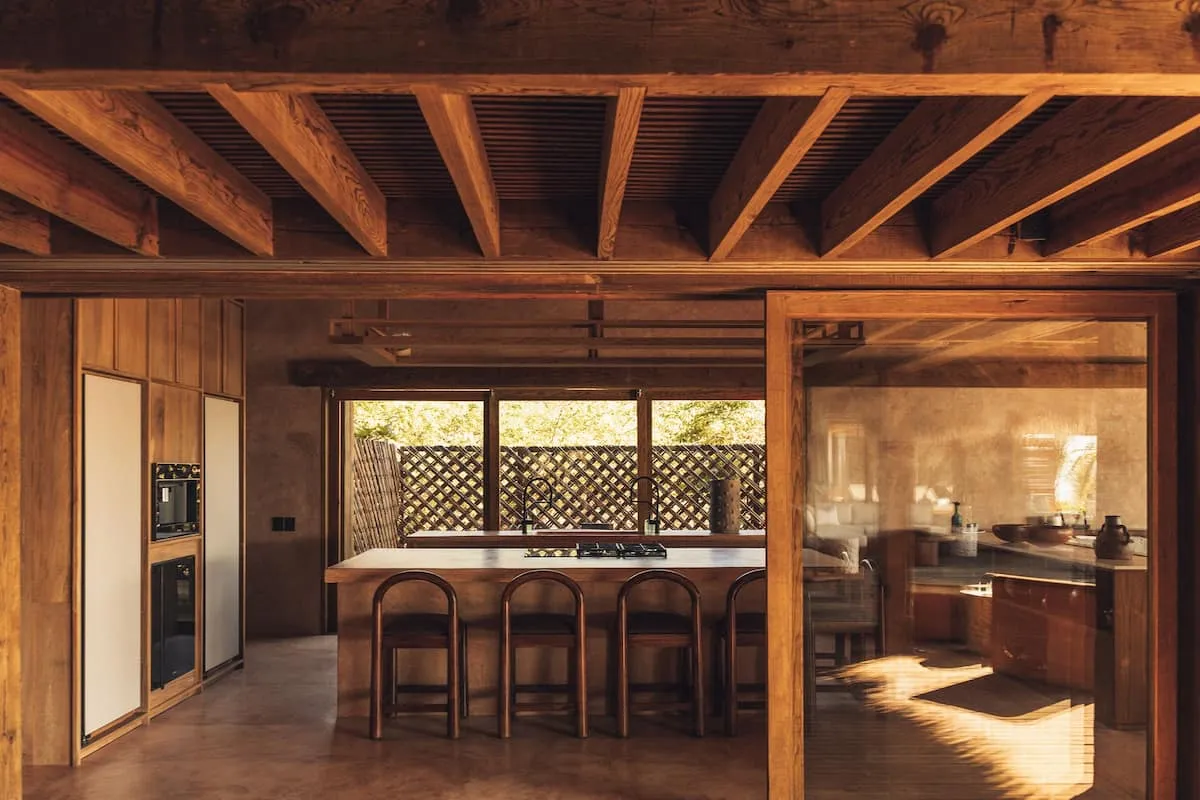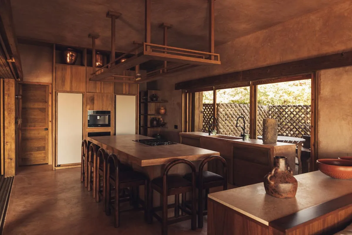 Casa de Mayo, designed by the renowned Massiv Studio, is an exclusive six-bedroom villa in Playa Mermejita, Mazunte. Blending architectural elegance with the beauty of nature, it accommodates up to fourteen guests in comfort and style.