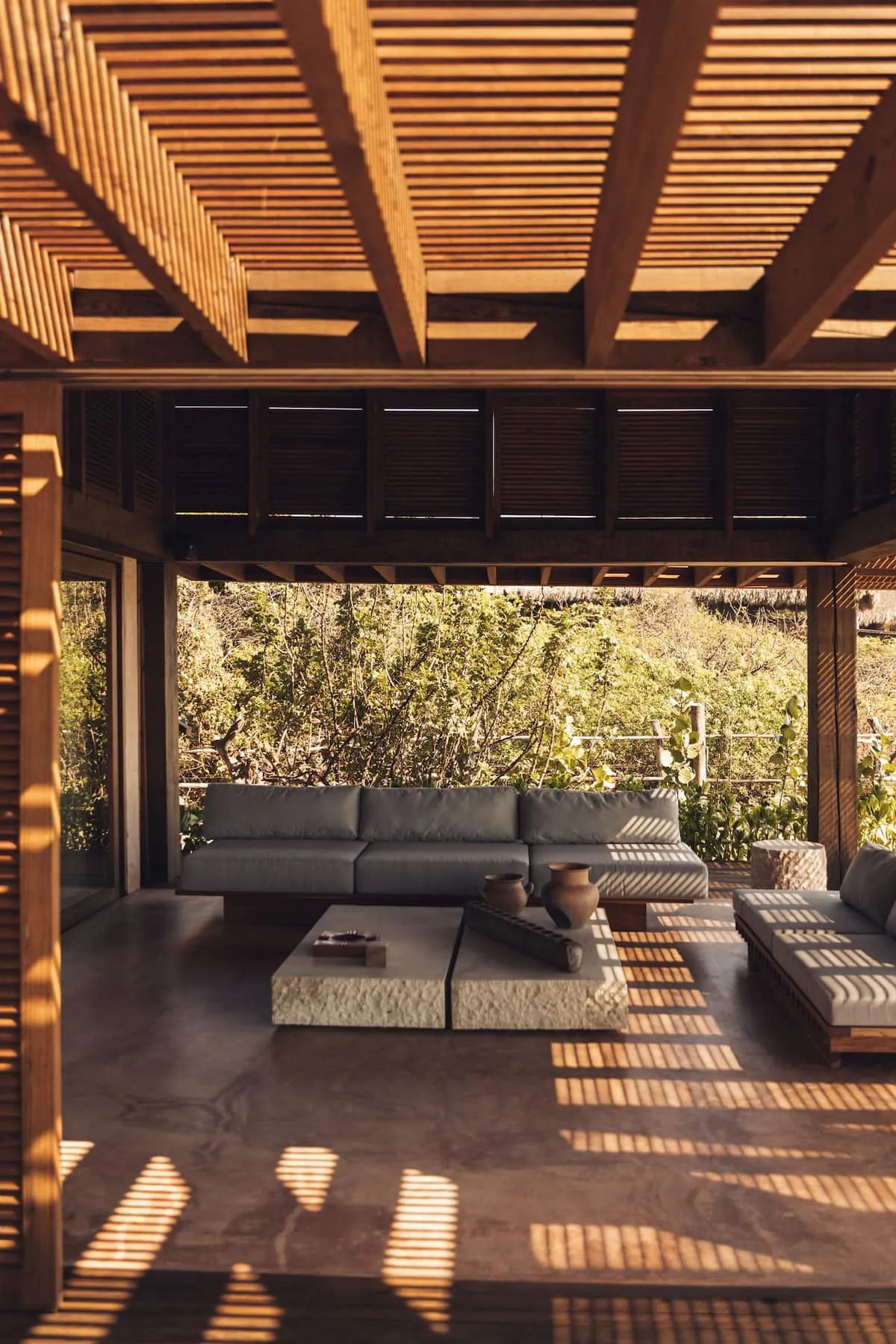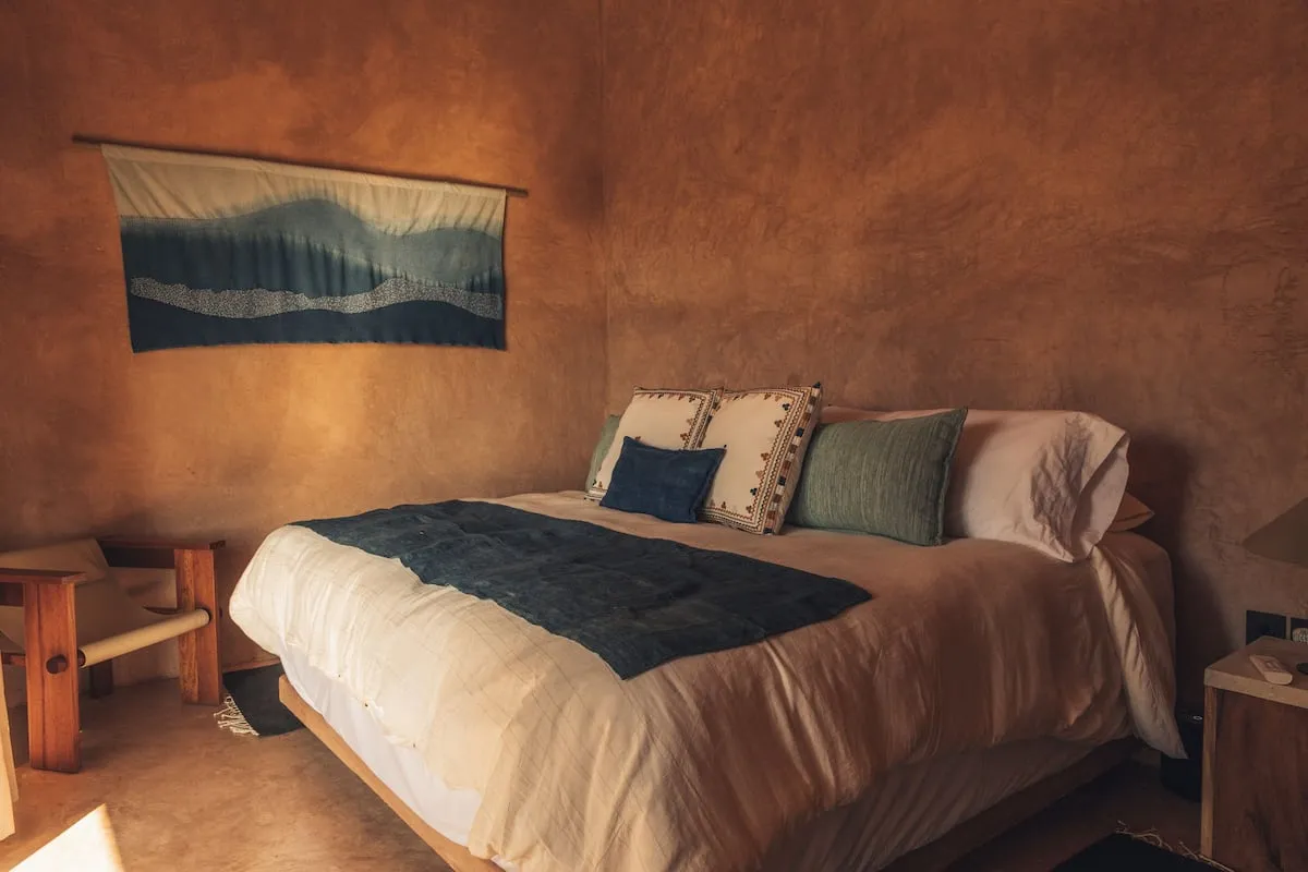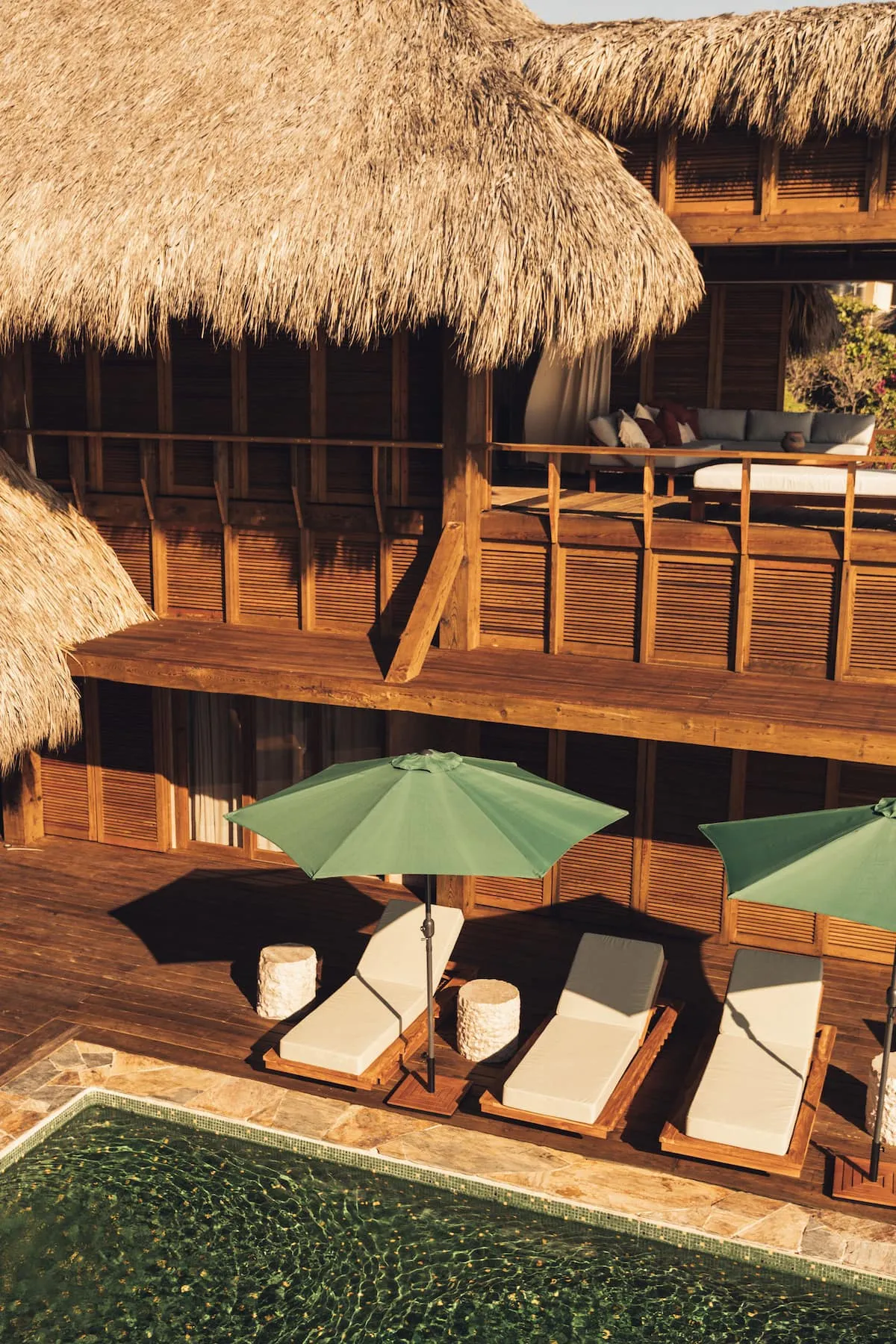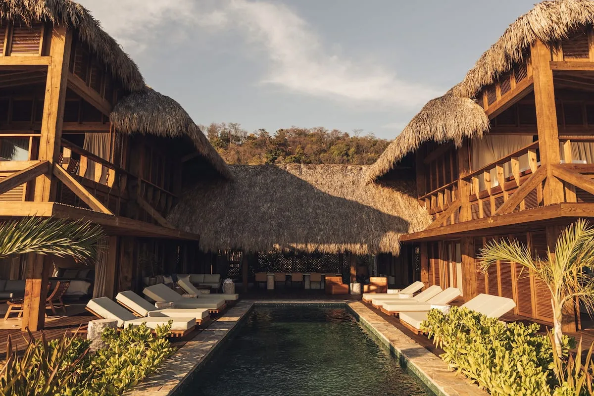 Casa de Mayo, designed by the renowned Massiv Studio, is an exclusive six-bedroom villa in Playa Mermejita, Mazunte. Blending architectural elegance with the beauty of nature, it accommodates up to fourteen guests in comfort and style.