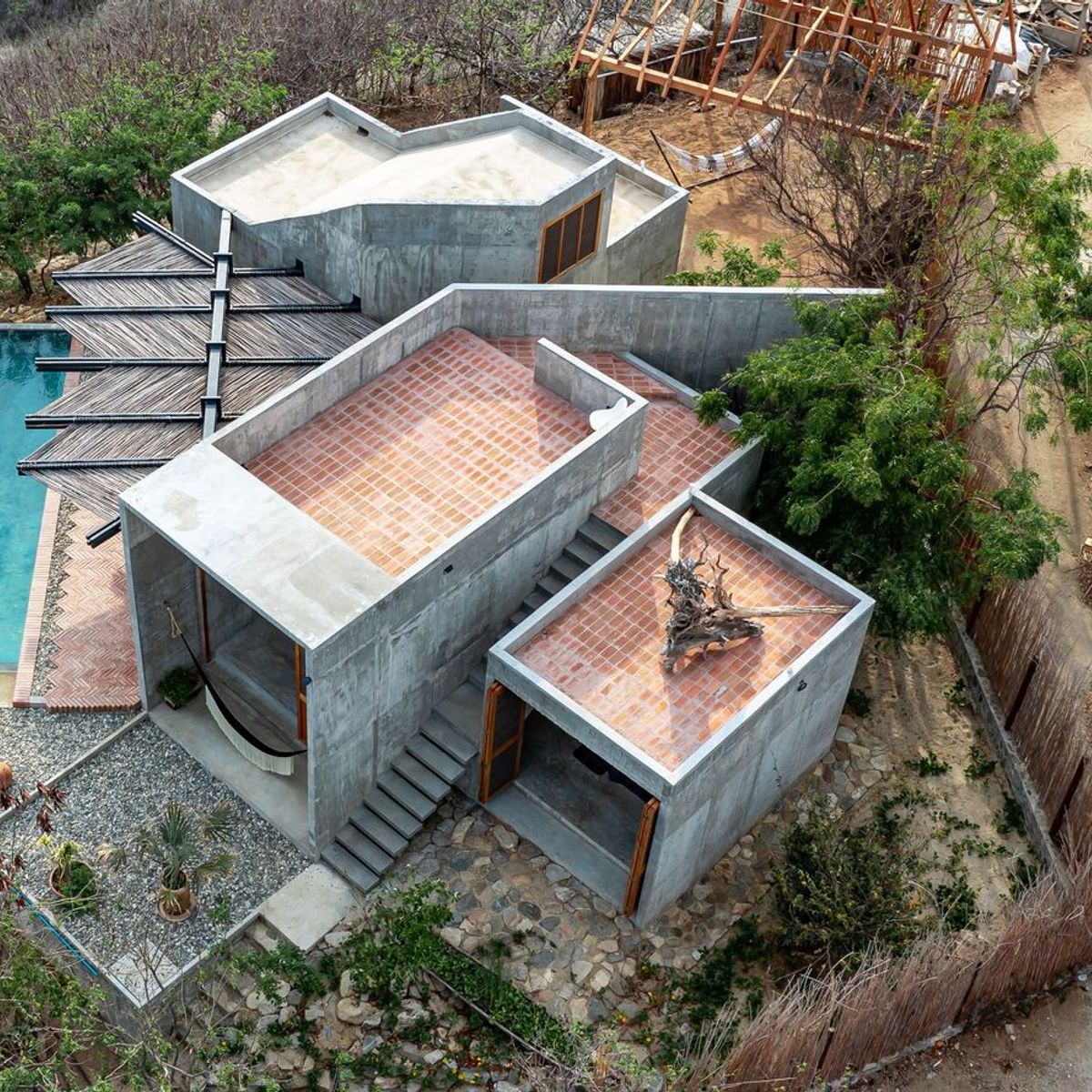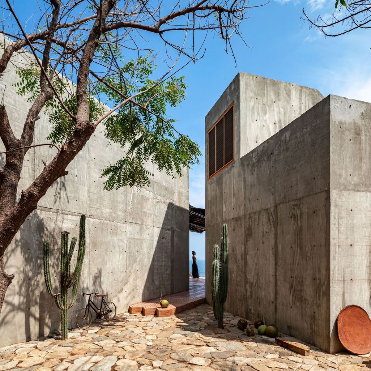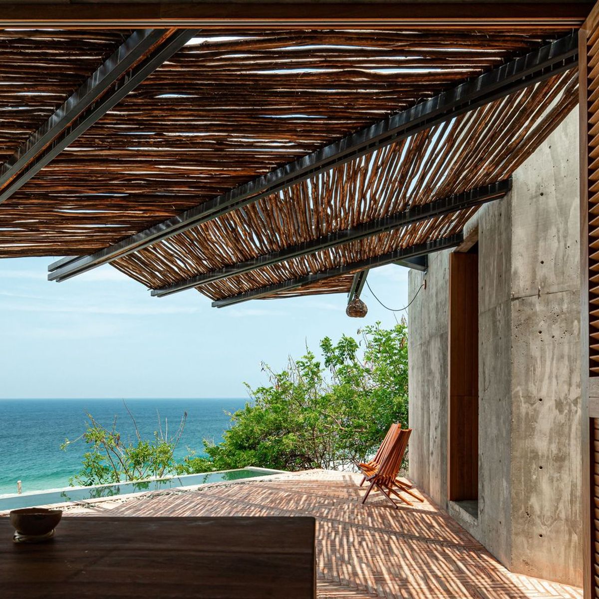 Set on the rugged Oaxaca coast, Casa del Sapo is a jaw-dropping, brutalist masterpiece perched dramatically on a cliff above Zapotengo Beach. This hidden gem is just a brief drive away from the Huatulco International Airport, making it an accessible paradise for travelers seeking natural beauty and tranquility. It's also a 90 minute or so drive from Puerto Escondido.