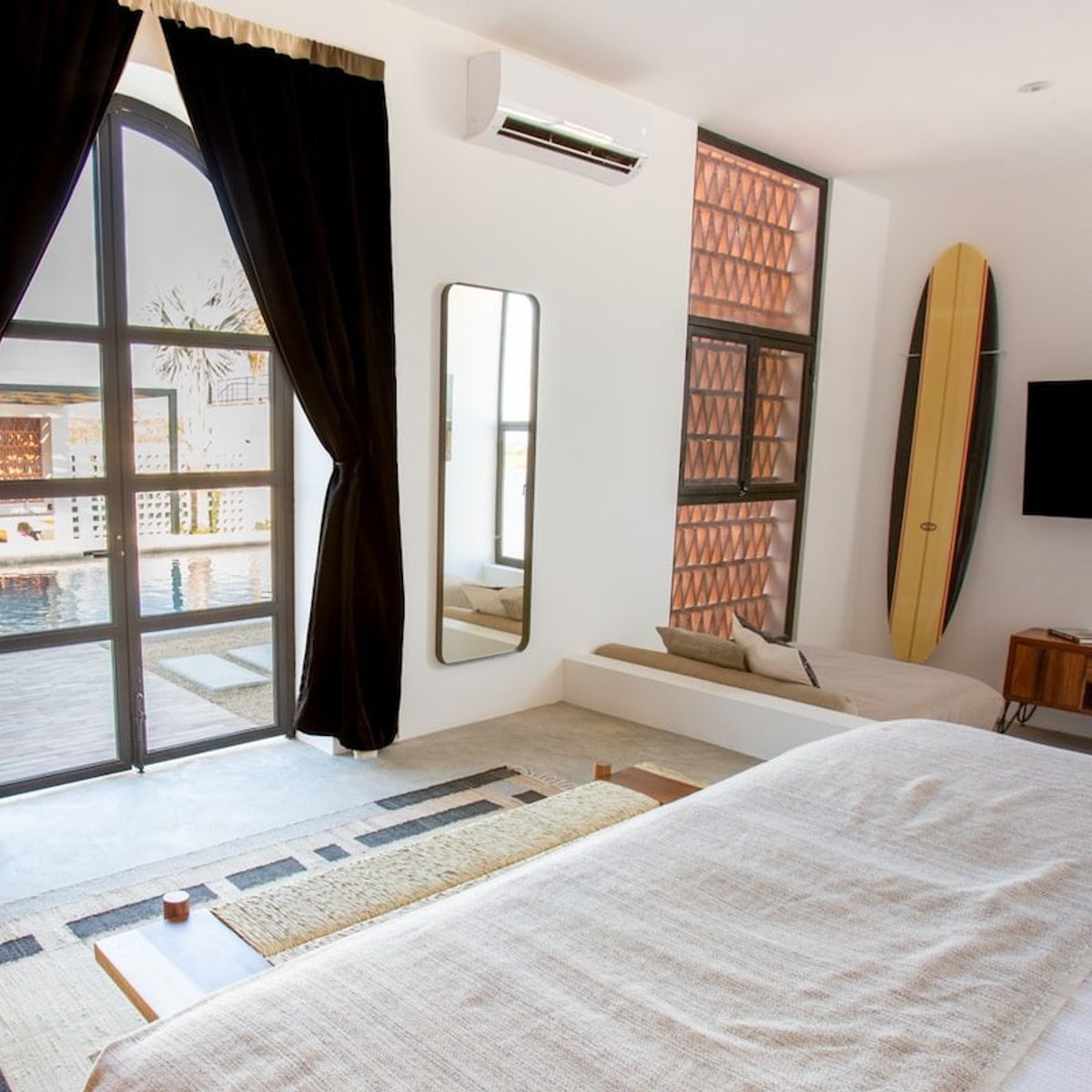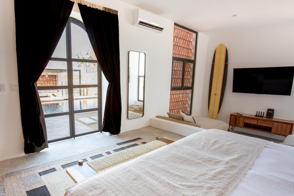 Located in one of the most desirable Todos Santos areas, you will enjoy your privacy while located near numerous bars, restaurants, shops, and pristine beaches. To enhance your guest experience, we are happy to provide exceptional concierge services including chef and bartending, live music, massage, yoga and fitness classes, and customized tour packages.