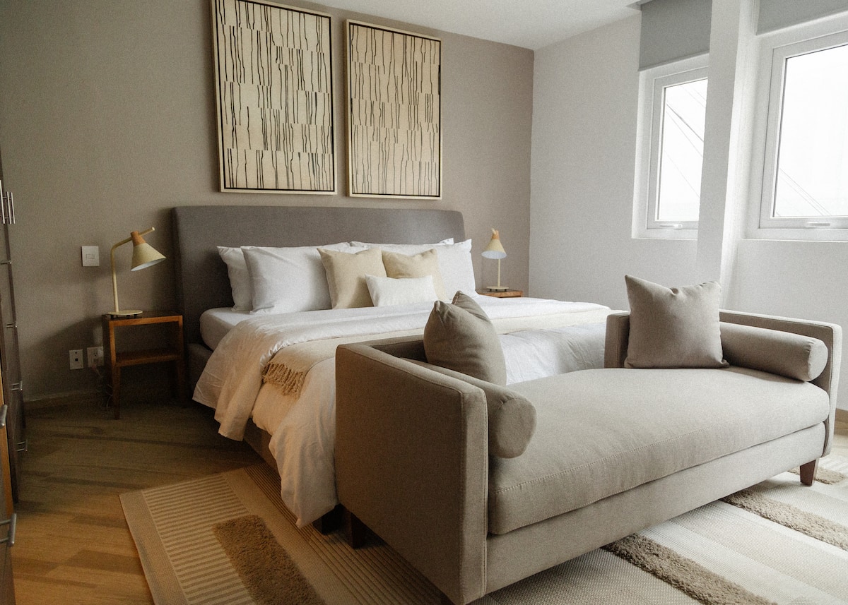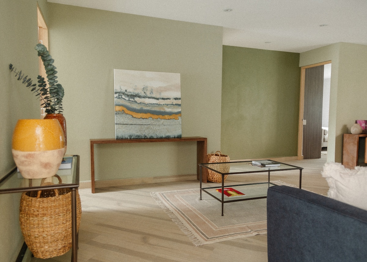Stay in this beautifully designed apartment, ideally located next to Chapultepec Forest. Featuring contemporary decor with artistic touches, this space offers a unique blend of comfort and style. Enjoy a fully equipped kitchen, elegant living areas, and a serene ambiance, perfect for both business and leisure stays. The prime location provides easy access to cultural attractions, fine dining, and vibrant nightlife, making it a perfect base for exploring the city.