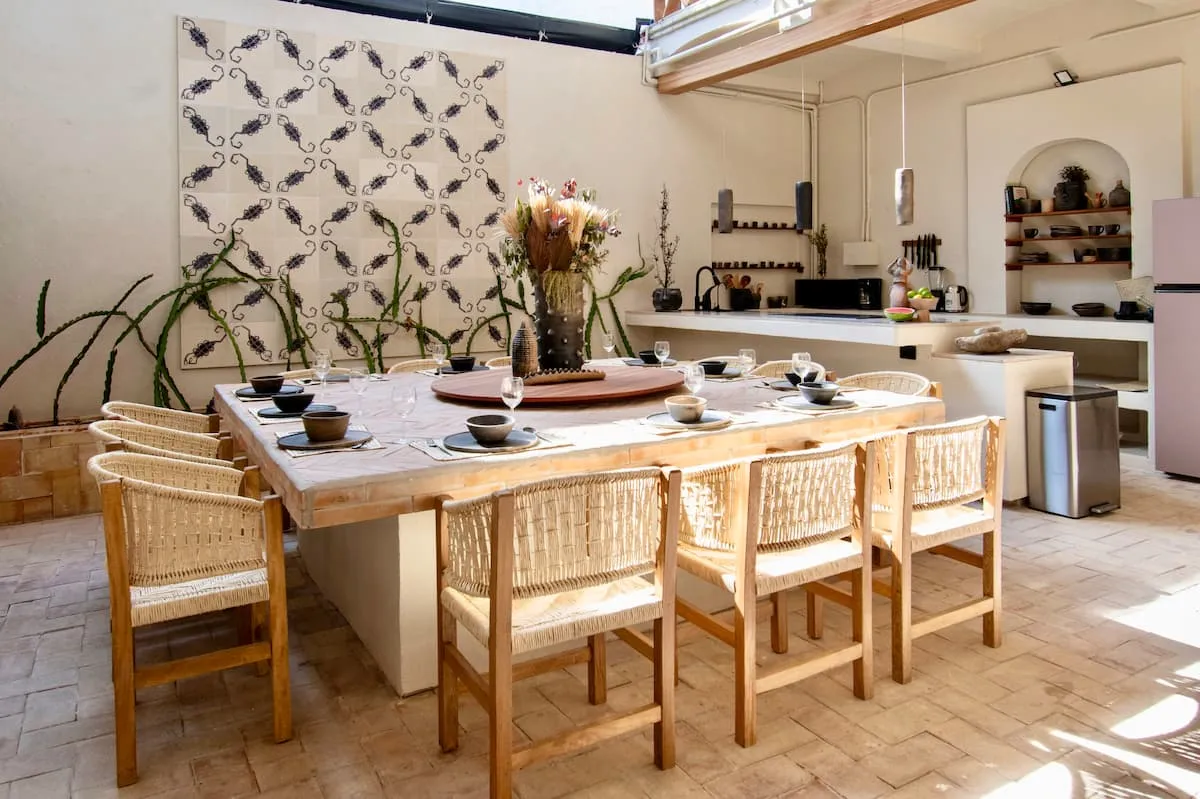 A six-bedroom, four-bathroom retreat in the heart of Oaxaca, designed with quiet sophistication and a deep respect for local craftsmanship. The interiors feature handmade elements sourced from nearby villages—woven textiles, ceramics, and custom furniture—each one reflecting the region’s cultural heritage.