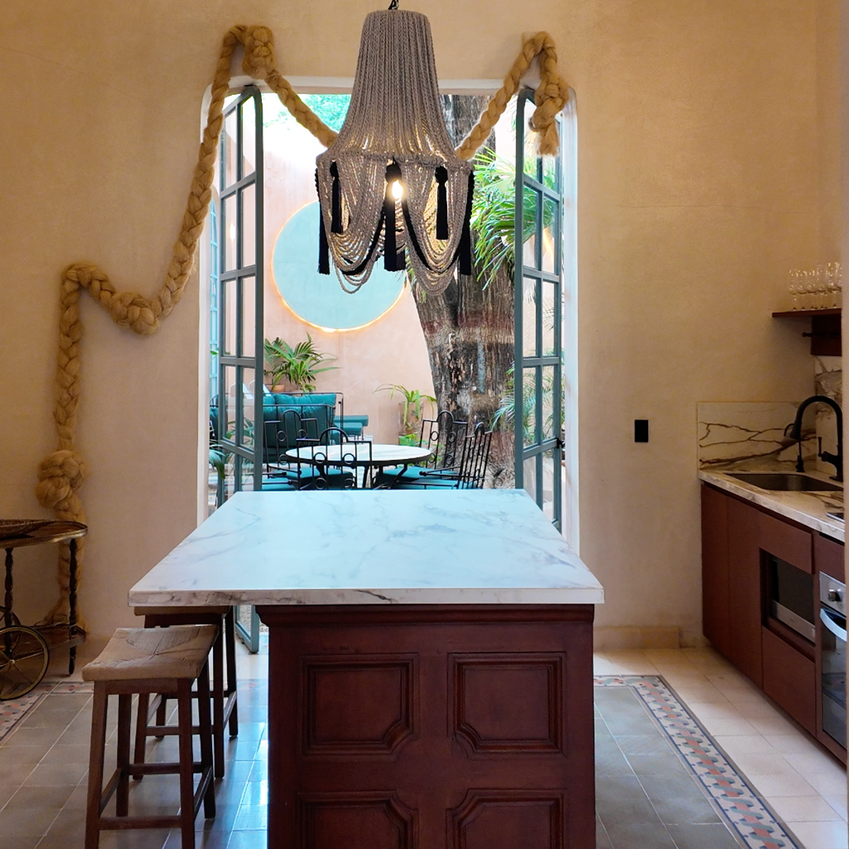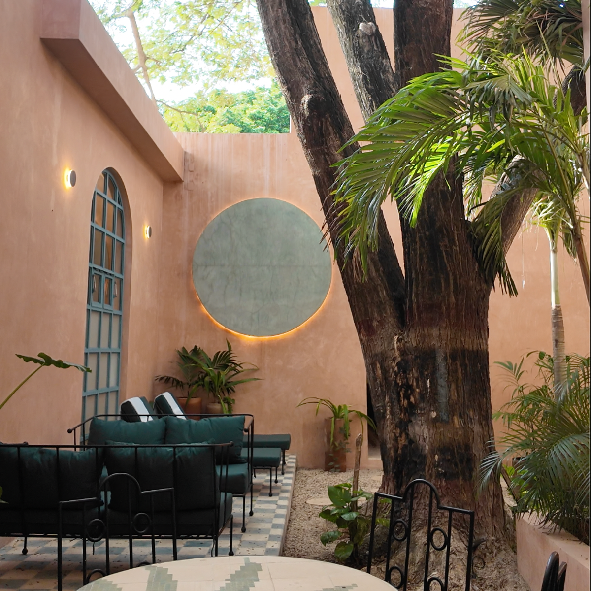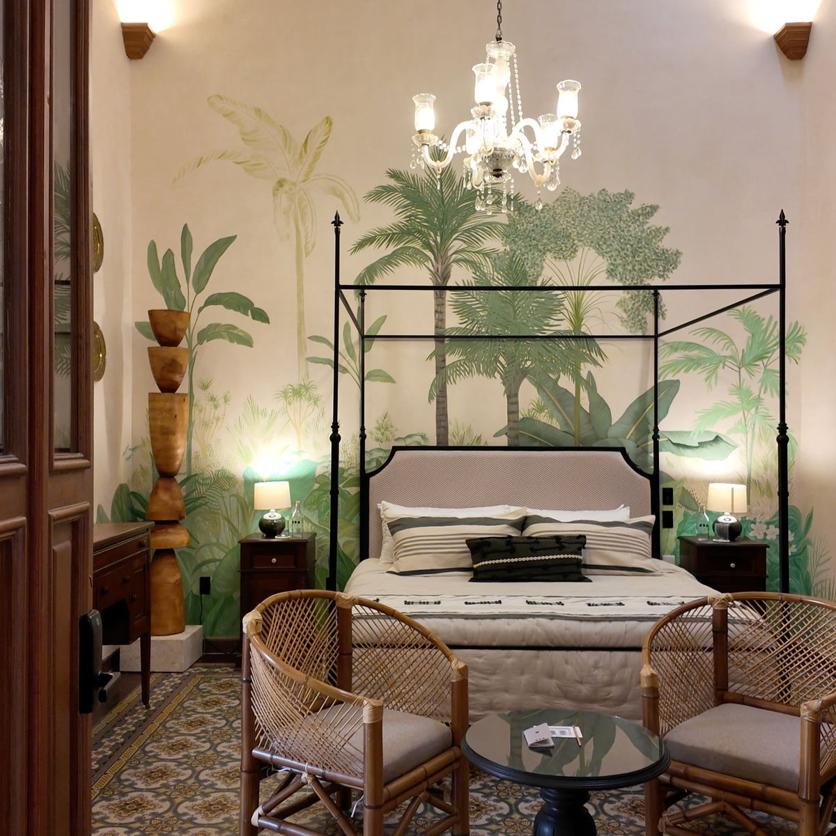 Casa Esther is a meticulously renovated three bedroom home in the heart of Merida with more than 100 years of history. The 2,800 square foot home (260 meters squared) was renovated by the team at Eneken Studio and surrounds a center courtyard featuring a towering tree that shields the space from the mid-day sun. The home has double height ceilings and gorgeous artisan made furniture from the Yucatan and across Mexico.