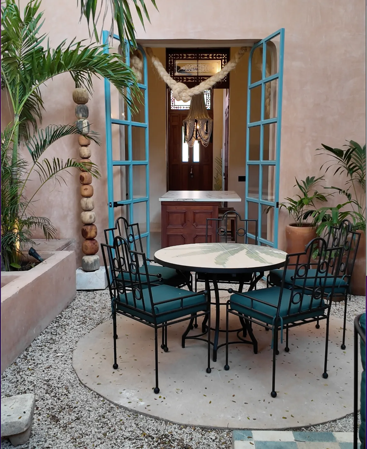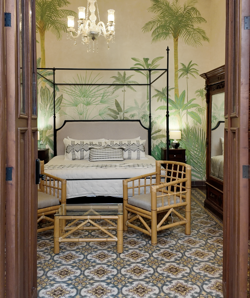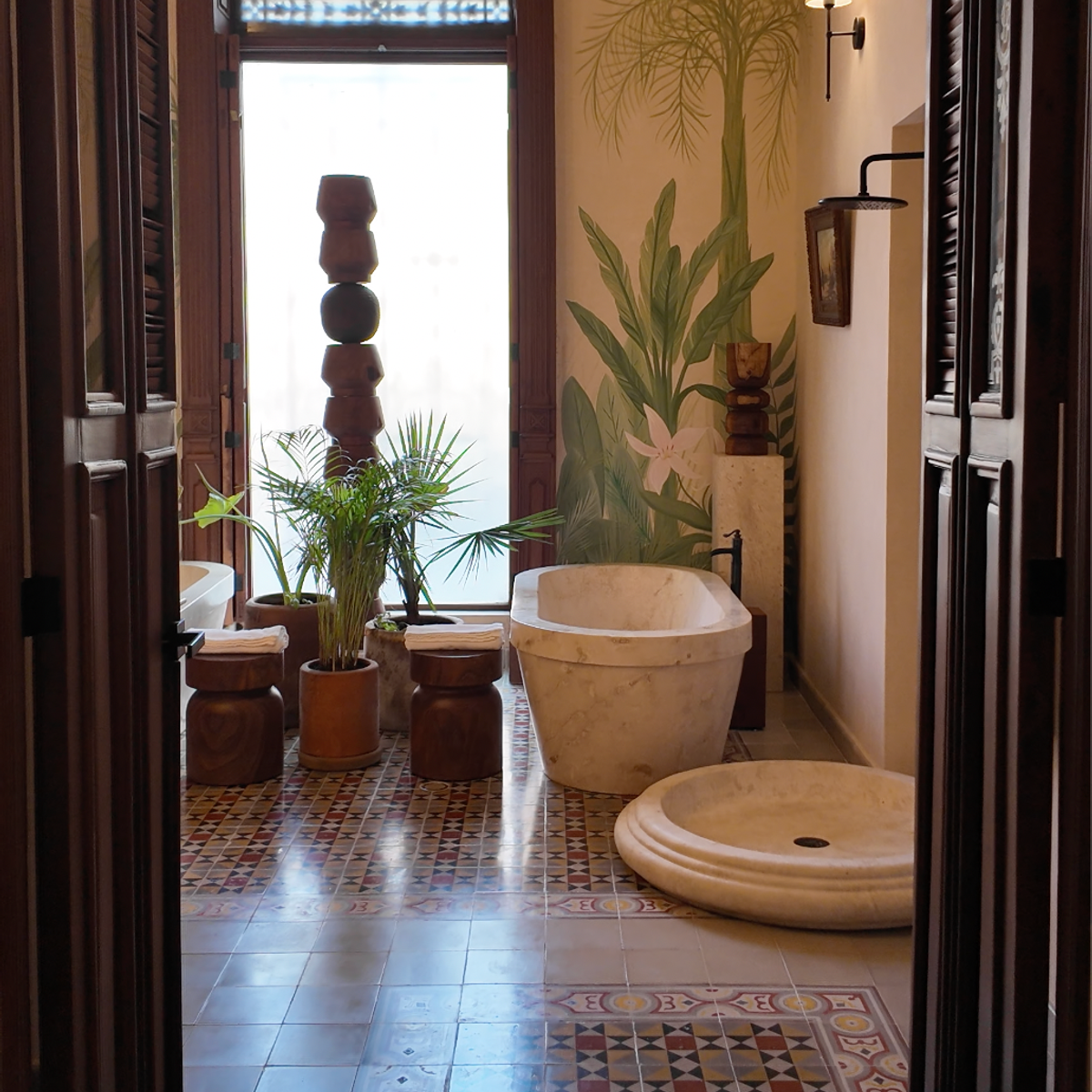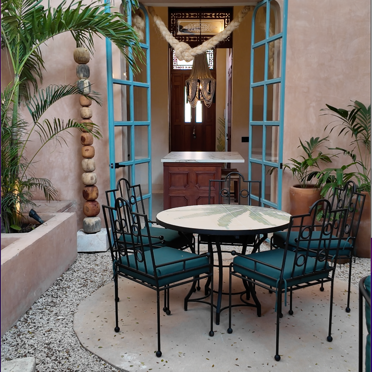 Casa Esther is a meticulously renovated three bedroom home in the heart of Merida with more than 100 years of history. The 2,800 square foot home (260 meters squared) was renovated by the team at Eneken Studio and surrounds a center courtyard featuring a towering tree that shields the space from the mid-day sun. The home has double height ceilings and gorgeous artisan made furniture from the Yucatan and across Mexico.