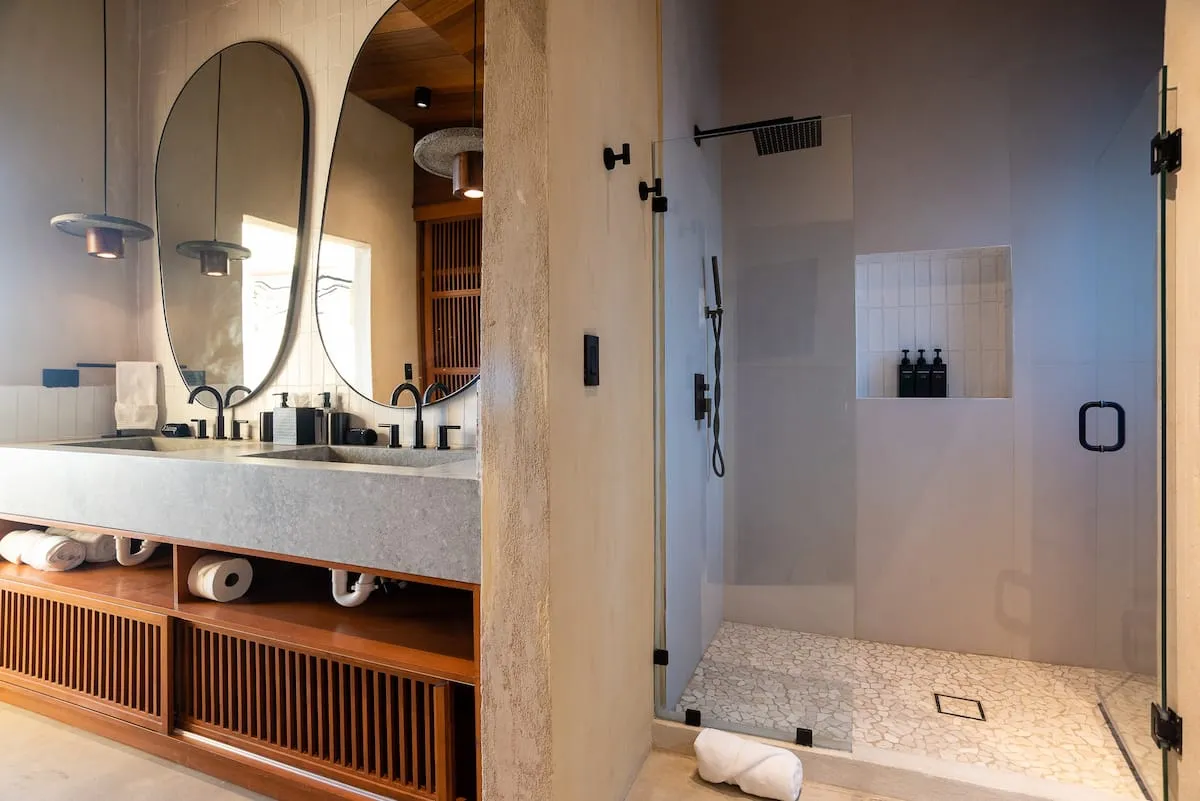 This stunning home features 4 beautifully designed bedrooms and 3 modern bathrooms, offering plenty of space for your group. The heart of the house is its open-concept common area, where the kitchen, dining room, and living room seamlessly blend together, creating a perfect space for gathering, relaxing, and enjoying the breathtaking views. Large windows and thoughtful design ensure the natural beauty of Valle de Guadalupe is always part of the experience.