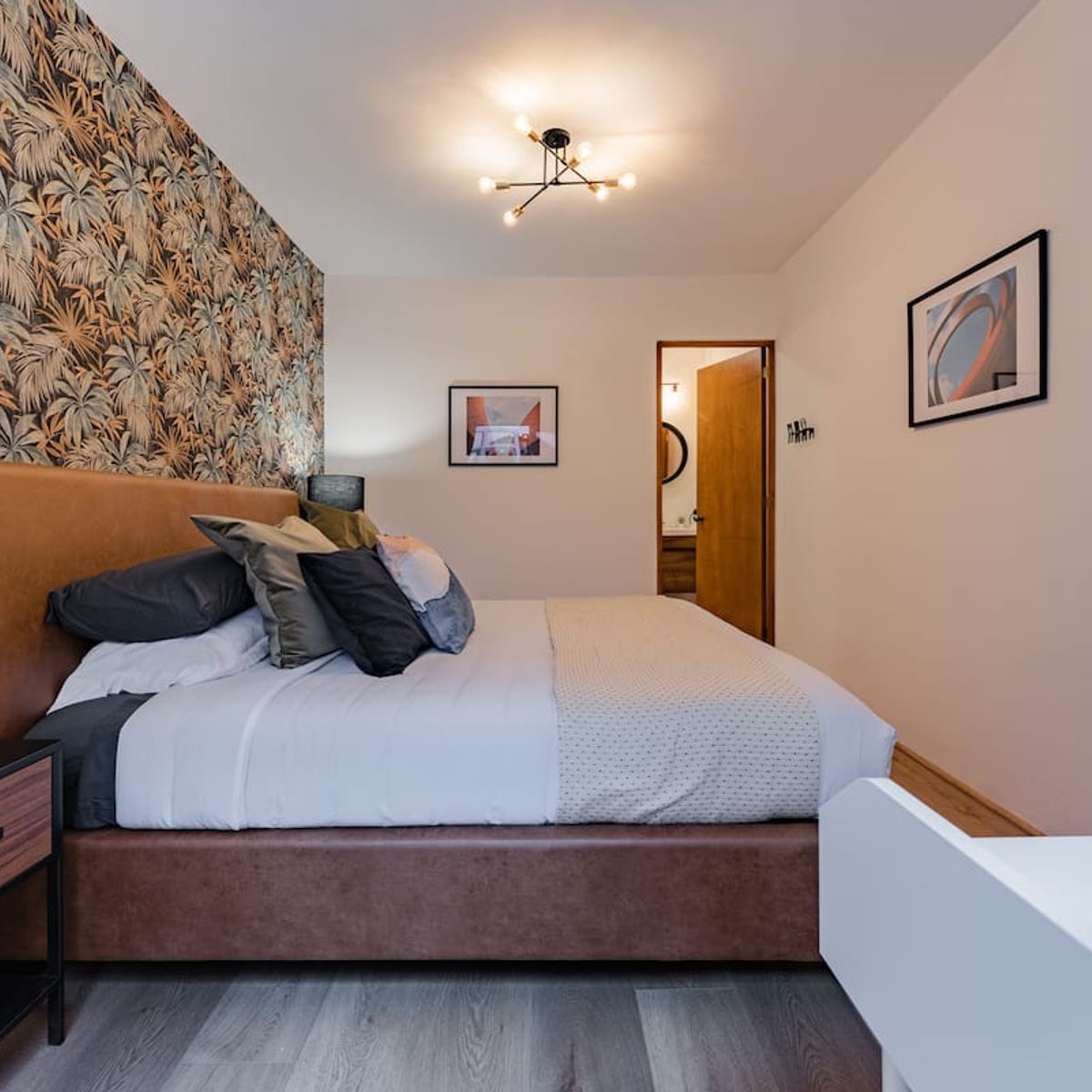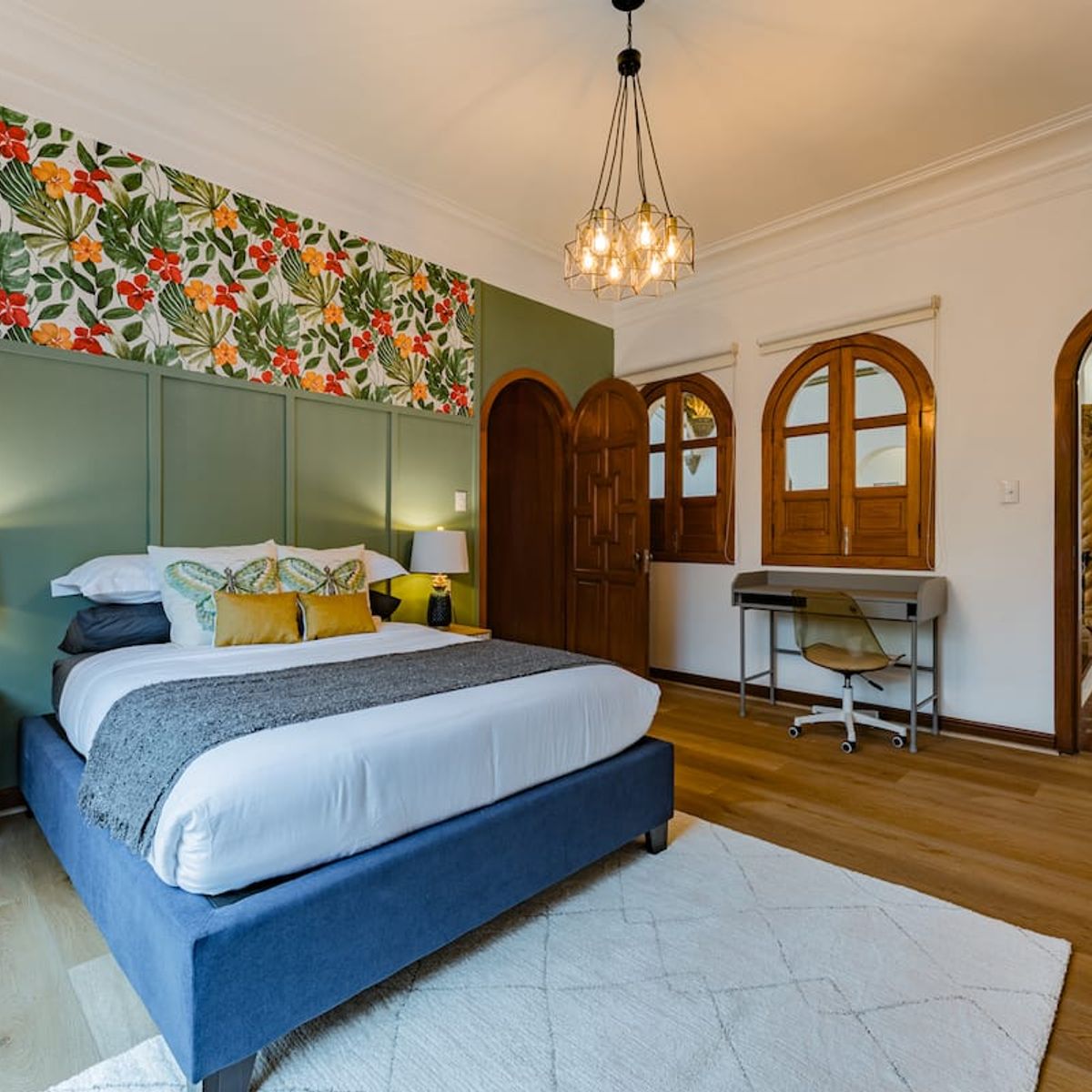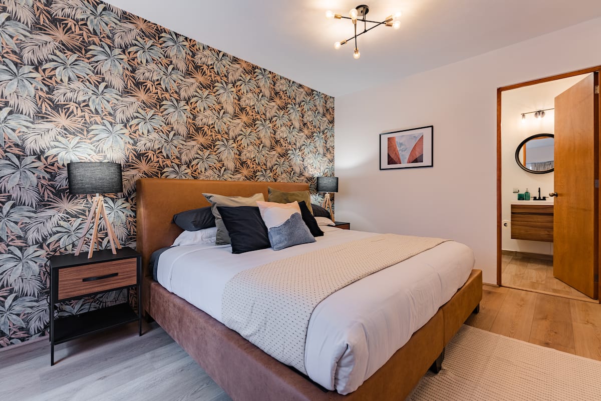 Ideal for large groups with a large outdoor dining area, BBQ, and more! The home sleeps up to 16 with a mix of king, queen, and double beds. There's a fully equipped kitchen with modern appliances, dedicated workspace, portable fans, and family-friendly amenities .