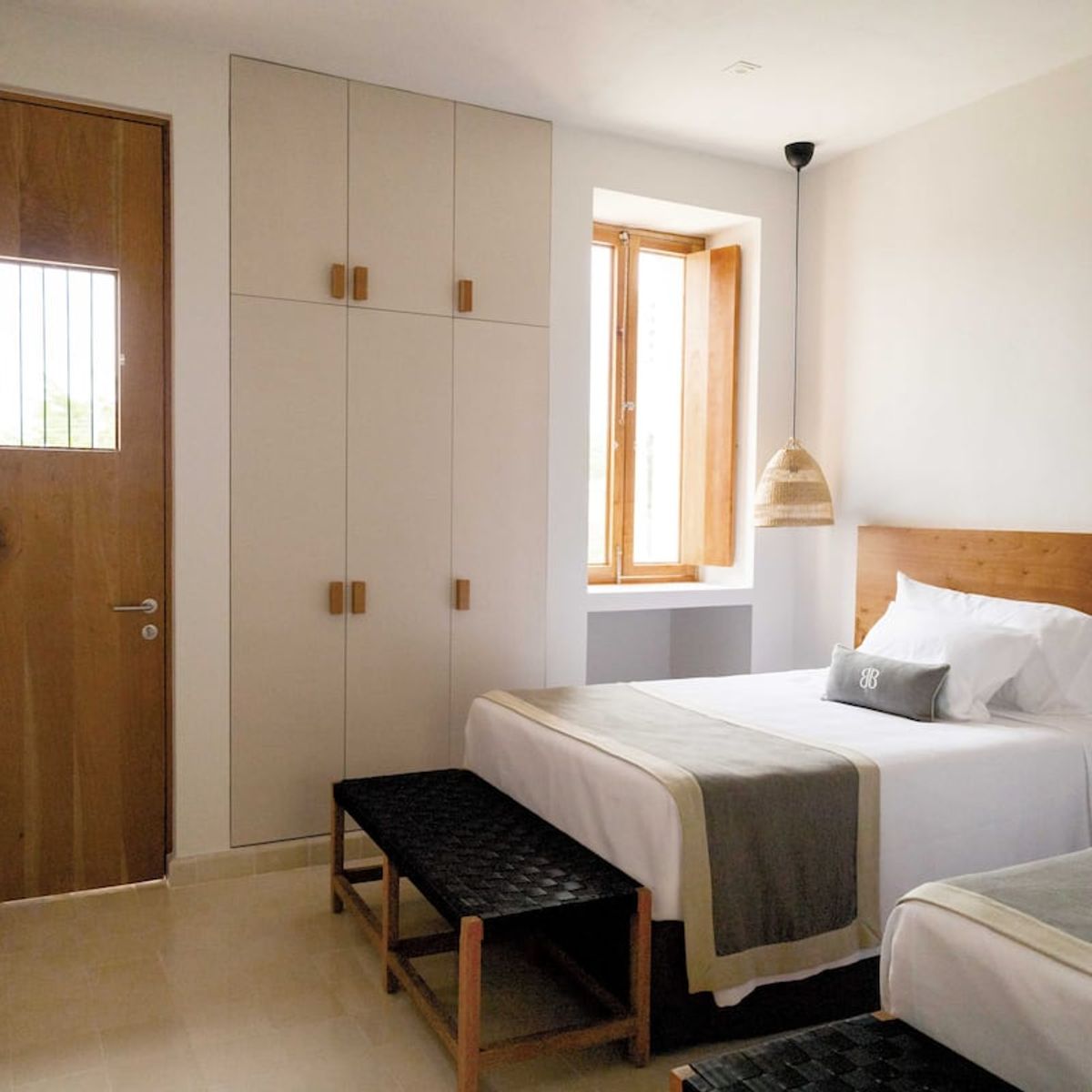 In the second building, which is located at the end of the house, on the ground floor there is a room with a king size bed, a private bathroom and a view of the garden and pool. On the upper floor, there is a room with two double beds and a private bathroom.