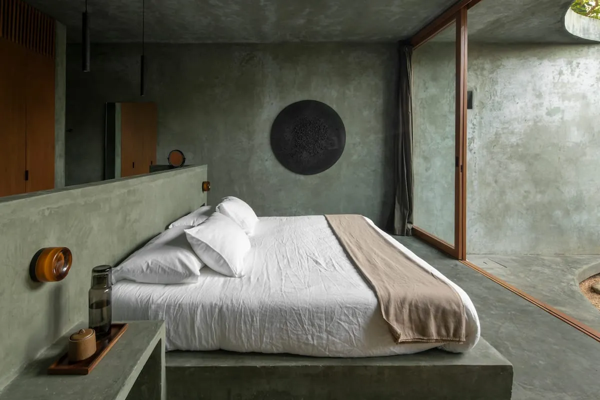 • Third Bedroom: Spacious suite with private bathroom and circular outdoor bathtub in a private courtyard.
