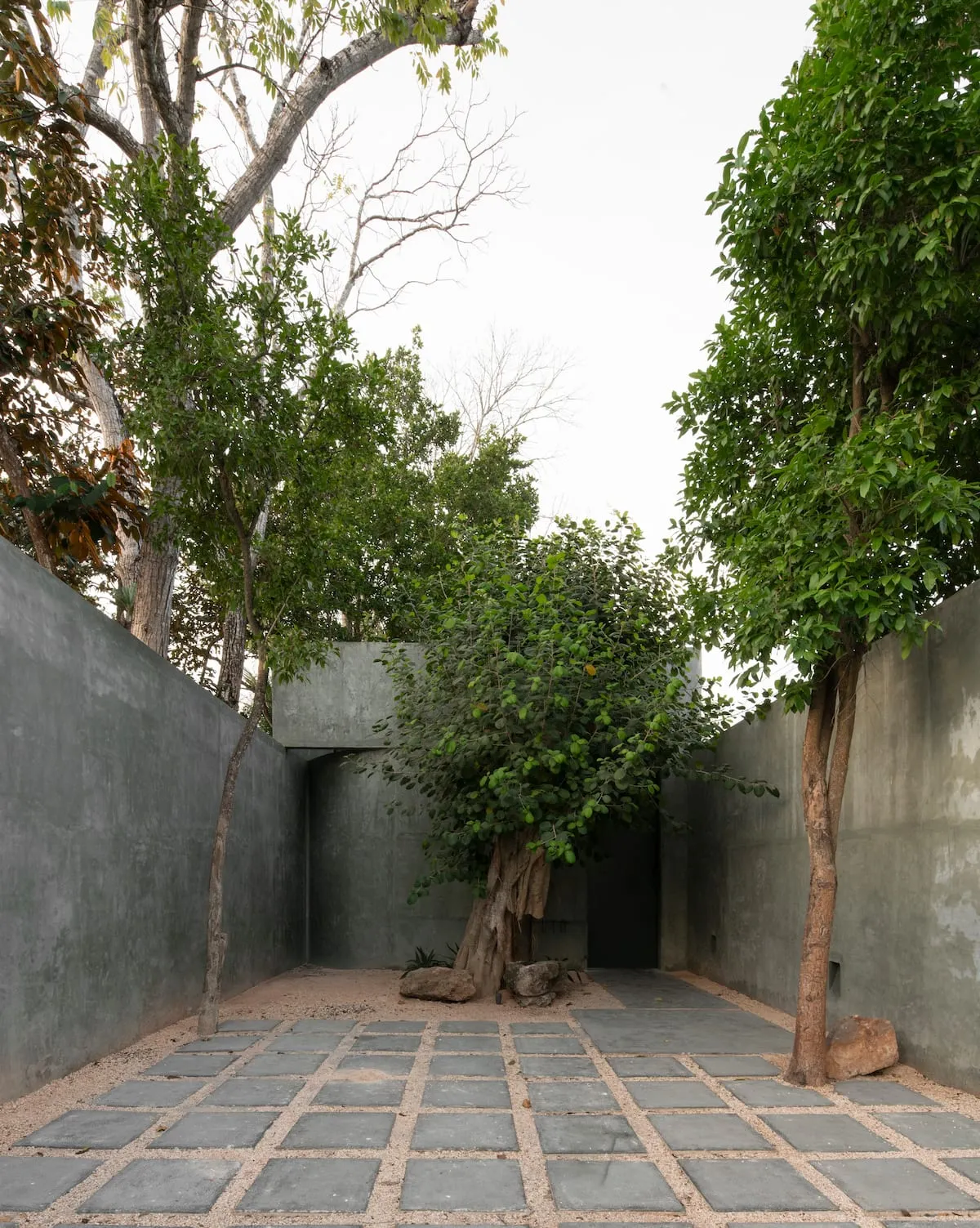 Upon arrival, guests are welcomed by green walls and a graceful poplar, setting the tone for a journey through spaces designed for reflection and rest.